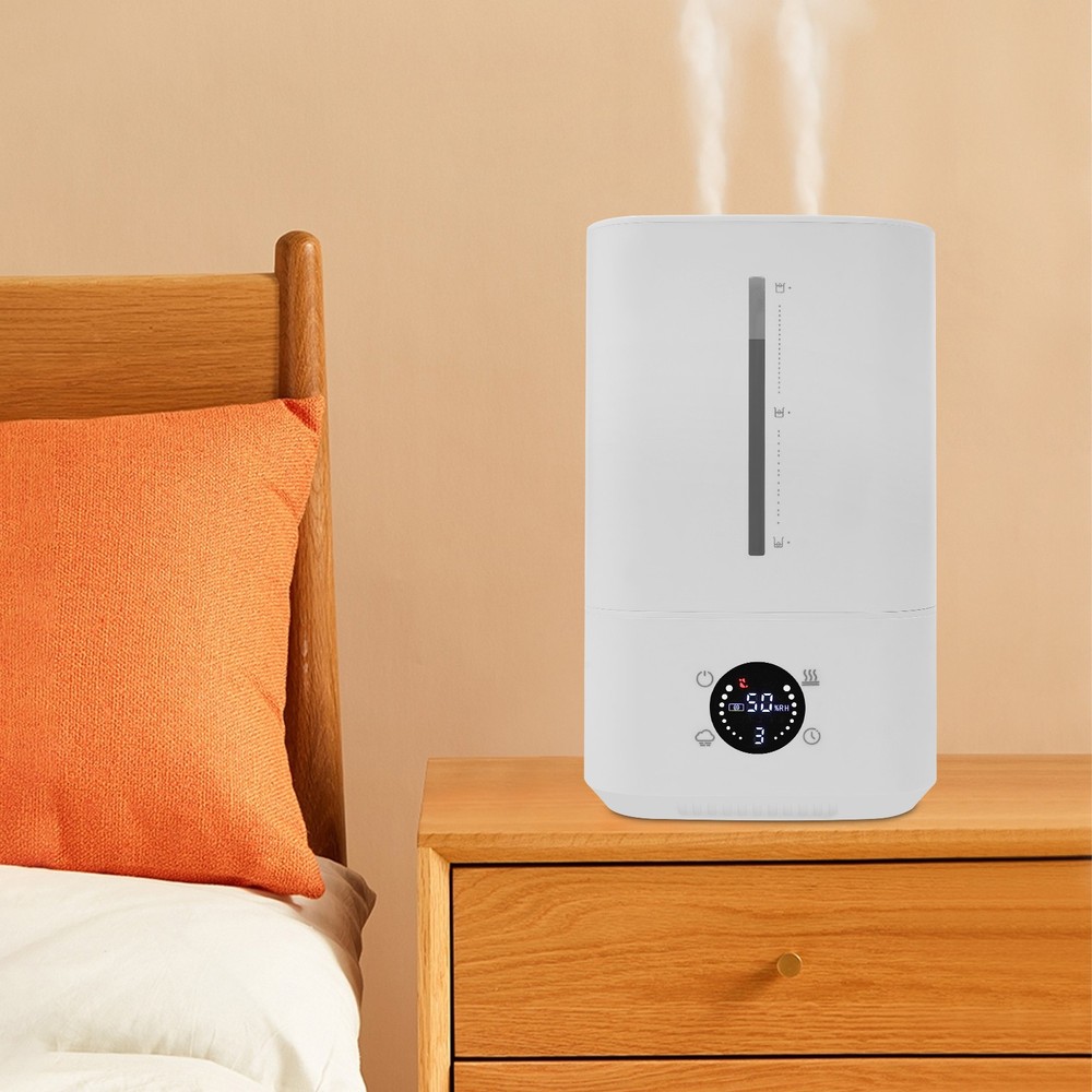 6L Hot and Cold Mist Humidifier, Humidifier for Home, Humidifier for Plants Description This cold and warm humidifier, with its simple and modern design and efficient functions, has become an ideal choice for improving home comfort. Its white shell is not only beautiful and elegant but also easily integrates into various interior decoration styles. The device is equipped with a large capacity water tank to ensure long-term continuous humidification without the need for frequent water addition. Whether in the bedroom, living room, or office, this product can bring you fresh and pleasant air, caring for the health of you and your family. Key Features Made to Last: High-class ABS and exquisite injection molding process make this product sturdy, scratch-resistant , impact-resistant , and not easy to deform, ensuring a long service life. Efficient Atomization: This product uses nano ultrasonic atomization technology to disperse water particles. The built-in baffle blocks large particles of water droplets, leaving only delicate water mist, which is directly directed into the air through the air duct, bringing an efficient humidification effect to your space. Large Capacity: The 202.91oz large-capacity water tank ensures long-term continuous humidification without the need for frequent refilling, providing a long-lasting wetting experience for your living space. Excellent Function: This product adopts a 2-in-1 design of cold and warm mist. You can adjust it according to seasonal changes, with warm humidification in winter and cool humidification in summer, thus meeting the humidification needs of different seasons. Intelligent Constant Humidity: It supports one-click entry into constant humidity mode, with an adjustment range of 45-90%, increasing by 5% with each press. Convenient Control: The touch control design allows you to easily adjust fog volume (low-medium-high), timing (1/2/4/8h), sleep mode, etc., providing great convenience for your life. Low Noise: The 20-40dB silent operation ensures that it won't disturb your rest even when used at night, allowing you to sleep peacefully. High Safety: The product has built-in water shortage protection. In the event of a water shortage in the water tank, it will automatically stop running to prevent dry burning, improve safety of use, and extend the product's service life. Comprehensive Humidification: The 360° rotating dual nozzle allows you to adjust the humidification direction as needed, releasing fine water mist in multiple directions, ac hieving comprehensive hum idification. Details Filter Element: The built-in filter element of the product can soften water quality, adsorb harmful substances in water, and reduce scale production. Large Caliber: The 7.48-inch large caliber makes it convenient for you to clean the inside of the water tank. The convenient dual water addition design allows you to add water directly without separating the product. Colorful Ambient Light: It comes with a colorful ambient night light design, adding color to life. Water Level Window: The visual water level window facilitates your observation of water level and timely replenishment of water. Application This product is suitable for bedrooms, living rooms, baby rooms, children's rooms, etc. Specification Material: ABS Color: White Process: Injection Molding Style: Modern Mounting Type: Free Standing, Tabletop Plug Type: US Standard Humidity Regulation Range: 45%-90% Rated Voltage: 110-220V 50Hz Rated Power: 25W Water Tank Capacity: 6L/202.91oz Control Method: Touch Control Mist Output: 280ml/9.47oz/h Fog Volume Adjustment: 3 Levels (Low-Medium-High) Noise: 20-40dB Timing: 1/2/4/8h Power Cord Length: 1.2m/3.94ft Exposed Product Size: 19*19*33cm/7.48*7.48*12.99in Package Size: 36*23*21cm/14.17*9.06*8.27in Gross Weight: 2kg/4.41lbs Net Weight: 1.55kg/3.42lbs Each Package Included 1* Hot and Cold Mist Humidifier 1* English Manual Notes Please read the operating manual completely before use. And pay particular attention to the safety instructions included. Please take out the foam under the floating board before use. Please allow the slight color difference caused by the shooting light and 1-3cm error due to manual measurement, and make sure you do not mind before ordering. Payment Delivery details Terms of sales About us Contact us Payment We accept ebay payment 。 Fees such as import duties, taxes are not included in the item price or shipping costs. These charges are the buyer's responsibility. Delivery details Shipping: 2-9 working days to: USA Terms of sales We maintain high standards of excellence and strive for hundred percent customer satisfaction. Feedback is very important to us. We hope that you contact us immediately before you give neutral or negative feedback, so that we can address your concerns. It is impossible to address issues if we do not know about them! About us Your satis faction is our ultimate goal. We work hard to earn your trust and future business. Our certified technicians have tested each item before shipping. The unit comes with 1 year limited warranty on all manufacturing defects. a) If you receive a defective item, you may return it or ask for a discount. Please contact us within 14 days after you receive the package. b) What you returned must be intact and in its original packaging as re? u. Customer is responsible for shipping costs of the returned item. c) We will cover the cost of shipping back t with the shipping rate indicated in the registration page. We will send you a new unit or refund the full payment you paid. Thank you. Contact us Business Hour Business Hour: Monday To Friday: 8:30 AM to 5:00 PM (Beijing China time) Due to time zones, our reply to your questions may not be immediately. But within above working time, we will reply your email within 24 hours. If it's non-workdays, please kindly be patient and wait till Monday. Please contact us with ebay message. Please feel free to contact us if you have any questions. Monday 