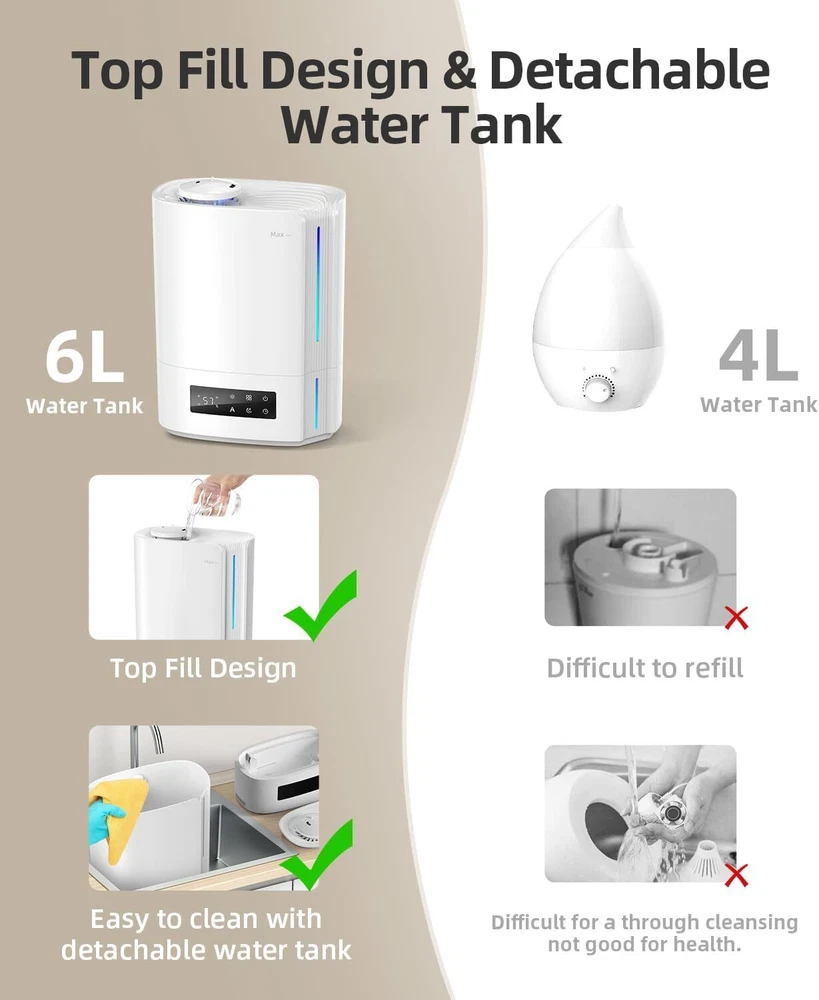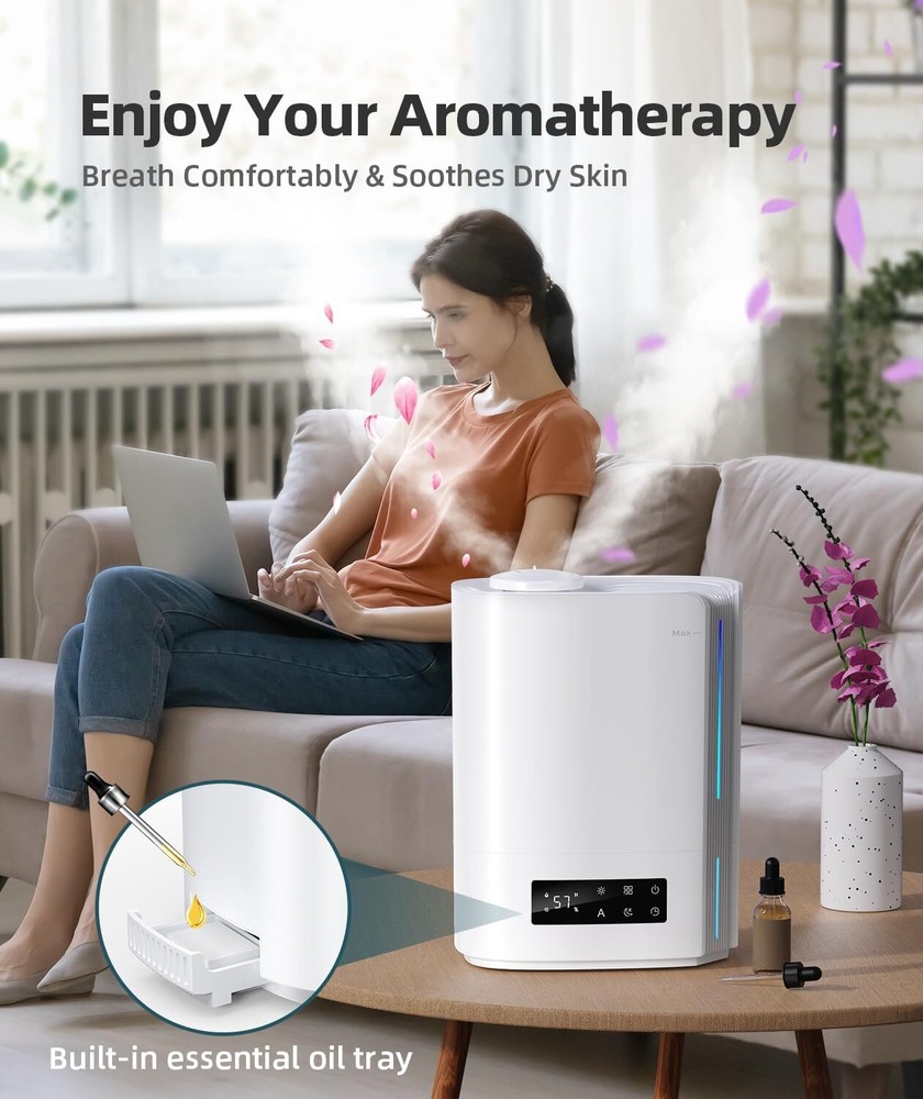 6L Ultrasonic Humidifier for Large Bedrooms with Essential Oil Diffuser