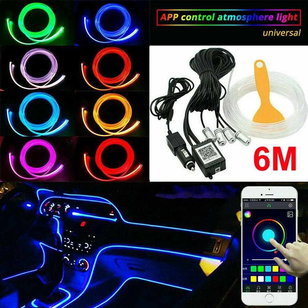 Warranty: 1 Year gtin13: Does not apply Fitment Type: Direct Replacement Manufacturer Part Number: 6M RGB LED Car Interior Fiber Optic Neon Strip Light Manufacturer Warranty: 1 Year Working Temperature: -40C~80C Phone App Control: Fits for IOS and Android Brand: Unbranded Optical fiber Strip Length: Approx. 6m To Fit: Interior Atmosphere Light Remote Distance: 8~12m Wattage: 1.5W Light Color: RGB UPC: Does not apply Length: 6m Type: Interior Decor Light Strip