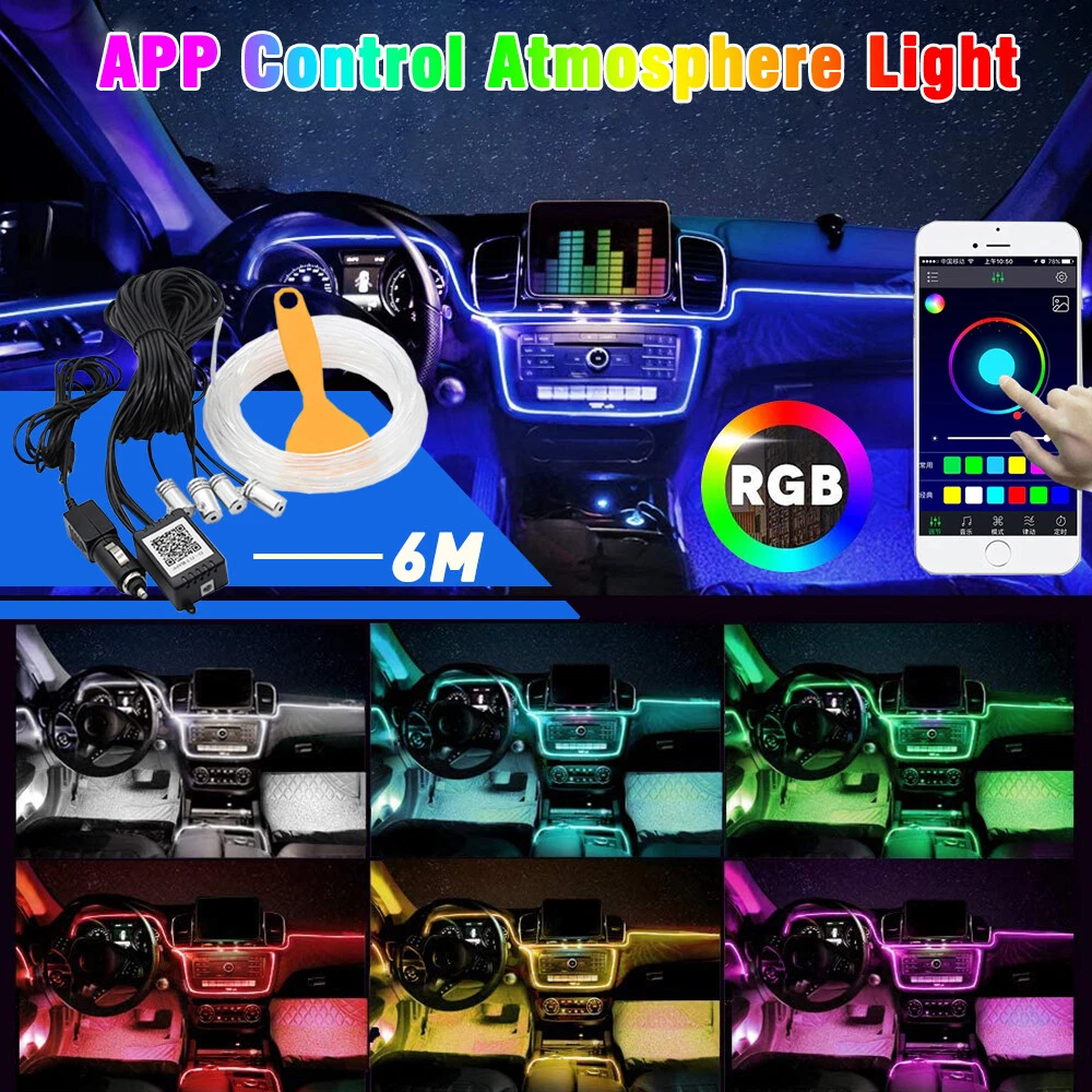 6M RGB LED Car Neon Interior Wire Strip Atmosphere Decor Light APP Control 12V