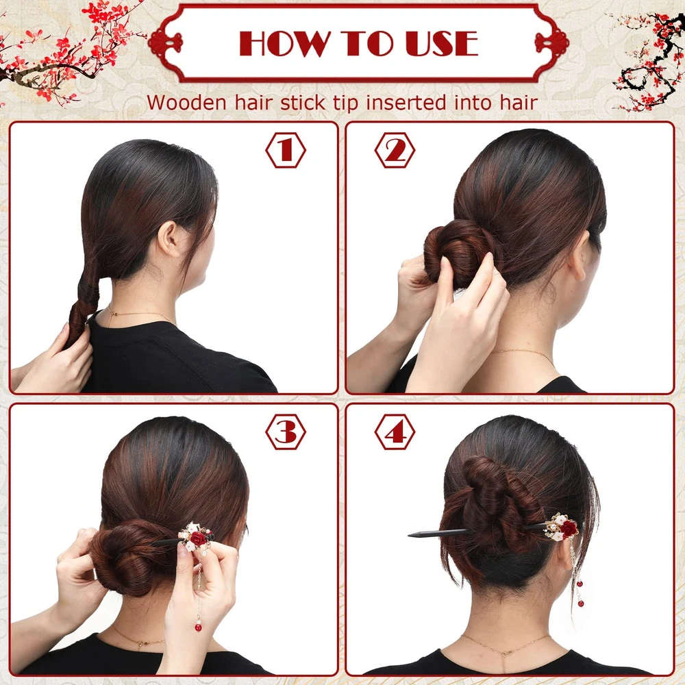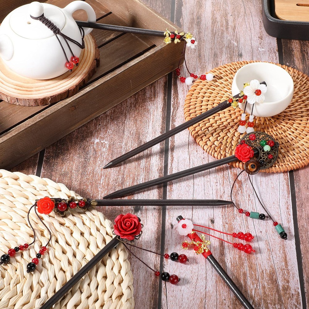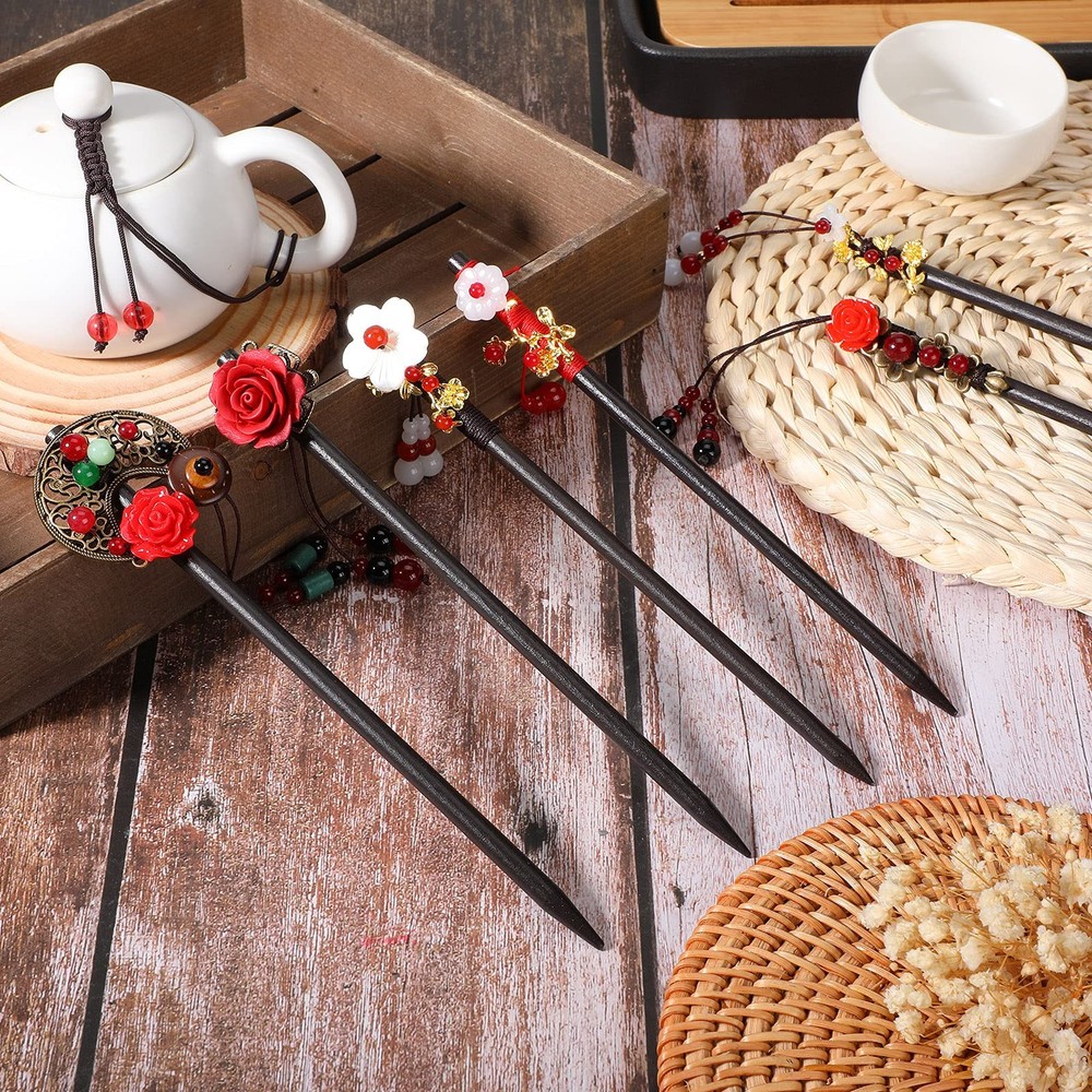 About this item What you will receive: you will receive 6 pieces of Chinese hair sticks, with different styles; The abundant and multiple hair sticks can satisfy your different using demands, you can choose any one you like to match your clothes, bags, or shoes well; What is more, it is convenient for you to replace the missing or broken one Simple and elegant design: designed with flowers and beads, these flower hair chopsticks are elegant, simple, and exquisite, leaving a deep impression on people when you wear these hair sticks; They can also bring you a quiet and cosy atmosphere, to have a good mood in a whole day Convenient and durable to use: these retro wooden hairpins are mainly made of quality wood material, which are light, firm, and reliable, not easy to rust or break for a long service time; Wooden hair sticks have a fine appearance and add a feeling of classic style; The beads for decoration show good effect of hanging, which will make you charming among most people Suitable for various hair types: these vintage tassel hair pins have a smooth edge, which are applied for long hair, straight hair, middle hair, heavy hair, curly hair, and more, to fix your hair well; They will not only bring you a comfortable using experience but also do not hurt your skin when in use Convenient and easy to use: the whole wearing process of these handmade wooden hair sticks is very simple and convenient, just pack your hair well and use the hair sticks to fix your hair, no any complex procedure or tool required; Suitable for hair between shoulder and waist
