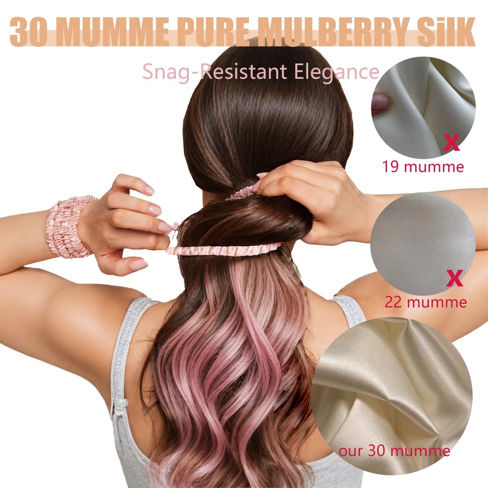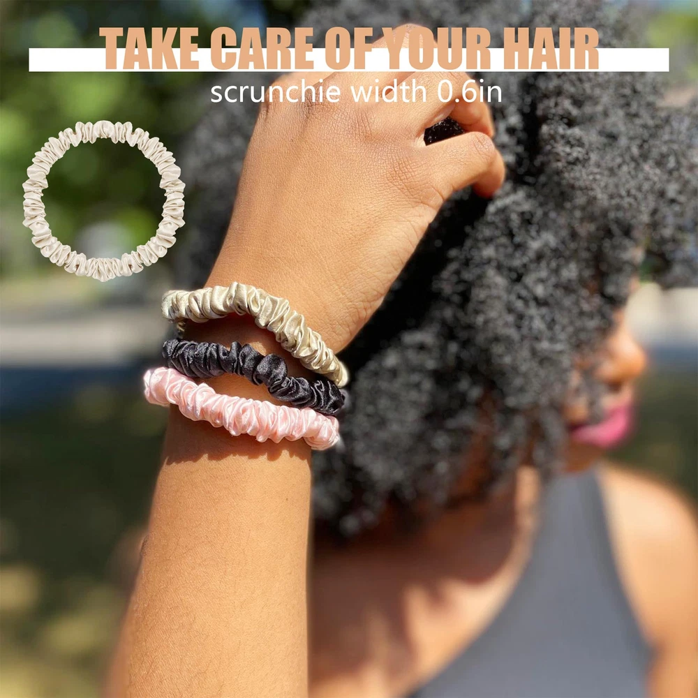 Brand: Dnezoy Color: -6pcs Autumn Set Features: Premium Material: This hair scrunchie is made of 30-micron 6A grade mulberry silk. It's 100% pure silk. You can wear it all day and night without it leaving marks on your hair, and it will help reduce hair breakage, split ends, shedding, and frizz. High-Quality Elastic Band: The high-elasticity rubber band inside adapts to various hair types and volumes. The perfectly designed length securely holds your hair in place while being gentle enough to wear around your wrist. Detailed Specifications: This silk scrunchie set comes with 6 pieces (0.5 inches in width and can be stretched to 7.2 inches in length), offering a variety of styles to choose from. With classic and timeless color combinations, it easily matches your outfit and personal style. Craftsmanship: Each scrunchie is meticulously sewn by experienced craftsmen with over a decade of tailoring experience. The hidden stitching reveals the craftsman's dedication and attention to detail. We hope that through this thoughtful effort, we can bring happiness to you and your loved ones. Perfect Gift Choice: This silk scrunchie is ideal for various occasions such as birthday parties, Mother's Day, Valentine's Day, Christmas, teacher appreciation events, etc. Give it as a gift to your loved one, and we believe she will appreciate the thoughtfulness behind it after using it. Package Dimensions: 7.1 x 2.9 x 0.7 inches
