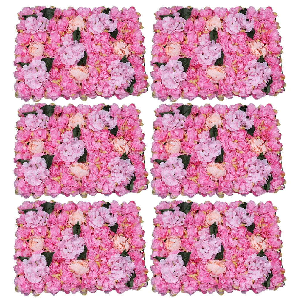 6PCS DIY Rose Artificial Flower Wall Panel Wedding Party Wall Backdrop Decor