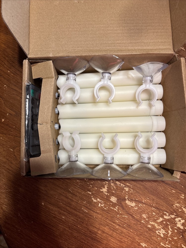 This is a set of 6 flickering flameless LED taper candles with holders, featuring a remote control and timer function. The candles are battery-operated (AAA batteries) and made of non-toxic plastic material. They are suitable for all occasions and come in an art deco style. The candles are unscented, non-drip, and have a decorative design with a plastic base. They are ideal for indoor or outdoor use in various rooms such as the bedroom, dining room, or office. International charges are the buyer’s responsibility. No international returns.