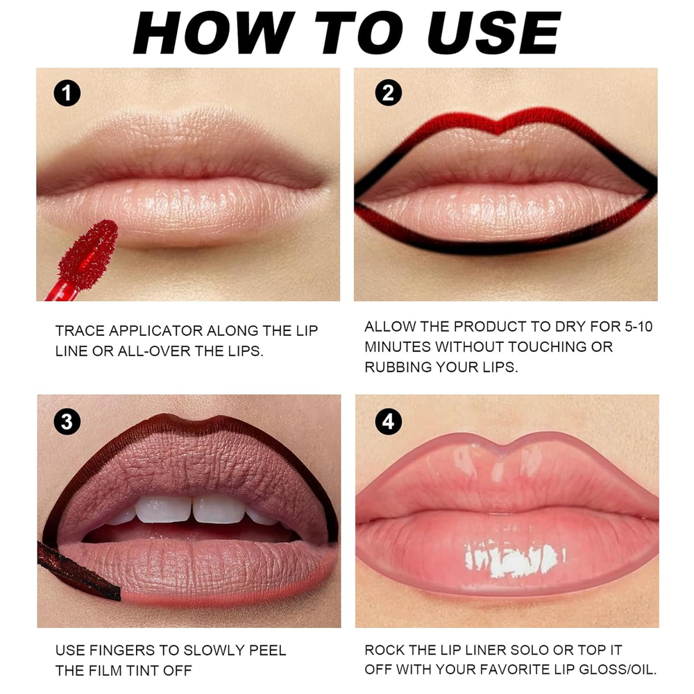 6PCS Lip Liner,Peel off Lip Liner Tattoo, Peel off Lip Stain, Long Lasting Lip Stain Peel Off, Infused with Hyaluronic Acid & Vitamin E, Makeup Gift for Women A DIFFERENT KIND OF LIP LINER - Unlike traditional lip liners that need to be sharpened, tattoo lip liners can save you time, simplify your lip makeup steps, and can change your lip line so that it stays put all day. ACHIEVE THE PERFECT LIP LOOK - Lip liner is perfect for both outlining and overlining your lips. Additionally, it can be used to fill in your lips for an all-over color like a lipstick. NOURISHING LIP STAIN - Infused with lip-loving ingredients, Hyaluronic Acid and Vitamin E, this liner nourishes your lips while imparting a long lasting tint for plump-looking & defined, luscious lips. LONG LASTING & WATERPROOF - Matte lip liner contains a waterproof formula that non-sticky, not easy to fade, don't worry about losing your makeup in water and sweat, lasts all day when completely dry, when you drink and kiss, the color will not transfer. PERFECT COLOR FOR EVERYONE - Suitable for use on skin types Our lip liner has a safe formula so you can customize your own lips to make it plump and sweet. Product Description Dimensions 4.57 inches x 4.65 inches x 0.91 inches. Weight: 5.29 oz Specifications Color Red Item Form Pencil Country of Origin China Skin Type All Finish Type Glossy Package Dimensions 4.65 x 4.57 x 0.91 inches; 5.29 ounces Shipping: Shipped from the USA. Fast delivery within 2–3 days. Payment: PayPal, credit card, bank transfer. Returns: 30-day free return – we cover the shipping cost. Quality: Made in Europe/USA/China. No customs fees. VAT invoice on request. Feedback: You’ll automatically receive positive feedback after payment.