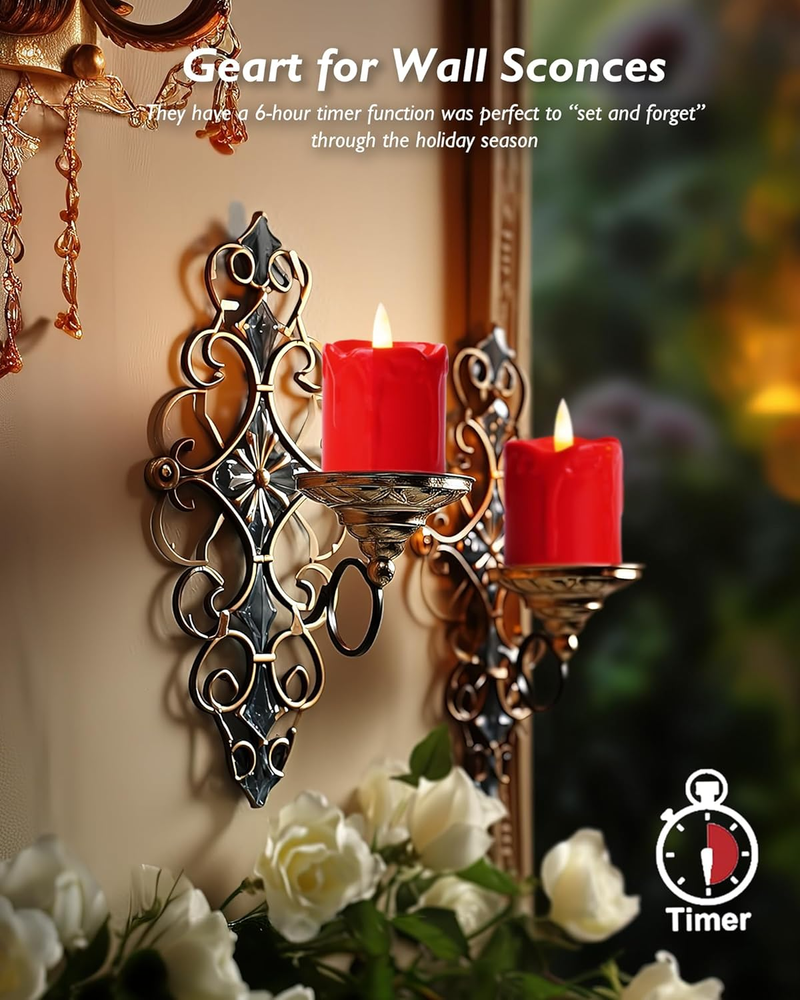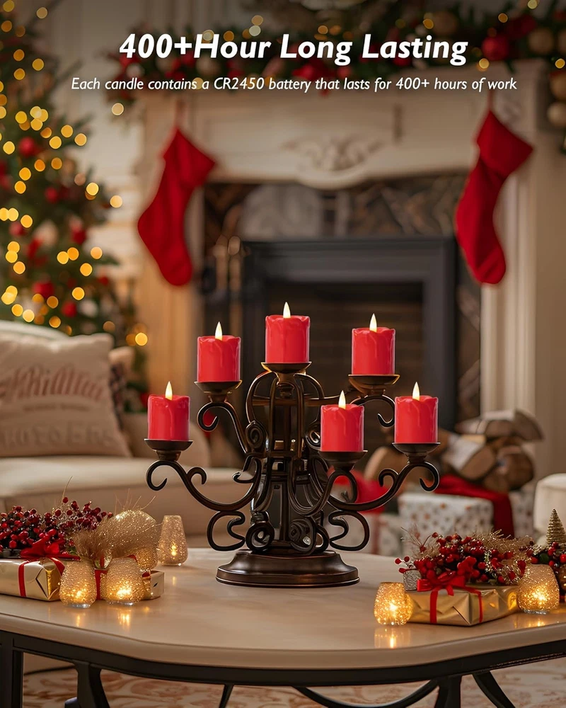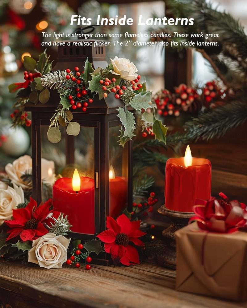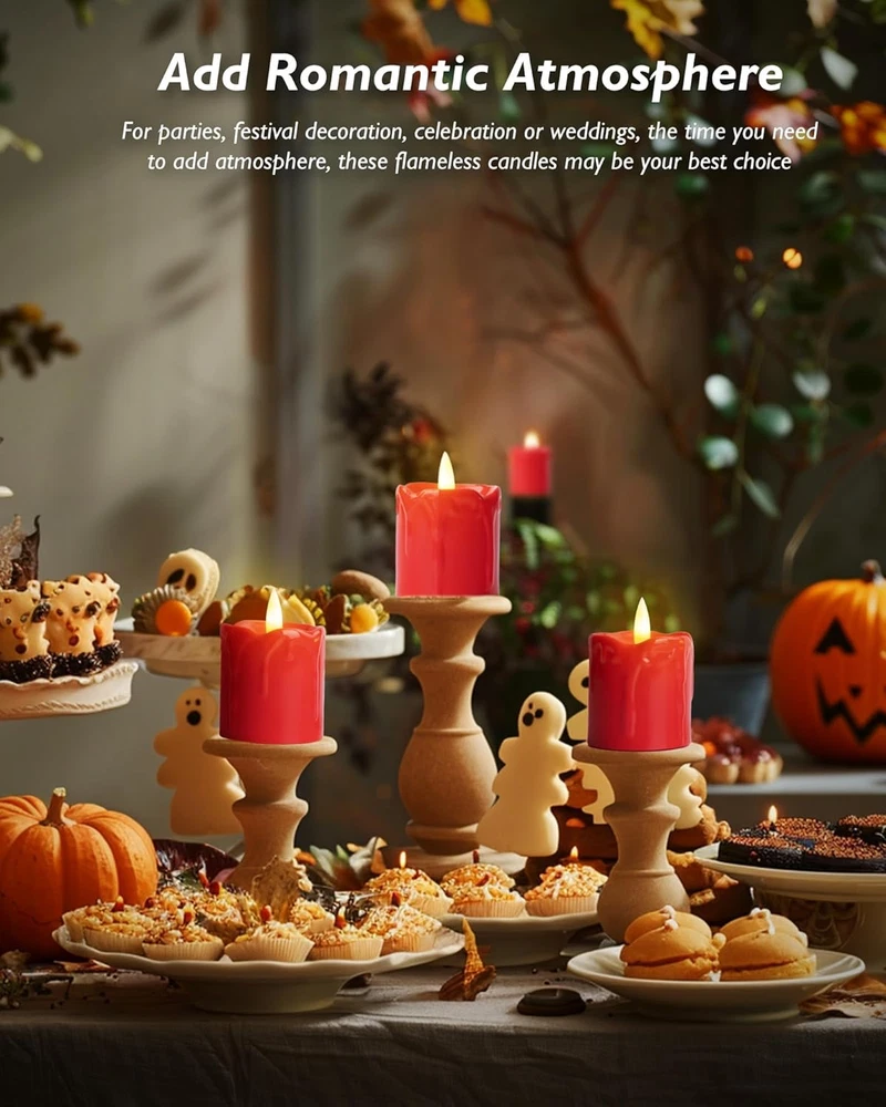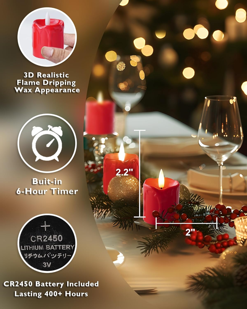 6Pack 2x2 Inch Red LED Votive Candles with 400+ Hour Timer Battery Life Poly Resin Flameless
