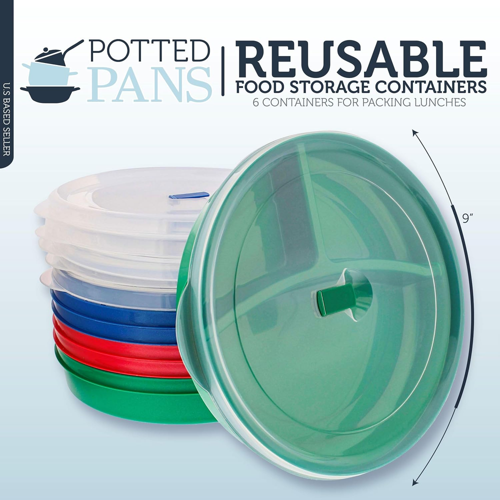 Store New Arrivals Add to Favorite View Feedback Contact Plastic Food Storage Containers with Lids - 6Pk 3 Compartment Meal Prep Containers Reusable Lunch Boxes Description Item Package Quantity 1 Warranty Description This product has a manufacturer warranty against defects in materials and workmanship for a period of one (1) year from the date of original retail purchase. See our seller return policy for more details. Is Microwaveable Yes Capacity 9 Liters Unit Count 1.0 Count Batteries required No Product Dimensions 9"L x 9"W x 1.75"H Material Plastic Is Dishwasher Safe Yes Number of Sets 6 Item Weight 1.69 pounds Color Clear Material Feature Reusable, Recyclable, Microwave Safe, Food Grade Recommended Uses For Product Meals, Dry goods, Leftovers, Meal prepping, Snacks, Fruit, Vegetable, Grain, Protein, Dairy, Soup, Nuts, Sauces, Dessert, Bread, Salad, Condiments, Yogurt, Dry foods, Baking supplies, Spaghetti, Cereal, Oats, Pizza, Chilli, Seed, Egg, Hot food, Cold food, Take-Out, Deli, Pickles, Pastry, Butter Container Shape Round Special Feature stackable, microwave_safe, shatterproof Product Care Instructions Dishwasher Safe Number of pieces 1 [Make Meal Prepping Easier]: Whether prepping meals for the whole week or storing last nights’ leftovers the Potted Pans 6 Pack Plastic Food Containers with Lids will keep your healthy, homestyle meals and snacks fresh [Ready to Serve]: Clear lids fit the 9-inch (22.9cm) diameter meal prep containers reusable storage bowls and allow you to see the contents; Flip open the vent hole on the lid while reheating to prevent messes [Perfectly-Sized Compartments]: Separate proteins from veggies or condiments from salad and fruit; 8 x 5-inch (20.3 x 12.7cm) large section and (2) smaller 3.5-inch (8.9cm) wide sections allow you to measure out portions; 1.75-inch (4.4cm) depth ensures enough space for your entree and side dishes [Reuse Over and Over]: High-quality, thick plastic material ensures that each food container with lid is microwave safe and stands up to repeated use; Wash on top rack of dishwasher for easy cleanup [Stackable Storage]: Each kitchen containers storage set includes 2 blue, 2 red, and 2 green food prep containers and 6 storage lids; Each storage lid features an indented ring that matches the footing to the camping food storage bowls so you can easily stack these in your fridge or freezer Product Description ABOUT US We offer the best prices around on high quality products. Our E-store includes media such as books, movies, music and games while offering electronics, toys, sporting apparel, clothing, tools, general home, garden items and more. SHIPPING We are always working hard to ensure your package arrives as soon as possible. Please understand that some factors like weather, high postal traffic, and the performance of shipping companies are outside of our control. We offer free shipping to the lower 48 states and ship within 2 business days of payment, usually sooner. We do not accept P.O. Boxes. Please provide a physical address. For shipping outside of the continental USA, we only use eBay's Global Shipping Program.The item is shipped to KY and then sent to the rest of the world. International customers are responsible for all duties and taxes. Continue to check out in order to calculate costs for shipping the item to your country. Messages regarding eBay's Global Shipping Program MUST be directed at eBay EXCLUSIVELY. RETURNS We offer a 30-Day Return Policy on items which you are not completely satisfied with. You have the option for a full-refund or an exchange of the item. No returns are available on items shipped outside of the USA. PAYMENT We accept PayPal. CONTACT US This page content is yet to come Please ad us to your favorite seller and visit again later Thank You CUSTOMER SATISFACTION We try our very best to make sure every customer is completely satisfied. If there's a problem, message us! We're happy to help. WE ACCEPT Copyright © 2021 AutoDS. | All Rights Reserved