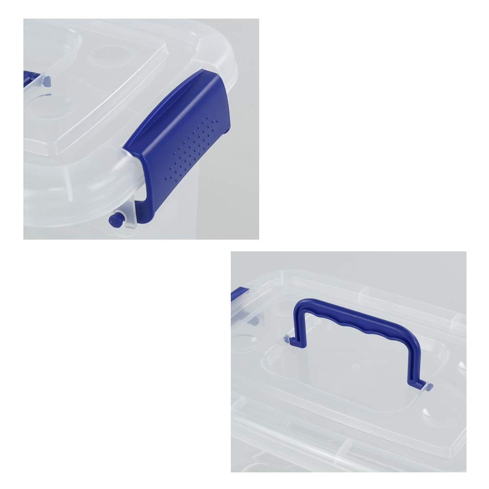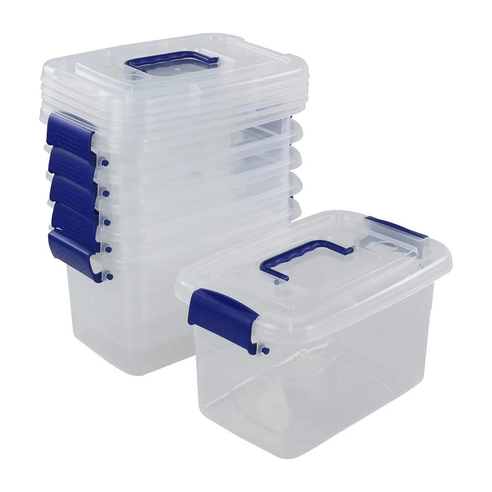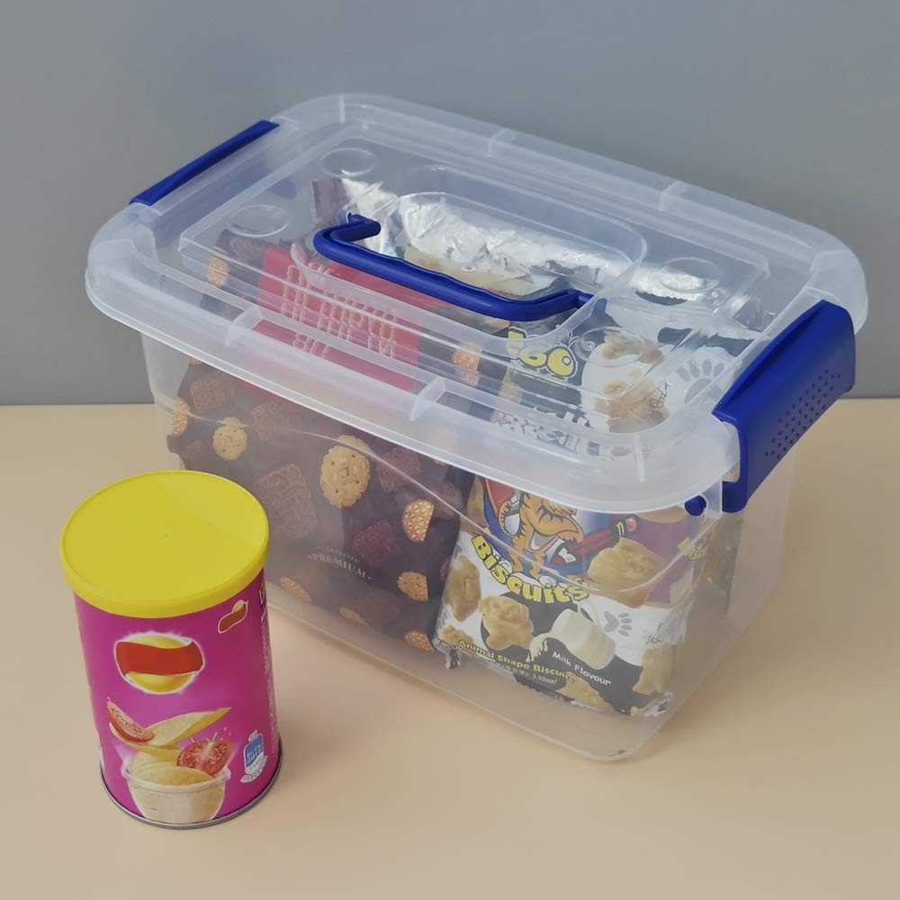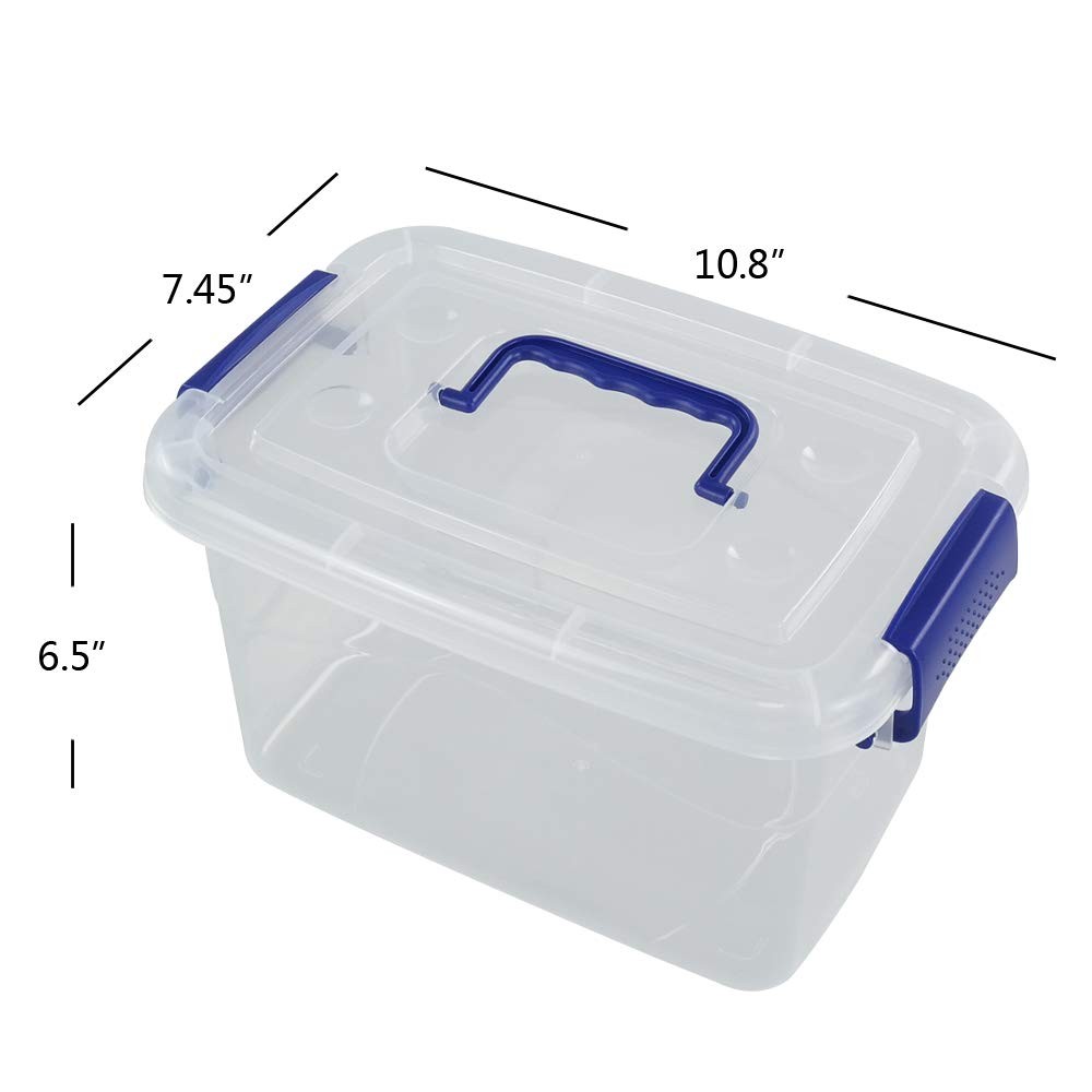 5 quart storage capacity with latches Size: 10.8" x 7.45" x 6.5" Inside size: 8.7" x 5.3" x 5.9" Made from durable plastic Good storage helper for your whole family