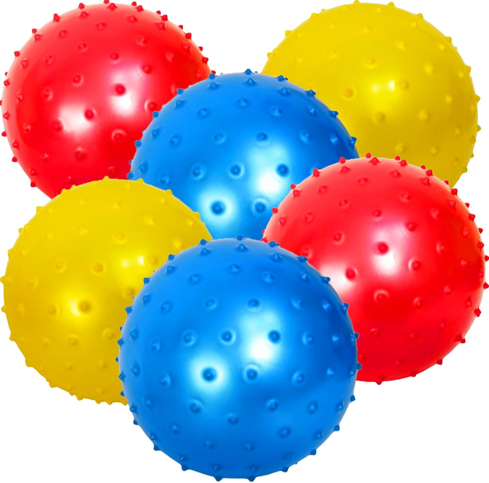 7-inch Knobby Balls, Pack of 6 with 1 Air Pump. Made of high-quality, non-toxic PVC material, these sensory balls are safe for kids to play with. They are perfect for indoor and outdoor activities, birthday parties, and carnivals. Unique Design: The sensory balls feature a variety of textures, including bumpy, soft, and squishy, which provide different sensory experiences for children. They are also lightweight and easy to grip, making them perfect for small hands. Inflatable: The sensory balls are inflatable, which makes them easy to store and transport. They can be filled with air using the pump (Included in the package)and then deflated when not in use. Great for Stress Relief: Playing with these sensory balls can help relieve stress and anxiety. They provide a tactile sensation that can help children relax and focus. Easy inflation and deflation. Insert the needle into the air hole for inflation; Insert the needle only without the barrel of the pump for deflation. No additional plug needed to close the air hole. Product Description 7-inch Knobby Balls, Pack of 6 with Air Pump These Fun Sensory Balls are perfect for kids' parties, classroom activities, and more! Made of non-toxic PVC material, they are safe for children to play with and are designed to be soft yet durable. The balls can be easily inflated to different sizes depending on your preference, and they come in a variety of bright, fun colors, making them a great addition to any party or event. Lightweight and easy to throw and catch, these sensory balls are also excellent for promoting physical activity and coordination. Whether you're looking for a fun way to keep kids entertained or need a sensory activity for your classroom, these Fun Sensory Balls are a fantastic choice. Easy inflation and deflation. Insert the needle into the air hole for inflation; Insert the needle only without the barrel of the pump for deflation. No additional plug needed to close the air hole. Key Features Fun Sensory Balls for Endless Entertainment! These 7-inch Knobby Balls are a delightful addition to kids' parties, classroom activities, and various events. Crafted from non-toxic PVC material, they ensure safe playtime for children. The balls are designed to be soft yet durable, allowing for easy inflation to your desired size. Vibrant Colors & Versatile Use Each pack includes six balls in a variety of bright colors, making them a vibrant addition to any gathering. These sensory balls are perfect for promoting physical activity and improving coordination. Lightweight and easy to throw and catch, they are ideal for outdoor games and activities. Simple Inflation & Deflation Our Fun Sensory Balls come with an easy-to-use air pump. Inflate the balls by inserting the needle into the air hole. Water Play Sensory Balls – Perfect for Pools, Beaches, and Splash Pads – Float, Bounce, & Fun for Active Kids! These sensory balls are ideal for water play! Whether in the pool, at the beach, or in a splash pad, kids can enjoy tossing, floating, and bouncing these balls on water, adding an extra layer of fun to any water activity. Their buoyant design makes them perfect for wet environments, encouraging physical activity and coordination in and out of the water. Our Advantages Child-Friendly and Safe Made from non-toxic, thick material, these balls are designed to be soft and safe for children. They are easy for little hands to grip, ensuring fun for babies, toddlers, and kids aged 2+. Parents appreciate their durability and the fact that they won't damage walls or windows. Convenient and Ready to Use The pack includes a hand pump and needle for quick and easy inflation. The balls arrive deflated but can be easily inflated to their full 7-inch diameter, holding their air well for extended playtime. Perfect for Parties These colorful knobby balls make fantastic party favors for children's birthday parties, adding an extra element of fun and excitement.