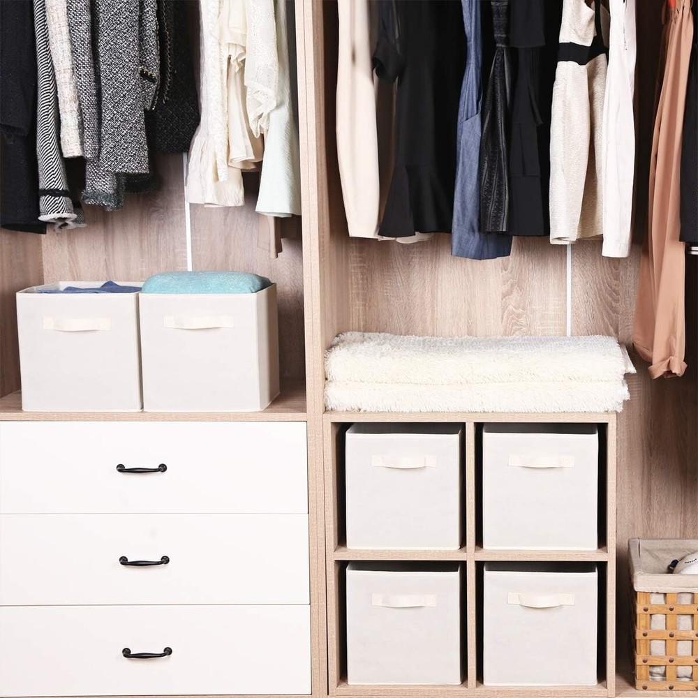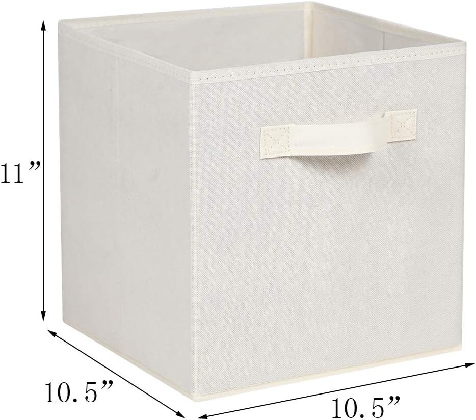 Contenedores De Almacenamiento De Tela, Paquete De 6 Cubos, Color Beige NEW US. ALTA CAPACIDAD Y ALMACENAMIENTO MULTIFUNCIÓN: Juego de 6 piezas, dimensión de 10.5 "x10.5" x 11 "(L * W * H), peso máximo de almacenamiento de 5 kg (11 lb). Ideal para organizar ropa de bebé, ropa interior, calcetines, juguetes, álbumes, juegos, revistas, suministros de artesanía. Diseñado para adaptarse perfectamente a la mayoría de los organizadores de cubos, "puede elegir el tamaño más adecuado de acuerdo con sus necesidades de muebles de almacenamiento antes de realizar una compra". CAJA DE ALMACENAMIENTO PLEGABLE: La característica plegable del cajón de tela significa que ahorra espacio y es cómodo de llevar. Simplemente puede doblarlos cuando no los use o cuando los necesite para viajar. TEJIDO NO TEJIDO ECOLÓGICO Y AMIGABLE PARA EL USUARIO: Esta cesta de tela para almacenamiento está hecha con tela no tejida, que es suave, transpirable y no irritante, protegiendo tanto sus manos como sus artículos. Además, es un material reciclable que no dañará mucho al medio ambiente. CLASIFICA TU DESORDEN: El portaetiquetas en la parte delantera de cada organizador de tela facilita marcar los artículos para una mejor organización. Perfecto para la habitación de los niños, la oficina, la sala de estar, el dormitorio, el armario y cualquier lugar.