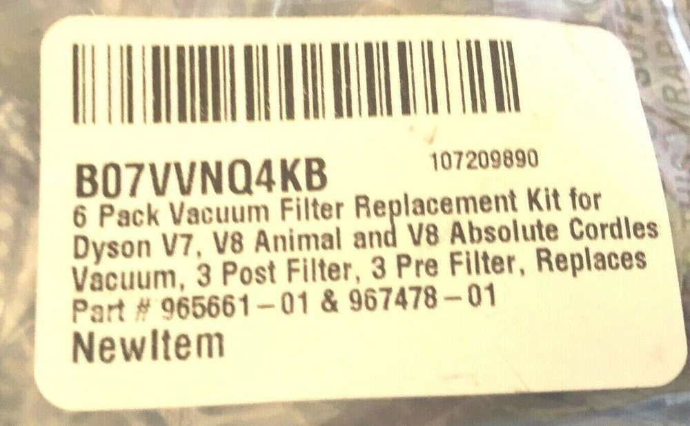 Number in Pack: 6 Type: Filters Model: Dyson V7-V8Animal-V8Absolute Set Includes: 6 Filters UPC: Does Not Apply gtin13: Does Not Apply Compatible Model: 965661-01 & 967478-01 Compatible Brand: For Dyson Brand: Dyson