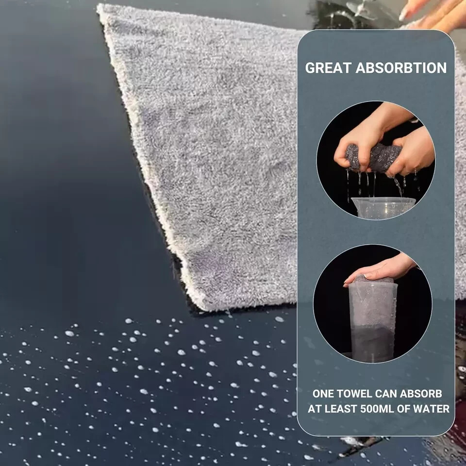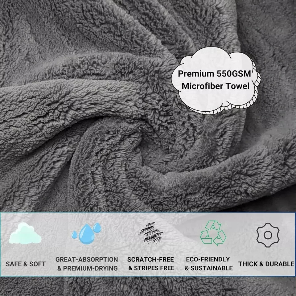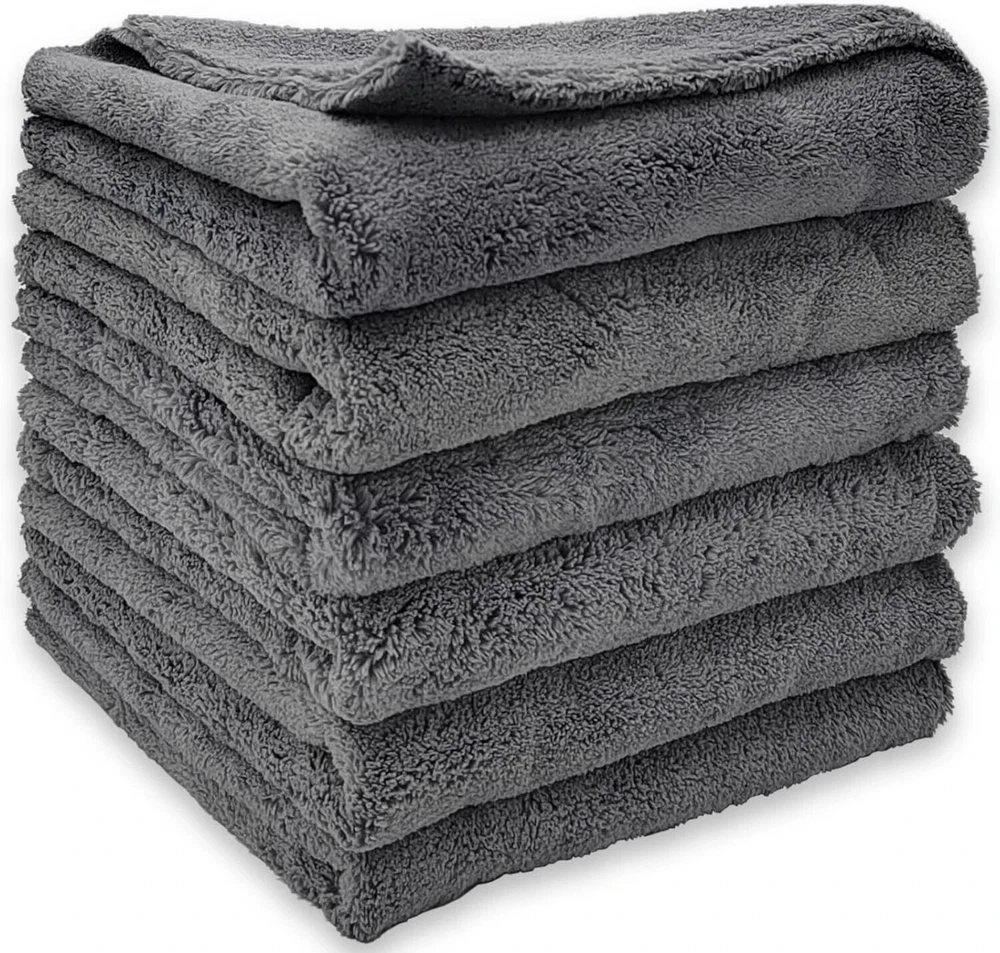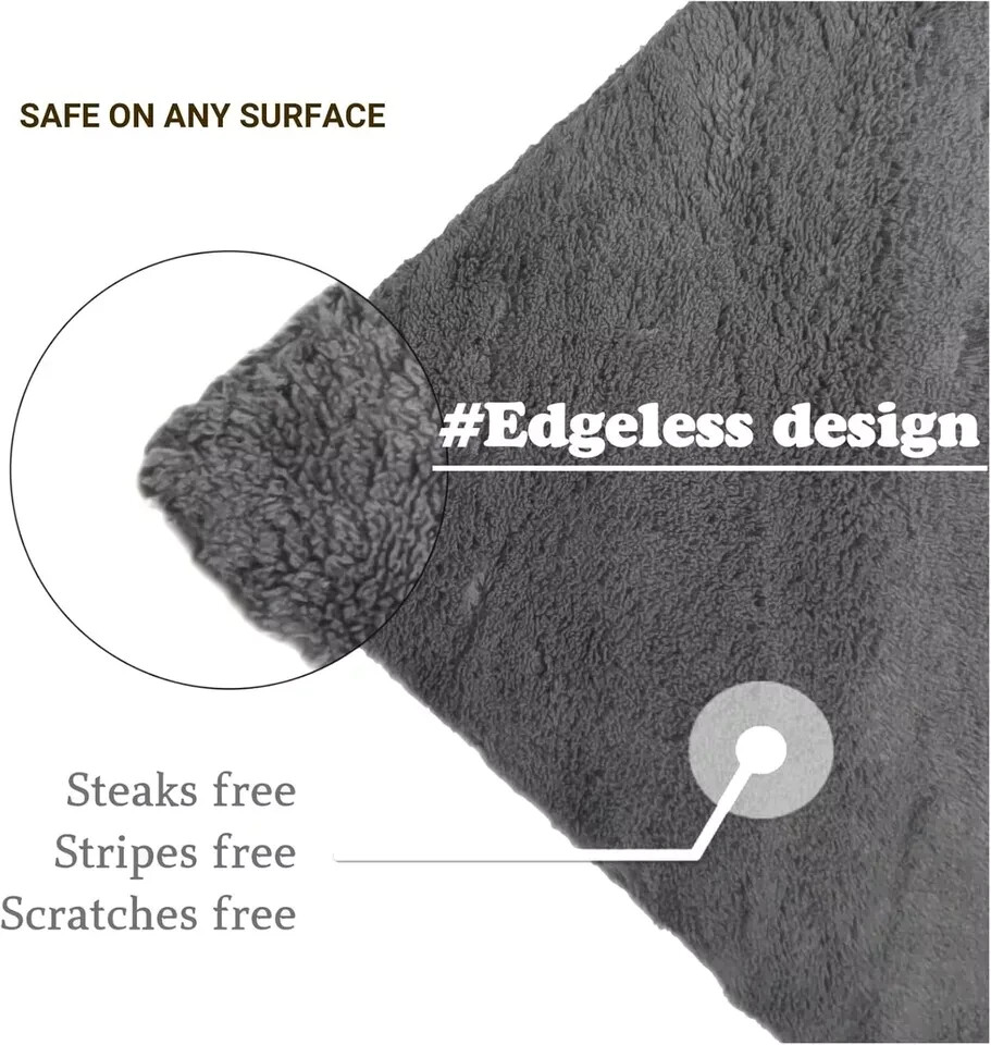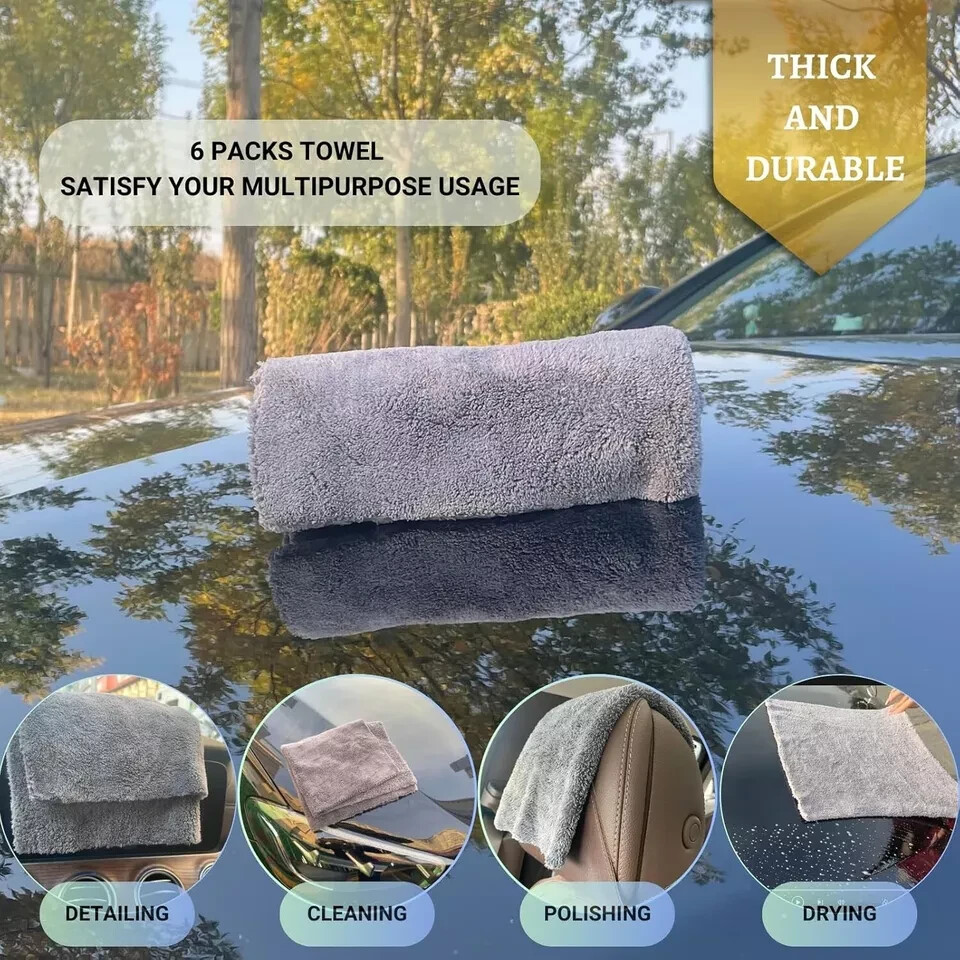 6 Pack Edgeless Microfiber Towels 16 x 16 in Coral Velvet 550 GSM Super Soft New Description 【Premium Microfiber Towel】-The product uses premium 550GSM Coral Velvet ultra-fine plush, edgeless microfiber material towels which means no streaking, no striping and no scratching. Pack of 6 gray 16"x16" microfiber cleaning car clothes are the most popular towels sets. 【Safe On Any Surface】-Microfiber drying towels are super soft, it's not only suitable for car paint coating surface, car washing soap and car interior detailing, but also suitable for all kinds of smooth surface drying polishing, musical instrument cleaning, household cleaning and so on. 【Super Water Absorption】-The coral velvet microfiber cloth with extra long fiber enhance the contact area with water grately. And the water-absorption is twice of the traditional clean superfine fiber in a same size, so the drying time can be greatly reduced. 【Thick And Durable】-Car wash towels will not harden after washing and drying. Our 550GSM microfiber towels for cars caring is more thick and durable than ordinary 450GSM cloths. It can reuse hundreds of times and it's machine washable. It won't fade and leave fluff in corrct care instruction. 【Customer Survice】-Offer a comprehensive after-sale service. If you have any question about our microfiber cloths, pls feel free to contact us. We will try our best to offer you a satisfactory reply.