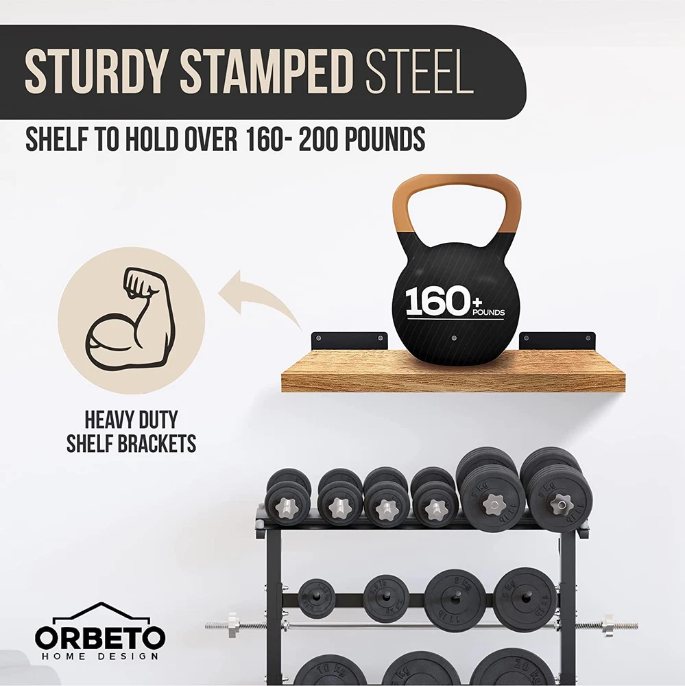 Store New Arrivals Add to Favorite View Feedback Contact Heavy Duty Floating Shelf Bracket (6 Inch-6 Pack) with (1/4”-Thick) Metal Black Description Style BLACK 6 PACK Country of Origin China Thickness 0.25 Inches Batteries Included? No Size Name 6 inch - 6 pack Batteries Required? No Finish Black Number Of Holes 6 Product Dimensions 6 x 4 x 1.6 inches Material Cast Iron, Iron, Metal Installation Method Wall-Mounted Maximum Weight Capacity 160 Pounds Included Components Bag Item Package Quantity 1 Item Weight 5 pounds Size 6 inch - 6 pack Special Features Easy to Install Mounting Type Wall Mount Color Matte Black Shape Corner Manufacturer ORBETO Number Of Pieces 6 [STRONGEST BRACKETS YOU'LL EVER FIND] - Strongest available with sturdy stamped steel, thicker 1/4", and 4 screws instead of the usual 2 to allow shelf to hold over 160- 200 pounds. Great for heavier items like books and collectibles. [ENJOY GENUINE FLOATING BRACKETS] - Special bracket design makes them disappear when in everyday use. You get a true floating shelf experience. Powder Coated to prevent damp air from deteriorating the metal. Will look good and work well for decades of better organization and attractive display. [INCLUDES ALL HARDWARE FOR IMMEDIATE INSTALL (NOT INCLUD BOARDS)] - Heavy duty carbon steel screws with super silicone dry wall anchors to achieve strong grip on any surface. Note the countersunk screw holes that hide the screw inside for a neater, more professional look. [NO INSTALLATION EXPERIENCE NEEDED] – We made a special kit anyone can install with no experience. The detailed illustrated installation instructions are easy to follow. We also include a handy spirit level to ensure your brackets are straight for a level shelf. [120 DAY REFUND] – Enjoy lifetime durability with 100% money back refund for 120 days. Many people are stocking up with several in the various lengths to fully outfit their home and business. Product Description ABOUT US We offer the best prices around on high quality products. Our E-store includes media such as books, movies, music and games while offering electronics, toys, sporting apparel, clothing, tools, general home, garden items and more. SHIPPING We are always working hard to ensure your package arrives as soon as possible. Please understand that some factors like weather, high postal traffic, and the performance of shipping companies are outside of our control. We offer free shipping to the lower 48 states and ship within 2 business days of payment, usually sooner. We do not accept P.O. Boxes. Please provide a physical address. RETURNS We offer a 30-Day Return Policy on items which you are not completely satisfied with. You have the option for a full-refund or an exchange of the item. No returns are available on items shipped outside of the USA. PAYMENT We accept PayPal. CONTACT US This page content is yet to come Please ad us to your favorite seller and visit again later Thank You CUSTOMER SATISFACTION We try our very best to make sure every customer is completely satisfied. If there's a problem, message us! We're happy to help.