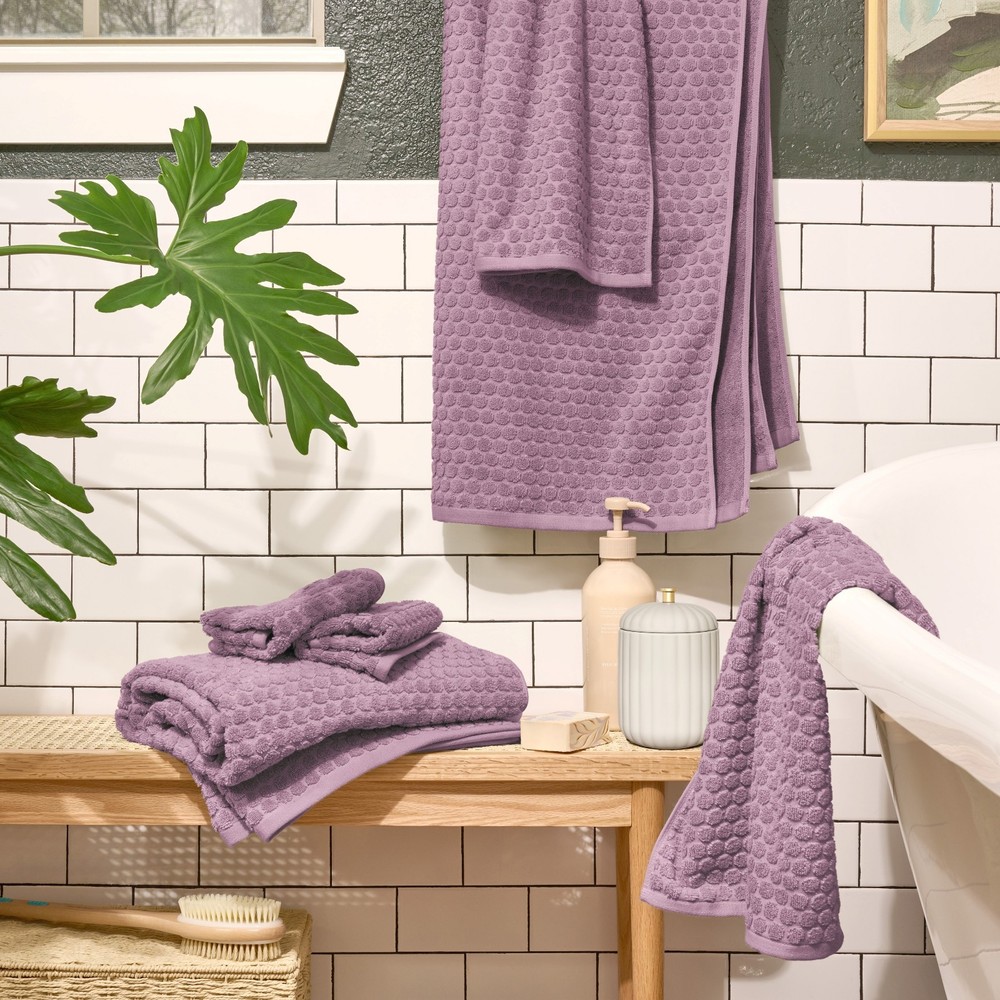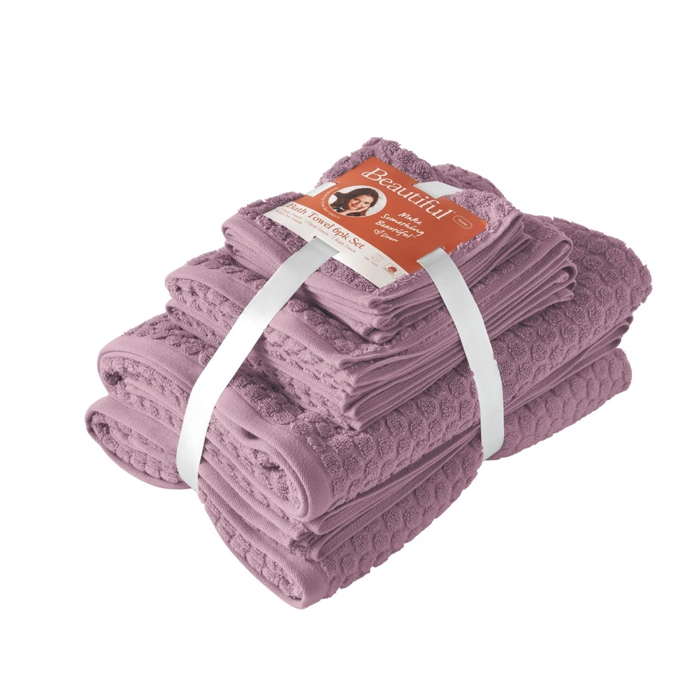 Product details Refresh your bathroom with the Beautiful Towel collection by Drew Barrymore. Bath towels measure 56"x30", hand towels measure 28"x16", washcloth measure 13"x13" and are made of 100% cotton. Designed with a spa-like look and feel but made for everyday use, these towels are soft and durable. Available in an array of colors, patterns and textures, these towels can be mixed and matched to elevate your space. Our machine-washable bath towels are designed to quickly absorb water using zero-twist cotton loops and maintain their vibrant color wash after wash. These towels are low lint and transform your bathroom with the elevated style of a performance textured wash towel. These are a Made in Green Certified product. These are available in 6 different colors. Wash before use. Machine wash cold with like colors. Delicate cycle. Do not bleach. Tumble dry low. Do not iron. Do not dry clean. Shop the entire Beautiful Bath collection including towels, bath rugs and accessories on Walmart.com. Beautiful Dot Textured 6pk Towel Set, Contains 2 Bath, 2 Hand, 2 Wash - Rose Pink by Drew Barrymore Fabric Content: 100% BCI Cotton Dimensions: Bath Towel 56"x30"; Hand Towel 16"x28"; Wash Towel 13"x13" Care: Wash before use, machine wash cold with like colors, delicate cycle, deep colors may bleed, do not bleach, tumble dry low, do not iron, do not dry clean