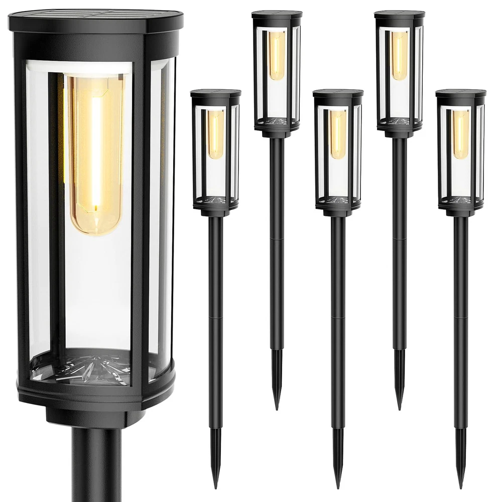 Unique Design & More Durable - Upgraded bright solar pathway lights with a premium transparent lens design and with unique retro filament bulb and strong stake, thicker and more durable material. The bottom design with pattern and drainage holes can project unique light and shadow, no more ponding and fogging trouble. Pathway lights solar powered waterproof are the perfect way to enhance your garden's landscape and light up your path home. Brighter & Easy to Install - solar walkway lights outdoor feature the latest lighting technology and upgraded longer filaments and bulbs, which make solar driveway lights brighter, charge faster and last longer than other solar path lights. No wiring or any tools are required to install these outdoor solar lights for yard. Just push this solar landscape light into the ground and you can install these solar garden lights quickly.quickly. Powerful Battery & 12H Long Lasting - The solar walkway lights outdoor built in more powerful lithium ion rechargeable battery. The solar powered landscape lights can illuminate for 8 -12 hours on a 6-8 hour charge and provide brighter lighting, which works longer than other led solar lights outdoor pathway. IP65 Waterproof & Auto ON/OFF - solar outdoor pathway lights with IP65 waterproof level, ensuring the solar outdoor lights can withstand all bad weather. No need to worry about rain, snow, frost, or sleet. Solar sidewalk lights built-in sensitive light sensors, auto turn on in dark and turn off at dawn. No electricity bills, good ideal for outdoor decorations! (Note: Put switch to “ON” before first time use). Best Gift & Friendly Customer Service - The sidewalk solar lights can provide a perfect lighting atmosphere for any outdoor place, such as garden, yard, lawn, path, walkway, patio, porch, balcony, etc. Walkway solar lights for outside are great gifts for Housewarming, Christmas, Birthday, Holiday, etc. If you have any questions about our solar landscape path lights please contact us immediately. We will provide satisfactory solutions for our outdoor lights solar powered. 【Note】: 1.We placed the STAKE in the Pole, you just need to gently pull the Stake out of the Pole. Please do not make the mistake of thinking that the Stake is missing. 2.In winter and on cloudy days, outdoor path lights solar powered will work less hours and less brightly than expected. Please do not mistake this for a defective product.