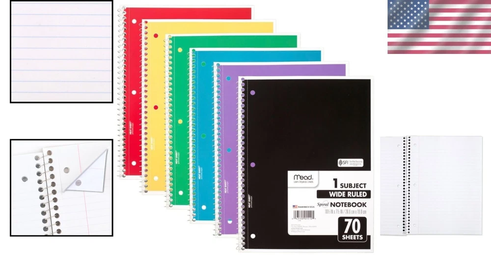 Brand: Unbranded Sheet Size: 7.5x10.5 Inches Model: Spiral Notebooks 6 Pack Specific Uses For Product: School, Note Taking Product Dimensions: 10.5 X 1.38 X 8.3 Inches UPC: Does not apply Color: Color Will Vary Pages: 70 Size: A5 Cover Material: Cardboard Material Type: Paper Number Of Items: 6 Special Feature: Perforated_pages Theme: Spiral Notebooks 6 Pack Style: Classic Item Weight: 1 Pounds Brightness Rating: 50 Lumen Paper Finish: Ultra Smooth gtin13: Does not apply Gender: Boys & Girls