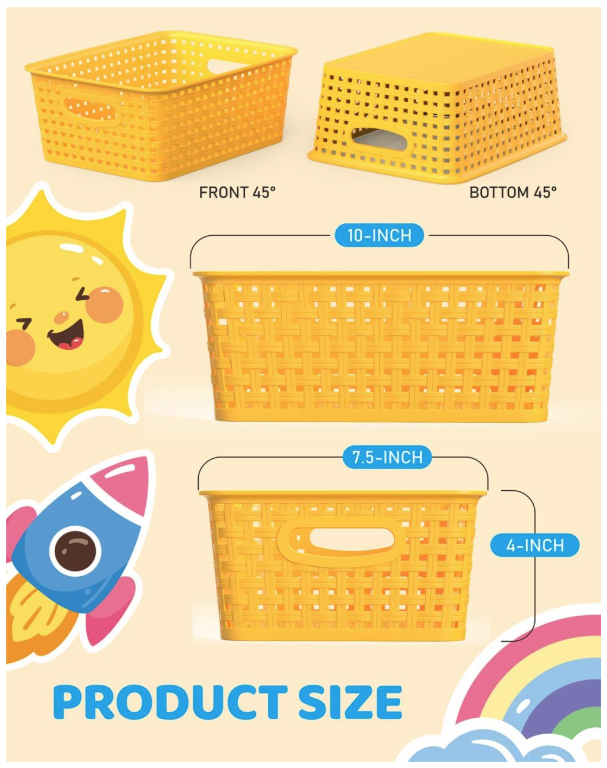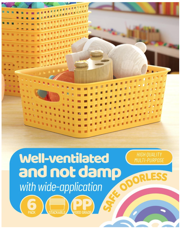 6-Pack Plastic Small Shelf Storage Weave Baskets Organizing for Cabinets and Pantries, Yellow Small 6 pack plastic basket, weave storage organizer basket, perfect to service for kitchen/ bathroom/ classroom and so on, outside dimensions: 10" length x 7.5" width x 4" height. Simplify plastic storage baskets are hassle-free stack able when not in use for maximum space utilization, and its combined tote allow you to move them with ease. Take it wherever you need storage. For convenient storage basket that are built with the sturdiness to give you years of service . The basket durable plastic body with wicker design are built to last from premium grade materials. The polypropylene plastic wicker storage basket are great for small miscellaneous, linens, bath and beauty products, magazines, etc. Versatile design and features to organize any space in your home, dorm room or office. We adhere to the best product delivery and the most uncompromising quality. The trust placed by our discerning customers earned over the years. Fulfillment of our customer's need are core of our vision. SHIPPING: We offer FREE shipping on all orders! We ship within Three business days of payment, usually sooner. We use a selection of shipping services such as UPS, FedEx, USPS etc. We only ship to the lower 48 states, no APO/FPO addresses or PO Boxes allowed. Local pickups and combined shipping options are not provided at this time. PAYMENT: We accept payment by any of the following methods: PayPal Please pay as soon as possible after winning an auction, as that will allow us to post your item to you sooner! FEEDBACK: Customer satisfaction is very important to us. If you have any problem with your order, please contact us and we will do our best to make you satisfied. Thank you for shopping with us!