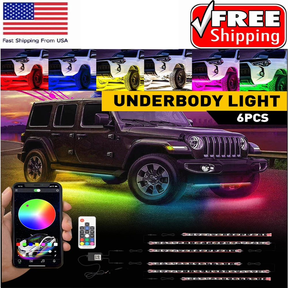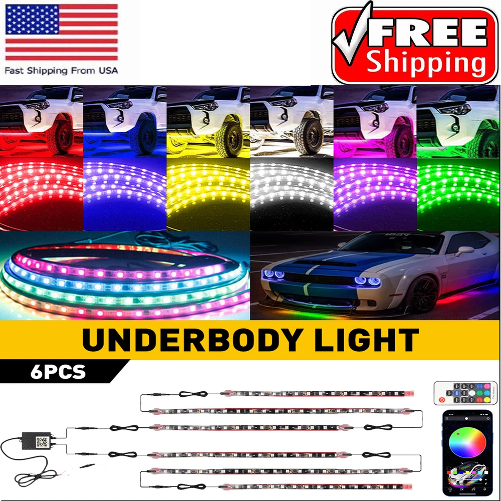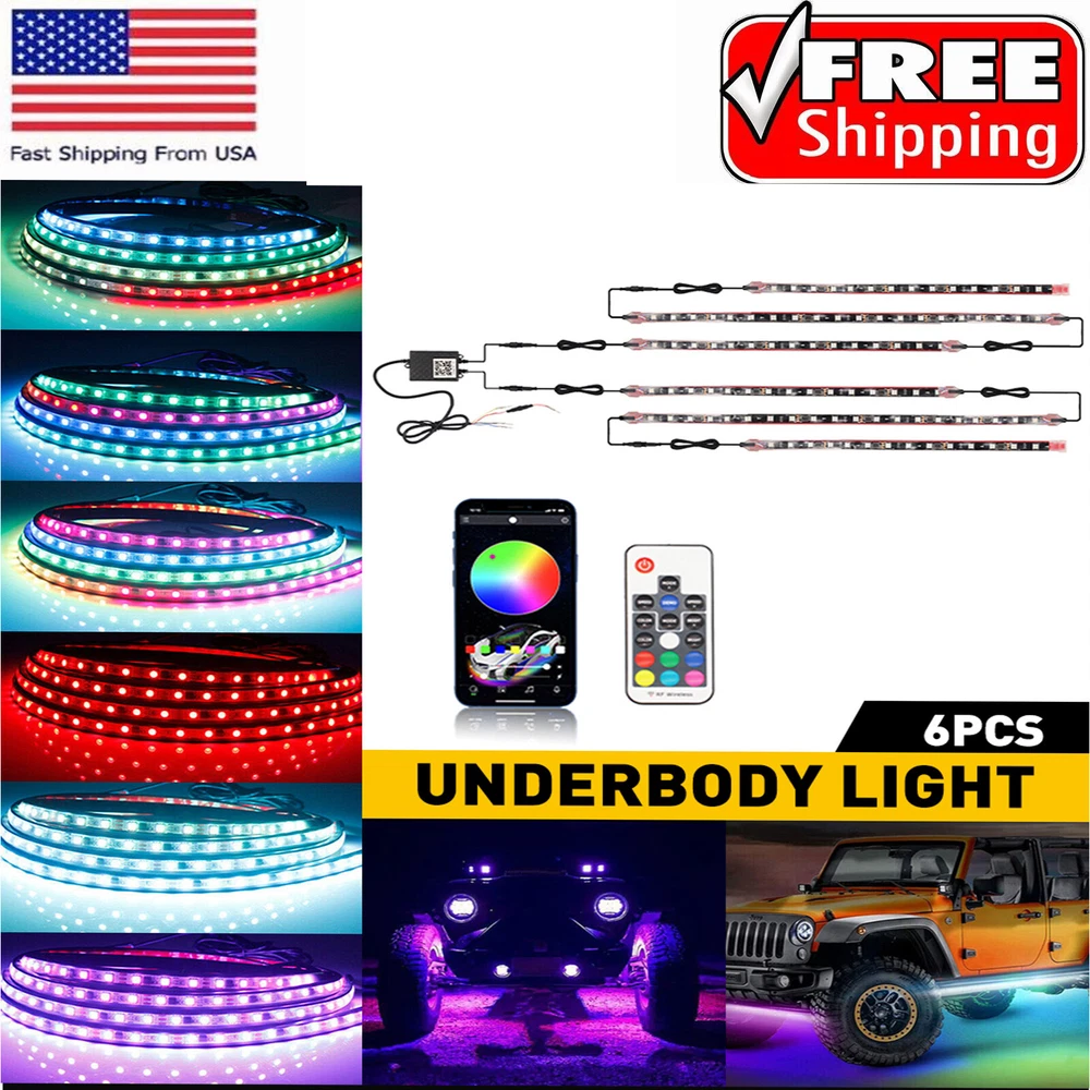 6Pc Car RGB LED Underglow Smart Light Neon Strips Accent Kit Dream Color Chasing