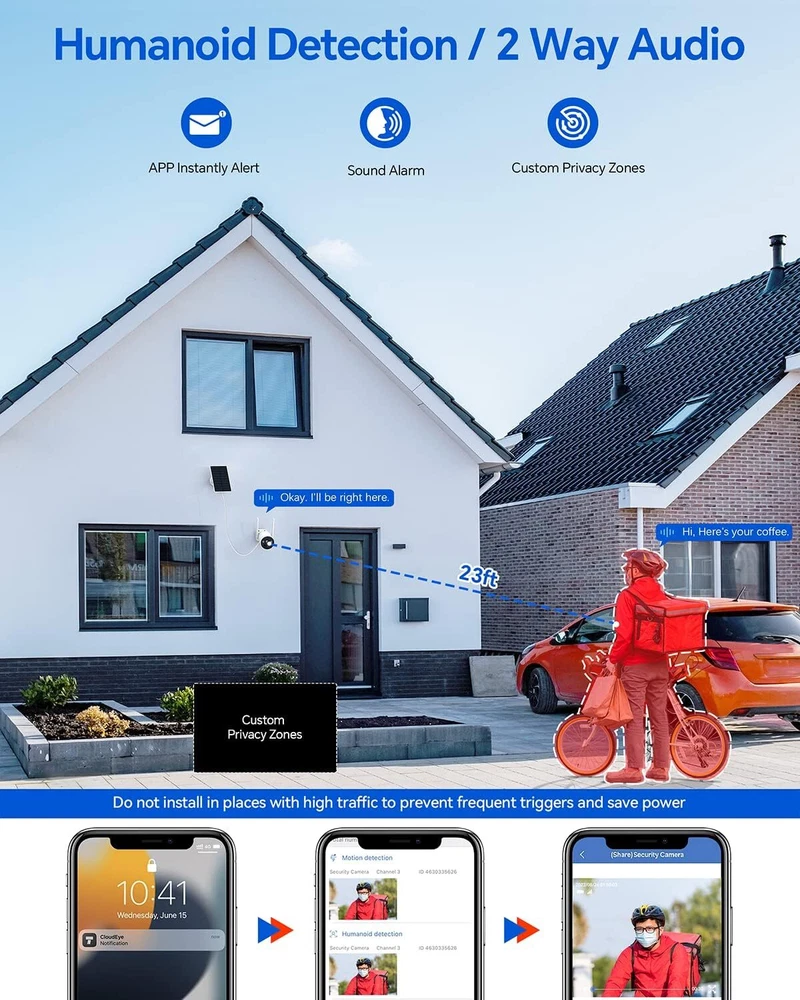 New Releases 2MP 10CH NVR Full Color Wireless PT IP Security Camera System 2 Way Audio Record 179.54 USD 188.99 USD Free shipping 5% off TOGUARD 8CH 1080P Wireless Security Camera System NVR CCTV Cam w/12" LCD Monitor 256.49 USD 269.99 USD Free shipping 5% off CAMCAMP 8CH 4K POE Security Camera System IP Camera 3TBHDD 2-way Audio AI Detect 275.49 USD 289.99 USD Free shipping 5% off TOGUARD 8CH NVR 1080P Video Wireless Security Camera System Outdoor WIFI CCTV3TB 189.71 USD 199.69 USD Free shipping 5% off Wireless Solar Powered Security Camera System, Include 6PCS 100% Wire-Free Camera & NVR (Pre-Installed 500GB HDD) , Forever Power, 4MP Color Night Vision, IP66 Waterproof, PIR Motion Detection Ship from US! Fast shipping! 100% Satisfaction! 4MP Wireless Solar Powered Security Camera System, 6PCS 100% Wire-Free Camera Kedwords: đŸ ăMini NVR & 500GB HDDă There is a wireless private connection between the NVR and wireless security cameras, which ensures more stable, farther, faster transmission and maximize information security. Equipped with a pre-installed 500GB hard drive, which has enough memory space to store more videos, and supports playback videos up to several years ago đ» ăSupport external displayă The NVR supports external display, local viewing is clear at a glance, equipped with a mouse, and supports HDMI high-definition video output. Built-in stereo loudspeakers. It's not necessary to connect to the network when watching locally đ¶ ăSolar Powered & 100% Wire-freeă Wireless security camera system includes 6 rechargeable cameras and 6 solar panels. Solar panels can better extend the battery life of the camera and charge the camera under light. No need for power and network cables when installing, 100% wire-free đ„ ă4MP 32ft 120° color night visionă 4MP (2592Ă1944P) wireless home security system adopts 4mm lens, 10x digital zoom, 2 LED lamp beads, 5DB antenna. Dual LED light source support 4MP 32ft 120° color night vision. Turn on the spot light in APP to achieve color night vision đ ăSmart PIR motion detection & APP instant alertsă Wireless solar security camera system adopts PIR motion detection. Recording will only be started when a heat source is detected. Then camera system will push an instant alerts to the APP. The PIR induction distance is 32ft đ ăTwo-way audio & Multi-device sharingă There are microphones and speakers on the wireless home security camera system which supports real-time response. It will be more convenient for you to communicate with family or guests through the APP. SC17 security system supports multi-device sharing with family members đ ăAPP remote & custom privacy zonesă Connect NVR to router or connect display to WiFi. Then download the APP and scan the QR code on the NVR to add the device( download "CloudEye" for iOS / "Eseecloud" for Android ). You could live view video or playback videos in APP. Support for adding privacy zones in APP Equipped with a pre-installed 500GB hard drive, which has enough memory space to store more videos, and supports playback videos up to several years ago.. 500GB Hard Drive Support Watching Locally Non-stop Solar Power 100% Wire-Free Color Night Vision Local Playback Interface APP Playback Interface Download "CloudEye" APP for iOS / "Eseecloud" APP for Android Return 1. Accept Return in 30 days for refund or replacement, goods in resalable condition 2. Offer one year for repair warranty 3. Contact for address and reference number before return(note: unannounced parcel may be returned to wrong address, seller will not be responsible for this 4. First 2 months of purchase, buyer pay return postage, seller pay postage for replacement, After 2 months of purchase, non-quality problem, 2 ways of shipping cost paid by the buyer, After 4 months, two way shipping cost paid by the buyer in any circumstances 5. No factory warranty for the man-made damage(Such as dismantle mainboard, damage screen etc), Our company offer service, factory may charge for repair, contact us for details Shipping Fast shipping by US LOCAL FAST SHIPPING , Mostly, all of the products will be shipped out within 1 working day after we received the payment and your contact phone number, We always ship to your paypal address, so if your shipping address is not matched with it, please note the address you want us to ship in paypal Why Choose the US Stock ? 1. US Local Shipping, No Extra Customs Cost to the US 2. Fast Delivery: 2-5 Working days Delivery 3. Best After-Sales Service!!! Feedback Please leave five stars positive feedback positive comment and Five-Stars . Contact us if you have any question, Give us a chance to serve you, negative feedback could not solve anything. communication Please! Payment We accept all major Credit cards, PayPal, and Google Pay. Taxes may be applicable at checkout.