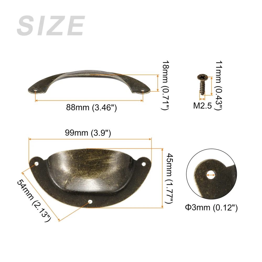 Document APPLY TO Can be used in all kinds of home furniture and kitchen furniture such as dressers cupboards drawers wardrobes closets wooden boxes and more.SPECIFICATION:Overall Dimensions: 99mm(L)x45mm(W)x18mm(H)/3.9"x1.77"x0.71"Hole Dia: 3mm(Dia)/0.12"Hole Distance : 88mm(L)/3.46"Screw Size: M2.5(Dia)x11mm(L)/0.098"x0.43"Screw Fit for Board Thickness: 8.5mm(T)/0.33"QUANTITY INCLUDED 6pcs x Cup Pull Handles; 18pcs x Mounting Screws.ADVANTAGE Carbon steel material with painting coating corrosion resistance no rust durability strength and easy to clean.INSTALL: Manually or with a power tool using a Phillips screwdriver. Each product contains 18 pieces of screws. 6Pcs Cup Pull Handle 99x45mm Carbon Steel Cup Handle Drawer Pull with Screw APPLY TO Can be used in all kinds of home furniture and kitchen furniture such as dressers cupboards drawers wardrobes closets wooden boxes and more. SPECIFICATION: Overall Dimensions: 99mm(L)x45mm(W)x18mm(H)/3.9"x1.77"x0.71" Hole Dia: 3mm(Dia)/0.12" Hole Distance : 88mm(L)/3.46" Screw Size: M2.5(Dia)x11mm(L)/0.098"x0.43" Screw Fit for Board Thickness: 8.5mm(T)/0.33" QUANTITY INCLUDED 6pcs x Cup Pull Handles; 18pcs x Mounting Screws. ADVANTAGE Carbon steel material with painting coating corrosion resistance no rust durability strength and easy to clean. INSTALL: Manually or with a power tool using a Phillips screwdriver. Each product contains 18 pieces of screws. Hot Item Payment 1.We accept eBay payment . 2.Payment must be received within 7 business days of auction closing. Shipping 1.We ship to your eBay or Paypal address. Please make sure your eBay and Paypal address is correct before you pay. 2.Items will be shipped within 1-3 business day when we received payment. 3.Delivery time depends on destination and other factors. Description Policy 6Pcs Cup Pull Handle 99x45mm Carbon Steel Cup Handle Drawer Pull with Screw APPLY TO Can be used in all kinds of home furniture and kitchen furniture such as dressers cupboards drawers wardrobes closets wooden boxes and more. SPECIFICATION: Overall Dimensions: 99mm(L)x45mm(W)x18mm(H)/3.9"x1.77"x0.71" Hole Dia: 3mm(Dia)/0.12" Hole Distance : 88mm(L)/3.46" Screw Size: M2.5(Dia)x11mm(L)/0.098"x0.43" Screw Fit for Board Thickness: 8.5mm(T)/0.33" QUANTITY INCLUDED 6pcs x Cup Pull Handles; 18pcs x Mounting Screws. ADVANTAGE Carbon steel material with painting coating corrosion resistance no rust durability strength and easy to clean. INSTALL: Manually or with a power tool using a Phillips screwdriver. Each product contains 18 pieces of screws. Hot Item Payment 1.We accept eBay payment . 2.Payment must be received within 7 business days of auction closing. Shipping 1.We ship to your eBay or Paypal address. Please make sure your eBay and Paypal address is correct before you pay. 2.Items will be shipped within 1-3 business day when we received payment. 3.Delivery time depends on destination and other factors.