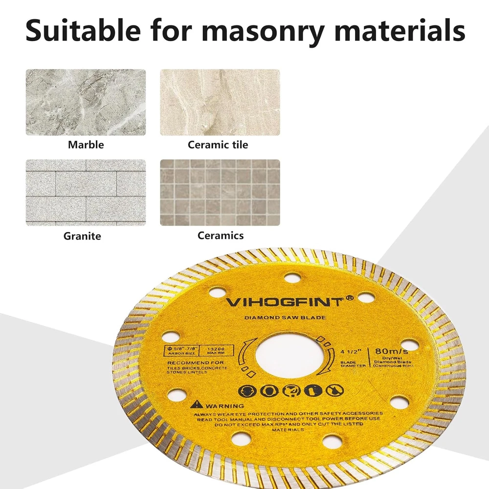 Store New Arrivals Add to Favorite View Feedback Contact 6Pcs Diamond Saw Tile Cutting Blade - 4 1/2 Inch Super Thin Dry Wet Cutter Angle Grinder Diamond Blades for Porcelain Ceramic Granite Concrete Marble Tiles 4.5 Inches Description Item Thickness 0.06 Inches Style Industrial Number of Items 6 Compatible Material Porcelain,ceramic,granite,concrete,marble,tiles Color Gold Product Dimensions 4.5"L x 4.5"W Material Diamond Country of Origin China Item Weight 6.24 ounces Number of Teeth 16 Size 4.5inch Universal Compatibility: The 4.5inchs diamond blade designed to fit seamlessly with hand-held angle grinders, air cut off tools, and electric cut off tools featuring 7/8" or 5/8" arbor size. Enjoy the flexibility of using it for both dry and wet cutting applications. Low resistance and low noise cutting: Equipped with / teeth rim edge, these diamond saw blade lightning-fast and ultra-smooth cutting experiences. With a mere 1.5mm thickness, you can achieve remarkably smooth, fast, and whisper-quiet operations. Chip-Free Precision: Crafted as a super thin porcelain saw blade, it effortlessly tackles cutting tasks, leaving your materials free from unsightly chips. Perfectly engineered to complement ceramic tile cutter,concrete cutter delivering precise results. Versatile Applications: From porcelain and ceramic tiles to granite, sandstone, quartz, and more – these diamond saw blades are your go-to solution for various materials, making it an indispensable tool in your arsenal. Perfect Dimensions: Measuring 115 x 20 x 1.5mm (Outer Diameter: 115mm / 4.5 inches), these circular saw blades are tailored to fit most tile saws and hand-held angle grinders with a 7/8" or 5/8" Arbor. Enhance your cutting prowess with these top-quality diamond tools! Super Durable: Even though diamond saw blades are a consumable product, we still endeavor to enhance their service life through our advanced forging process to save your cost. Product Description Easily cuts a wide range of building materials Durable, sharp, low vibration Industrial 4-1/2-Inch Dry or Wet Cutting Continuous Rim Diamond Saw Blade with 5/8 - 7/8-Inch Arbor Diamond saw blades for dry or wet cutting: The small pieces on the diamond edge blade allow air to pass through, which cools the blade quickly. This creates a cooling effect, and the air dispersed throughout the blade serves the same function. With the perfect design, this blade cuts faster while still pushing the material out. This blade is effective in cutting concrete, brick and limestone materials. Warm Prompt: For your personal protection, before you start working we recommend that you wear safety glasses, dust aspirators, welding gloves, safety shoes, and other appropriate equipment.(Take good care of your eyes/ears/face/hands/body/etc) ABOUT US We offer the best prices around on high quality products. Our E-store includes media such as books, movies, music and games while offering electronics, toys, sporting apparel, clothing, tools, general home, garden items and more. SHIPPING We are always working hard to ensure your package arrives as soon as possible. Please understand that some factors like weather, high postal traffic, and the performance of shipping companies are outside of our control. We offer free shipping to the lower 48 states and ship within 2 business days of payment, usually sooner. We do not accept P.O. Boxes. Please provide a physical address. For shipping outside of the continental USA, we only use eBay's Global Shipping Program.The item is shipped to KY and then sent to the rest of the world. International customers are responsible for all duties and taxes. Continue to check out in order to calculate costs for shipping the item to your country. Messages regarding eBay's Global Shipping Program MUST be directed at eBay EXCLUSIVELY. RETURNS We offer a 30-Day Return Policy on items which you are not completely satisfied with. You have the option for a full-refund or an exchange of the item. No returns are available on items shipped outside of the USA. PAYMENT We accept PayPal. CONTACT US This page content is yet to come Please ad us to your favorite seller and visit again later Thank You CUSTOMER SATISFACTION We try our very best to make sure every customer is completely satisfied. If there's a problem, message us! We're happy to help. WE ACCEPT Copyright © 2021 AutoDS. | All Rights Reserved