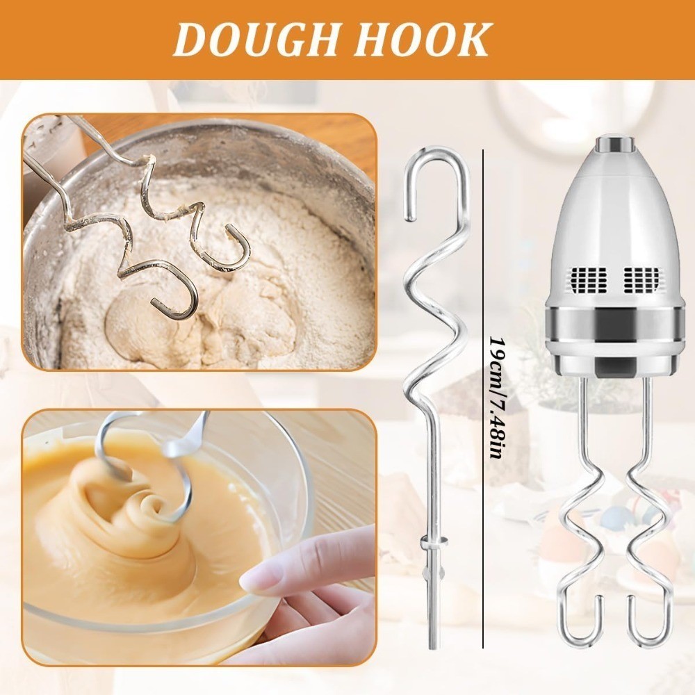 About this item 【High Quality Stainless Steel Material】Food grade 304 stainless steel hand mixer attachments, anti-rust, anti-stick & anti-corrosion, durable material that are safe for food contact and ensure long-lasting and effective performance. The smooth, polished surface ensures no food residue is left behind, making cleanup effortless. Simply wash them by hand or place them in the dishwasher for quick and thorough cleaning 【Widely Compatibility】The Hand Mixer Attachments are designed specifically for Kitchenaid hand mixers. Compatible with Kitchenaid hand mixer models KHM3, KHM5, KHM7, KHM9, KHM926, KHM512, KHM312, KHM7210, KHM920, KHM720, KHM53. Please make sure your hand mixer is properly compatible before ordered 【6 Pack Hand Mixer Accessories Kit】2* left and right turbo style stainless steel beaters, 1* wire whisk, 2* dough hooks, 1* liquid blending rod. These hand mixer attachments can meet a variety of mixing needs, ensuring you have the right attachment for every kitchen task. Ideal for kitchen enthusiasts and professional chefs 【Function of Hand Mixer Attachments】Hand mixer replacement beaters are suitable for mixing thick ingredients such as batters, creams, and dough. Whisk attachment is suitable for beating liquids, whipping egg whites, and creating froths. Hand mixer replacement parts blending rod is suitable for liquid blending tasks, such as making smoothies, chocolate milk, drink mixtures, soups, and sauces. Hand mixer dough hooks are used for kneading dough, especially for making bread, pizza dough, and other types of dough that require thorough kneading 【Versatile Kitchen Essential】Hand mixer beaters attachment set is a good helper for your cooking and baking. It makes kitchen tasks quicker and easier, allowing for efficient mixing and blending of ingredients. These hand mixer attachments are perfect for mixing flour, butter, sugar, eggs, and even whipping cream. Whether it is used at home or in a dessert shop, bakery or restaurant, it is one of your important assistants
