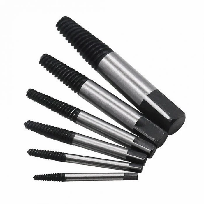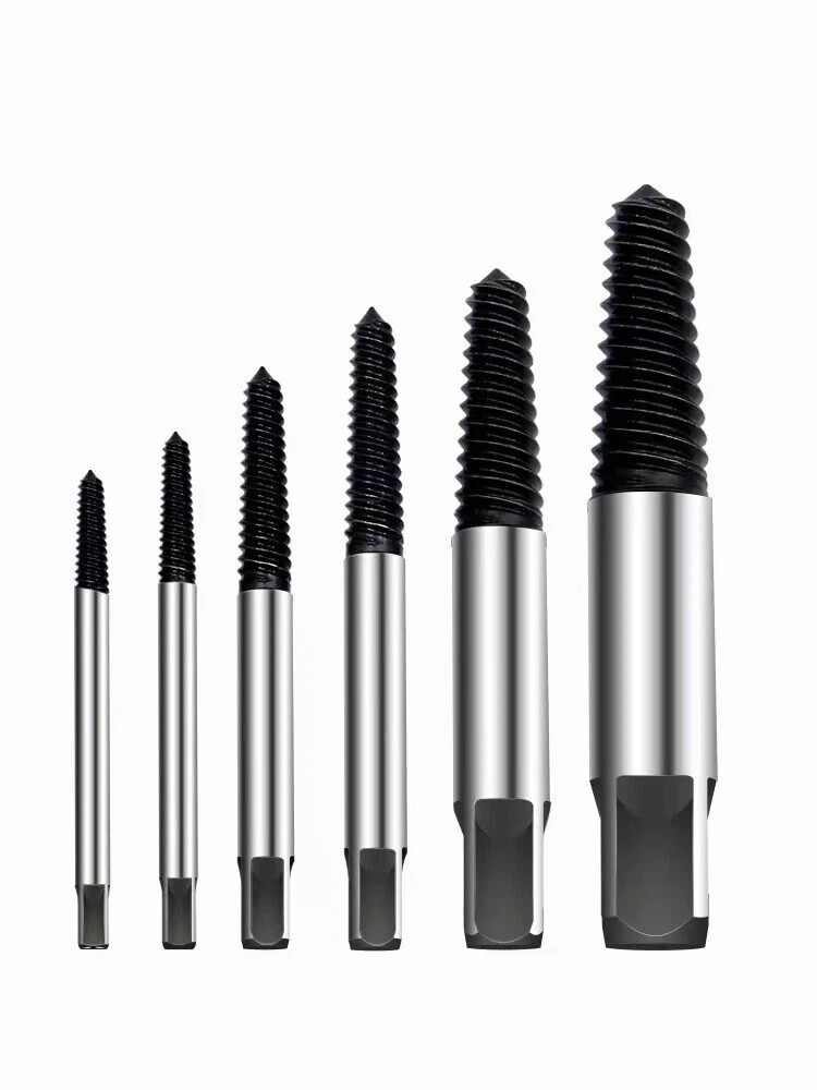Damaged Screw Extractor Get Out Drill Bits 6 PCS Tool Set Broken Bolt Remover Feature: - These screw extractor removal tools can remove sunken, peeled, rusted, cracked or corroded screws and bolts, remove broken fasteners without damaging or jamming, suitable for industrial or daily household repair work. - In just easy steps, only need a drill, choose a smaller extractor than the damaged screw, can easily remove the screw, please ensure to run the drill in reverse during this process. The operation is convenient and simple, saving a lot of time and energy. - These screw extractor was made of high quality Chrome Vanadium Steel material, and the steel is quenched, high hardness, toughness, strong wear resistance, sharp cutting edges that easily bit into seized screws & nuts, and long service life . - 6-piece heavy duty screw extractor set,different sizes of screw extractor to meet different needs. Screw extractor size:3-6mm(1/8"-1/4"),6-8mm(1/4"-5/16"),8-11mm(5/16"-7/16"),11-14mm(7/16"-9/16"),14-18mm(9/16"-3/4");18mm-25mm(3/4"-31 /32”). Easy to put it in a bag or carry it anywhere. - Bolt and screw removal tools, suitable for screws or bolts of various sizes, such as hexagon socket bolts, machine screws, square head bolts, wood screws, hexagon screws, sheet metal screws, rounded bolts, etc. great for removing stripped, broken head, rusted, unscrewed, free-spinning and deck screws. They make a great gift for automotive mechanics, plumbers, and DIYers. Specification: Product Name: Damaged Bolt Screw Extractor Material: Alloy Steel Weight: Approx. 206g Suitable (Diameter): #1 for 4~6mm 1/8"-1/4", #2 for 6~8mm1/4"-5/16", #3 for 8~11mm5/16"-7/16", #4 for 11~14mm7/16"-9/16", #5 for 14~18mm9/16"-3/4", #6 for 18-25mm3/4"-1.0" . Package include: 6 x Damaged Bolt Screw Extractor