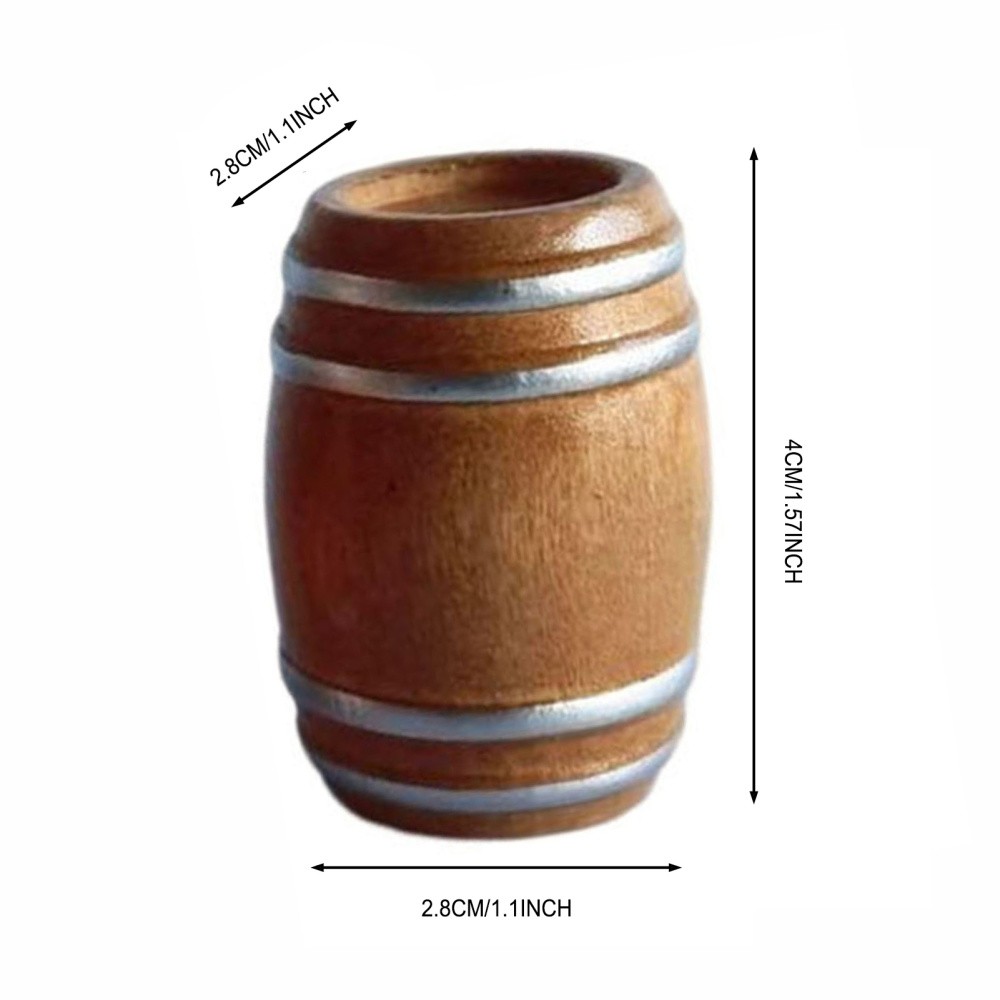 Features: 1.Miniature Wooden Keg Beer Keg: This adorable miniature wooden keg beer keg is a must-have for any dollhous-e bar setup. Its tiny size adds a realistic touch to your miniature scene and enhances the overall ambiance. 2.Tiny Miniature Doll House Bar Accessories: Complete your dollhous-e bar with these tiny and intricate miniature doll house bar accessories. From miniature beer mugs to tiny cocktail shakers, these accessories add a touch of elegance and sophistication to your miniature scene. 3.Cute and Elegant Design Relaxing DIY Kit: This DIY kit features a cute and elegant design that allows you to create your own relaxing miniature scene. It offers a fun and creative activity for both children and adults, making it perfect for family projects. 4.Easy to Take Up Exquisite Mini House: This miniature house is designed to be easy to assemble and take up minimal space. Its exquisite design and craftsmanship make it a beautiful addition to any home decor shelf collection. 5.Creative Desktop Gadgets Model: This miniature beer keg model doubles as a creative desktop gadget. It adds a touch of charm and uniqueness to your workspace, making it a great conversation starter. It also serves as a reminder to take a break and enjoy the little things in life. Specification: Material : Wood Size: 2.8*2.8*4cm Notice: 1.Actual color may be slightly different from the image due to light effect. 2.Please allow 1-3cm deviation due to manual measurement. Package includes: 1 * Miniature Wooden Keg Beer Keg