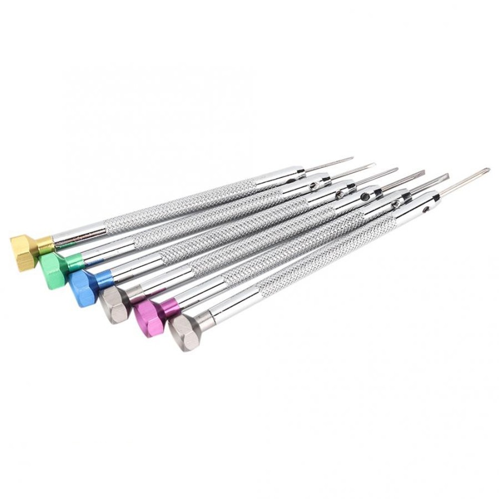 Product Description Specifications: Material: Steel Color: As pictures 6 sized screwdrivers 6 sized Blades Flathead screwdriver blade diameter: -0.8 -1.0 -1.2 -1.4 -1.6 Phillips screwdriver: +1.4 DataCaciques Package includes: 6Pcs x Screwdriver 6Pcs x Blades Shipping Returns Contact Us Payment 1. Items sent from US warehouse. 2. Receiving time = Processing time + Shipping time. 3. Processing Time: Around 1-2 business Days. 4. Shipping Time: 3-5 business day. It may have a little delay during some holiday (such as Christmas), any problem, please feel free to contact. Always believe we can figure things out with communication, if it comes to return, the pacakge must be intact and the same as you receive. If you have any questions, please feel free to email our service specialists 24 Hours a Day, 7 Days a Week. We will reply you ASAP. Return/refund is accepted within 30 days after the buyer receives the item. NO exchange will be accepted after 30 days from the date when the item is received. Please contact us first before returning your product!!! If you have any questions, our Customer Service staffs welcome you to email us. We strive to answer all questions and resolve any problems as quickly as possible. We care about our valued customers, and will always try to help you. So if you have any problems, You can contact us 7*24, we will reply at the first time. We accept all verified payments from ebay. Orders will be shipped after receiving cleared payment. Shipping 1. Items sent from US warehouse. 2. Receiving time = Processing time + Shipping time. 3. Processing Time: Around 1-2 business Days. 4. Shipping Time: 3-5 business day. It may have a little delay during some holiday (such as Christmas), any problem, please feel free to contact. Returns Always believe we can figure things out with communication, if it comes to return, the pacakge must be intact and the same as you receive. If you have any questions, please feel free to email our service specialists 24 Hours a Day, 7 Days a Week. We will reply you ASAP. Return/refund is accepted within 30 days after the buyer receives the item. NO exchange will be accepted after 30 days from the date when the item is received. Please contact us first before returning your product!!! Contact Us If you have any questions, our Customer Service staffs welcome you to email us. We strive to answer all questions and resolve any problems as quickly as possible. We care about our valued customers, and will always try to help you. So if you have any problems, You can contact us 7*24, we will reply at the first time. Payment We accept all verified payments from ebay. Orders will be shipped after receiving cleared payment. You may also like Brushed 60A ESC Waterproof Speed Control 2S-3S LiPo for 1/10 RC Cars Boat 18.89 USD 28-36.5mm 1.5mm Thick Flat Sapphire Watch Glass Crystal Replacement Repair Parts 8.59 USD 19.99 USD 10Pack Clear Battery Storage Case Protective Box Organizer for GoPro Hero 10 9 b 9.78 USD 19.99 USD High Quality Ebony Gold Plated Classical Guitar Chords Tuners 3R 3L Machine Head 23.89 USD 100PCS stem extenders/extensions for repairing Extending watch crown stems 12.78 USD 105Pcs Servo Plug Male Female JST JR Connector Crimp Pin Wire for RC Car Boat 13.89 USD powered by