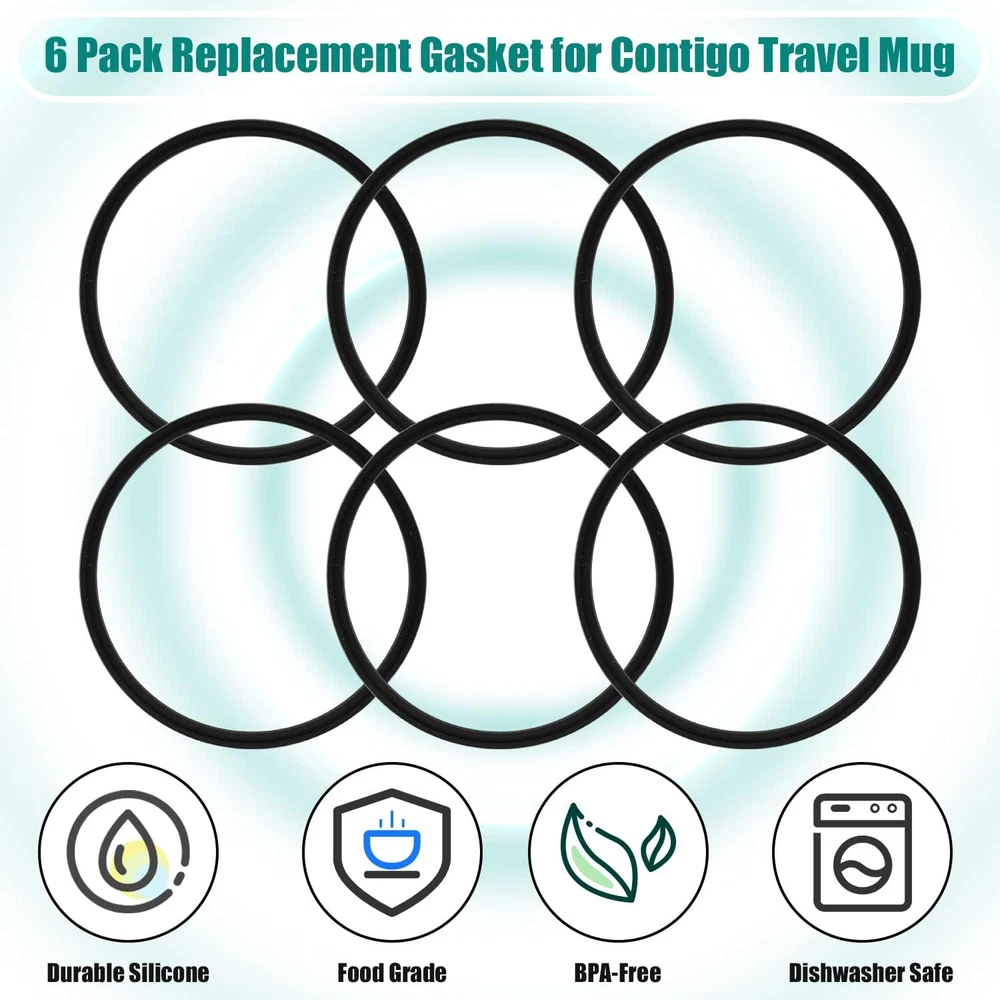 Package Content: You will receive 6 pieces of rubber lid gaskets compatible with 16 oz & 20 oz Contigo Snapseal Byron coffee mugs and travel tumblers. Please note that our products are not suitable for other brands of mugs and tumblers. Enough Quantity: The 6 pieces of seal lid gaskets can satisfy your daily use and sharing with your family or friends. Please note that the package does not include any replacing replacement for Contigo. Replacing Regularly: It is recommended that the rubber lid gaskets of the travel mugs should be replaced every three months to make sure your mug is effectively leak-proof. Our seals lid gaskets can also prevent your mugs from stains caused by water leaking. Reliable Material: Our seal lid gasket replacements are made of quality and safe silicone, BPA free and odorless, wear-resistant and suitable for daily use. Also easy to clean by both hands and washing machines. Warm Tips: These rubber lid gaskets are produced by KINBOM, but not original lid seals for Contigo Snapseal. The reference to "Contigo" "Snapseal" is only used for showing product's compatibility, but is not sponsored or endorsed by, or affiliated with the brands it fits, including Contigo and Snapseal. Product Description 6pcs Replacement Rubber Lid Seals Compatible with 16 & 20 oz Travel Mug Ring, Leak-Proof Rubber Seals Lid Gaskets Replacement for Contigo Mugs Package Content You will receive 6 pieces of rubber lid gaskets compatible with 16 oz & 20 oz Contigo Snapseal Byron coffee mugs and travel tumblers. Please note that our products are not suitable for other brands of mugs and tumblers. Reliable Material Our seal lid gasket replacements are made of quality and safe silicone, BPA free and odorless, wear-resistant and suitable for daily use. Also easy to clean by both hands and washing machines. Replacing Regularly It is recommended that the rubber lid gaskets of the travel mugs should be replaced every three months to make sure your mug is effectively leak-proof. Our seals lid gaskets can also prevent your mugs from stains caused by water leaking. Easy to clean The products are easy to clean by both hands and washing machines.