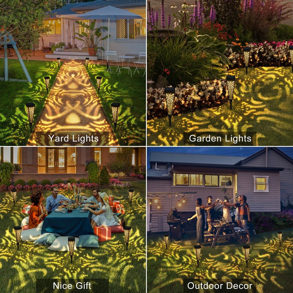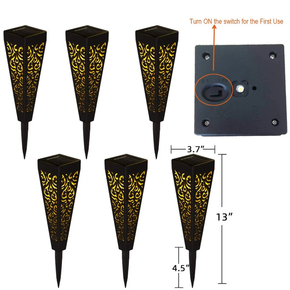 8 Lumens: the solar powered garden lights charge during the day ( under direct sunlight) and turn on automatically at night for up to 8 hours when full charged.The lights provide a great touch and a warm ambience in the evening. Weather-resitant: The outdoor solar yard lights made with quality material ensure long lasting performance under most weather conditions. No worries about rain, snow. (Winter tips: keep debris and snow off the solar panel to allow the battery to recharge). Size: Diameter 7cm* Height 33.5cm. The soalr walkway lights display a fantastic flame pattern and add great accent to backyard/ frontyard. Satisfaction : If you have any issue on the solar path lights, please seller () directly to get replacment or (360- day ) Features: Easy to assemble and install into the ground, no wiring need, rechargle battery included, save energy. The LED solar landscape lights is a nice garden gift for your friends.
