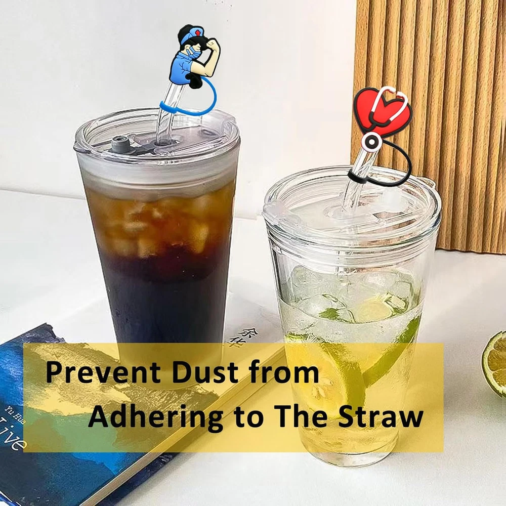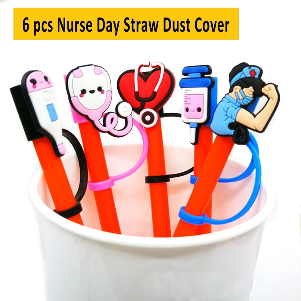 【Reliable Material】---Our silicone straw covers cap are made of food grade silicone, durable, reusable, BPA free, non-toxic and odorless. Made of high quality silicone, which is safe and durable for a long time use. 【Suitable Size】---Our straw tips covers are very suitable for all types of straws from 7 to 8 mm. Compact and appropriate for you to use, bringing you a nice and satisfying experience. 【Practical Gifts】---These straw tips covers are great for decorating your straw cup. You can give it to your loved ones and friends, they will love it when they receive the gift. 【Easy to Operate】---These straw toppers can be fixed on straws directly, and can be directly removed when using the straw, the plug will hang on the straws, not easy to fall off, and practical for protecting your straws away from dust. 【 Cute and Fun】--- Our silicone straw tip lids are decorated with nurse themed patterns, decorated with various nurse party styles, such as heart shaped stethoscope, needles, hearts, and so on, stylish and clever. 6 pcs Silicone Straw Plug Drinking Dust Cap Cute Splash Proof Straw Tips Reusable Cartoon Plugs Cover Cup Accessories Features: These straw plugs are suitable for nurse theme parties, nurse party decorations, Nurse Day gifts, etc. These cute straw caps are dust and splash resistant, making them ideal for outdoor activities. Size: 7-8mm Color: assorted color Material: silicone Package Include: 6pcs Reusable Silicone Straw Cover Please Note!!! We only have silicone straw plugs in our package, not including straws!