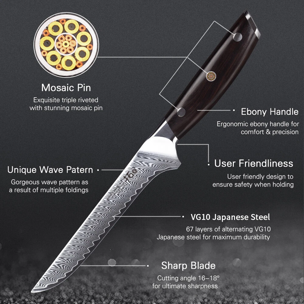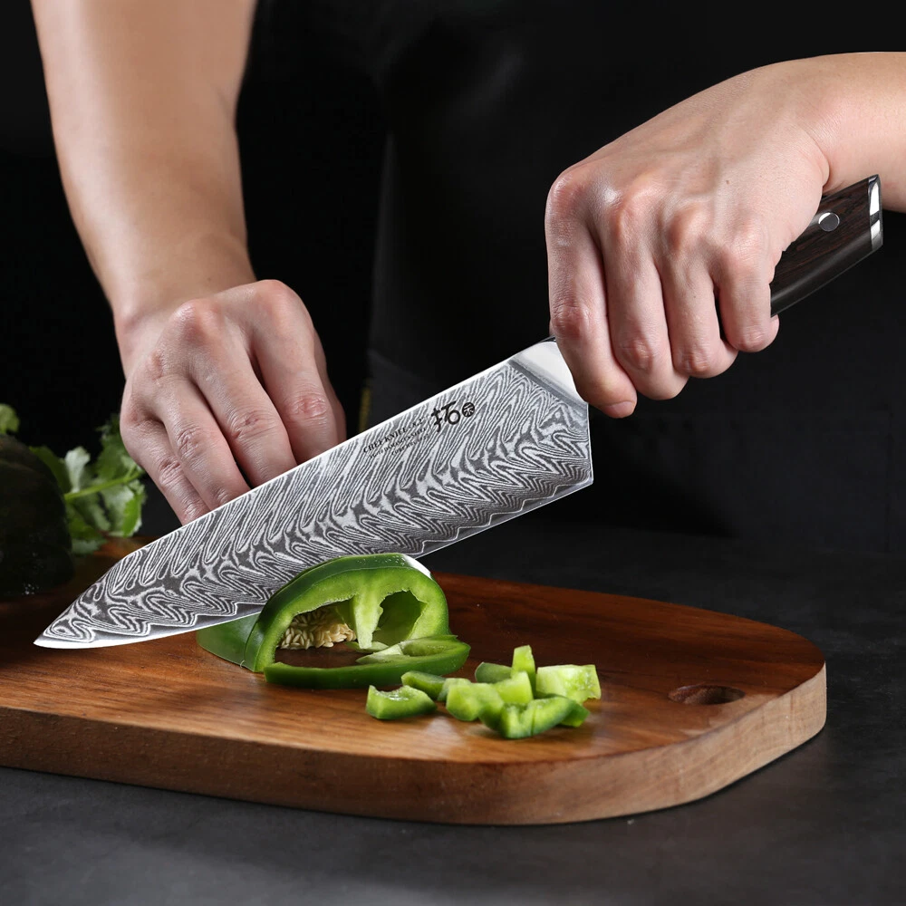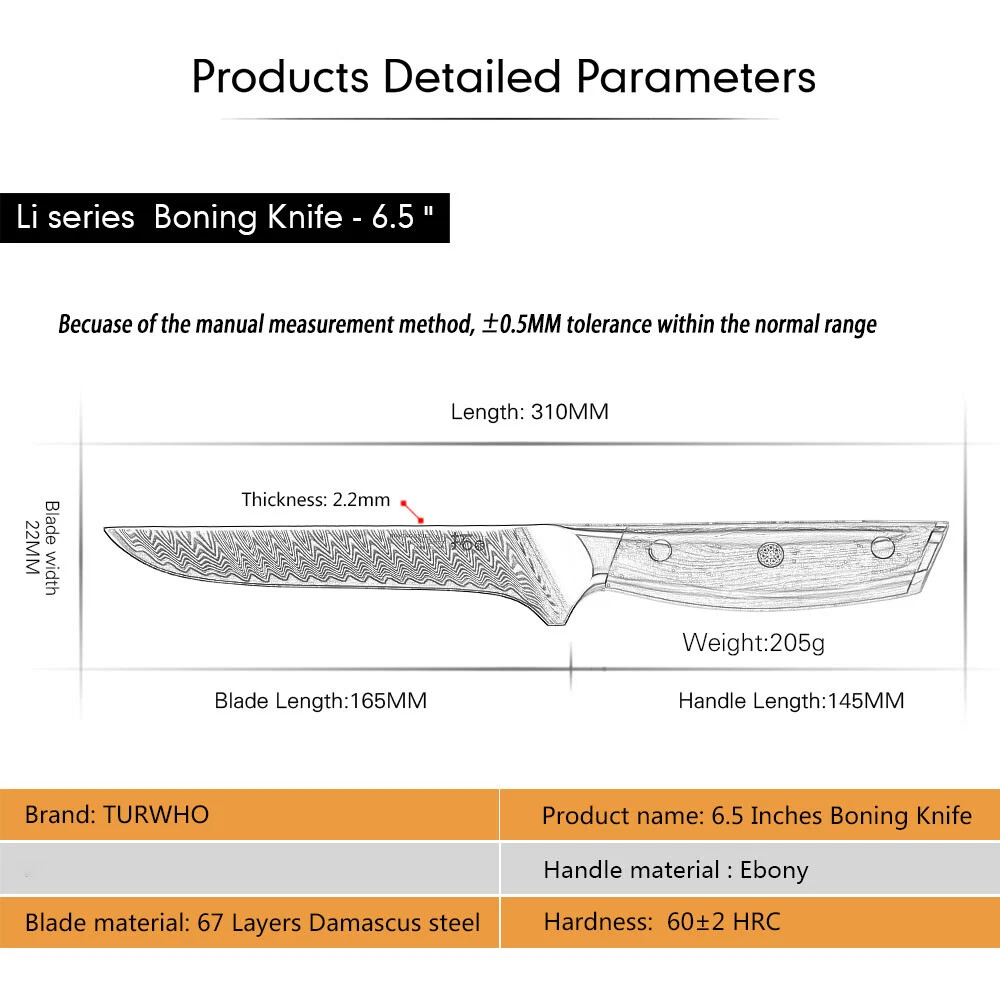 Feature: DAMASCUS KNIVES 6Pcs TURWHO Chef Knife VG10 Damascus Steel Kitchen Cleaver Slicing Boning Knife With Ebony Handle Feature: TURWHO Series kitchen knives are made of high quality Japanese 67-layer Damascus steel and treated with 60HRC vacuum heat treatment and liquid nitrogen cooling. The Rockwell hardness of the cutting core is 60+. The cutting edge is 16-18 degrees, which means the blade is super sharp. Compared with similar products at this price, it has outstanding performance advantages. Exquisite appearance: beautiful and impressive pattern. Every time you pick it up, you can't help but taking cooking seriously. AND remember? Serious men are always handsome. Then don’t forget to wipe your chef knife after using, to make a perfect finish to your cooking. Design Characteristics: these knives made of high quality Japanese 67-layer Damascus steel, The optimal size and weight own a best balance.Ergonomic ebony wood handle. The shade of handle is designed based on the human engineering. This can lessen your tiredness, numbness, and soreness even if you grasp it for a long time. Specification: Brand: TURWHO Blade Material: Japanese VG10 67-layer Damascus Steel Handle Material: Ebony Handle Cutting edge: 16-18 degrees Food Compatibility: vegetables, fruits, bread, meats, fish, salad, cheese, cake Manufacturer Warranty: Lifetime Weight: 2.95KG (including box) TURWHO Trust: We promise a superior product that will give you a lifetime of exemplary service, try it risk free, we know you'll love it. Package included: 1x TURWHO 8.2inch Chef Knife 1x TURWHO 8inch Bread Knife 1x TURWHO 8inch Slicing Knife 1x TURWHO 7inch Cleaver 1x TURWHO 7inch Santoku Knife 1x TURWHO 6.5inch Boning Knife 1x Premium Gift Box 1x Operation Instructions Item Specifics Features Easy Clean, Well Balance, Very Sharp, Gift Box Manufacturer Warranty Lifetime Material Japanese VG10 Damascus Steel Making Method Hot Air MPN EB1116-6P Bundle Description 6x Knives in Gift Box Number of Items in Set 6 Blade Length 6.5in, 7in, 7in, 8in, 8in, 8.2in Blade Edge Straight Handle Material Ebony Cutting edge 16-18 degrees Brand TURWHO Color Black Set Includes Knife Set Room Kitchen Food Compatibility Universal Type Knife Set Payment All purchases will go through eBay secured checkout to ensure that your order is processed without any delays. After you have made your purchase you can either click on 'Pay now' or follow the instructions in an automated email that you will receive shortly after your purchase. During the checkout, you can make an immediate payment by PayPal account, MasterCard, Visa or select an alternative method of payment, and receive the necessary payment details. Please note: If you have already marked payment as sent But actually not paid, then you MUST mark as payment not sent otherwise the PAY NOW button will not be available. Shipping 1.all orders will be Dispatched within 2 working days after payment. 2.orders are not processed on weekends or public holidays. 3.usually takes 3-6 business days to most US destinations. 4.Your patience would be much appreciated. 5.all items will be checked carefully and packaging well before send out. 6.All orders are including the tracking number. Any questions, please feel free to contact us. Returns Refund or replacement request is available only the requests within 60 days after parcel received & return the item as the same condition as received. Please contact us to request a return authorization. Your name, auction number, and reason for return should be included in the email. All items returned must contain all original packaging materials. Please repack the item carefully. Item returned will be tested and a new replacement will be shipped to the buyer immediately when found defective. In the event that a suitable replacement is not available then a refund will be issued. If the item is found non-defective and buyer just don't like it, we will still make you a full refund, but the return shipping fee at buyer's expense. All item return must have a RMA number, Please contact us to request a return detail address and the RMA number, this can help us identify return items accurate. Buyer is responsible for additional shipping costs for items that are returned refused or undeliverable. We do not accept any returns without an authorization number on the box or label it is being returned in. Contact Us We care about our valued buyers, if you have any questions, our Customer Service will be very glad to help you. For more information, please contact us through ebay message system. All questions would be answered within 48 hours. DAMASCUS KNIVES DESCRIPTION PAYMENT SHIPPING RETURN POLICY CONTACT US Shop Category Store Home Damascus Steel Kitchen Knife Hot Item 16x TURWHO Kitchen Knife Shears German Stainless Steel Meat Chef Knife Block Set USD 168.00 TURWHO 8in Chef Knife Japanese VG10 Damascus Steel Gyuto Knife Stabilized Wood USD 64.99 TURWHO 7inch Nakiri Knife Kitchen 67-Layer Japanese VG10 Damascus Steel Knives USD 68.80 TURWHO Chef Knife + Nakiri Knife 9Cr18Mov Hi-Carbon Steel Handmade Kitchen Knife USD 74.99 TURWHO 24cm Sashimi Knife Yanagiba Fish Sushi Salmon Slicing Kitchen Chef Knife USD 49.99 New List Item 7x TURWHO Chef Knife Set German Steel Kitchen Santoku Kiritsuke Knife Block Set USD 168.00 TURWHO 8in Chef Knife +10.5in Slicing Knife Japanese VG10 Damascus Steel Knife USD 134.00 TURWHO 7in Nakiri Knife Japanese VG10 Damascus Steel Chef Knife W/ Rose Pattern USD 68.80 7x TURWHO Kitchen Knife Block Set Japan VG10 Damascus Steel Chef Knife Scissors USD 299.00 4Pcs TURWHO 5inch Steak Knife Dinner Cutlery Beef Meat Knife + Kitchen Scissors USD 59.99 Delivery Help & Info Payment Policy Shipping Policy Return Policy FAQ About Us 6Pcs TURWHO Chef Knife VG10 Damascus Steel Kitchen Cleaver Slicing Boning Knife With Ebony Handle Feature: TURWHO Series kitchen knives are made of high quality Japanese 67-layer Damascus steel and treated with 60HRC vacuum heat treatment and 