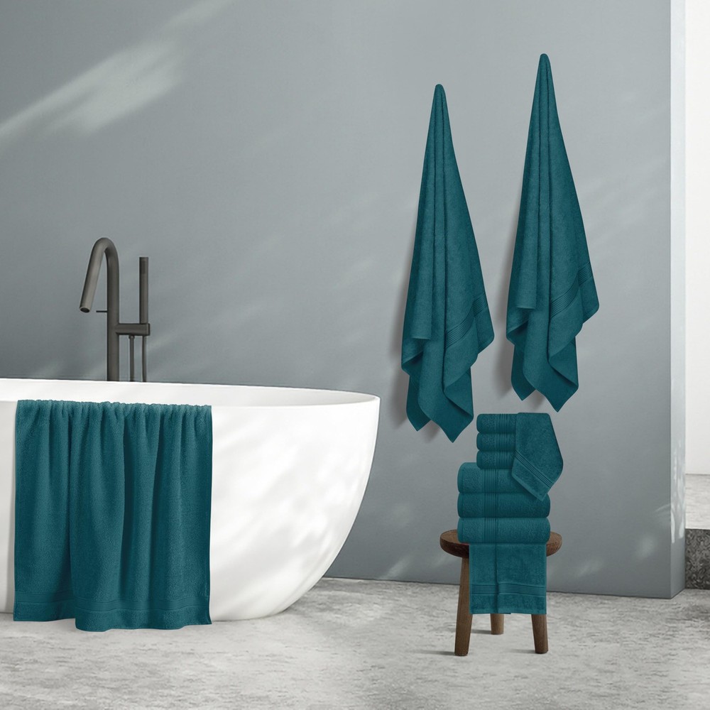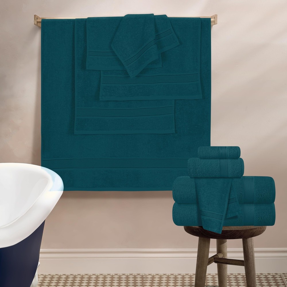 cotton towel set is a beautiful and carefully crafted product with lot of attention to details. Everyday Basic towel set, quality product, low cost, soft feel and highly absorbant. Eco friendly and Pocket Friendly Towels. Save your money by consuming less water in washing, less energy in drying, less detergent for laundry. Its compact and light weight allows it to dry quickly and takes very little space for storage. Sustainable product without compromising on the comfort and style. Made in a state of the art vertically integrated facility. Each set contains 6 oversized bath towels 28x55 inches, 6 hand towels 16x24 inches & 12 wash cloths 12x12 inches 100% Pure cotton for softness, absorbency & durability. Complimented set for daily use, travel, camping quick drying & multipurpose usage - Outdoor Lightweight Quick Dry Towel Set Eco- Friendly and Pocket Friendly. Save your money by consuming less water in washing, less energy in drying, less detergent for laundry. 100% Natural materials & free from harmful chemicals / materials - safe for you & your family Machine washable & dryable, wash in cold water, tumble dry low - wash separately before first use