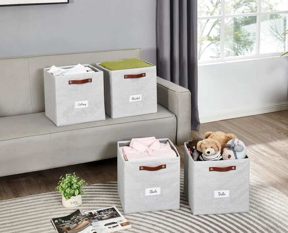 6-Piece 13 Inch Grey Fabric Storage Cubes with Labels