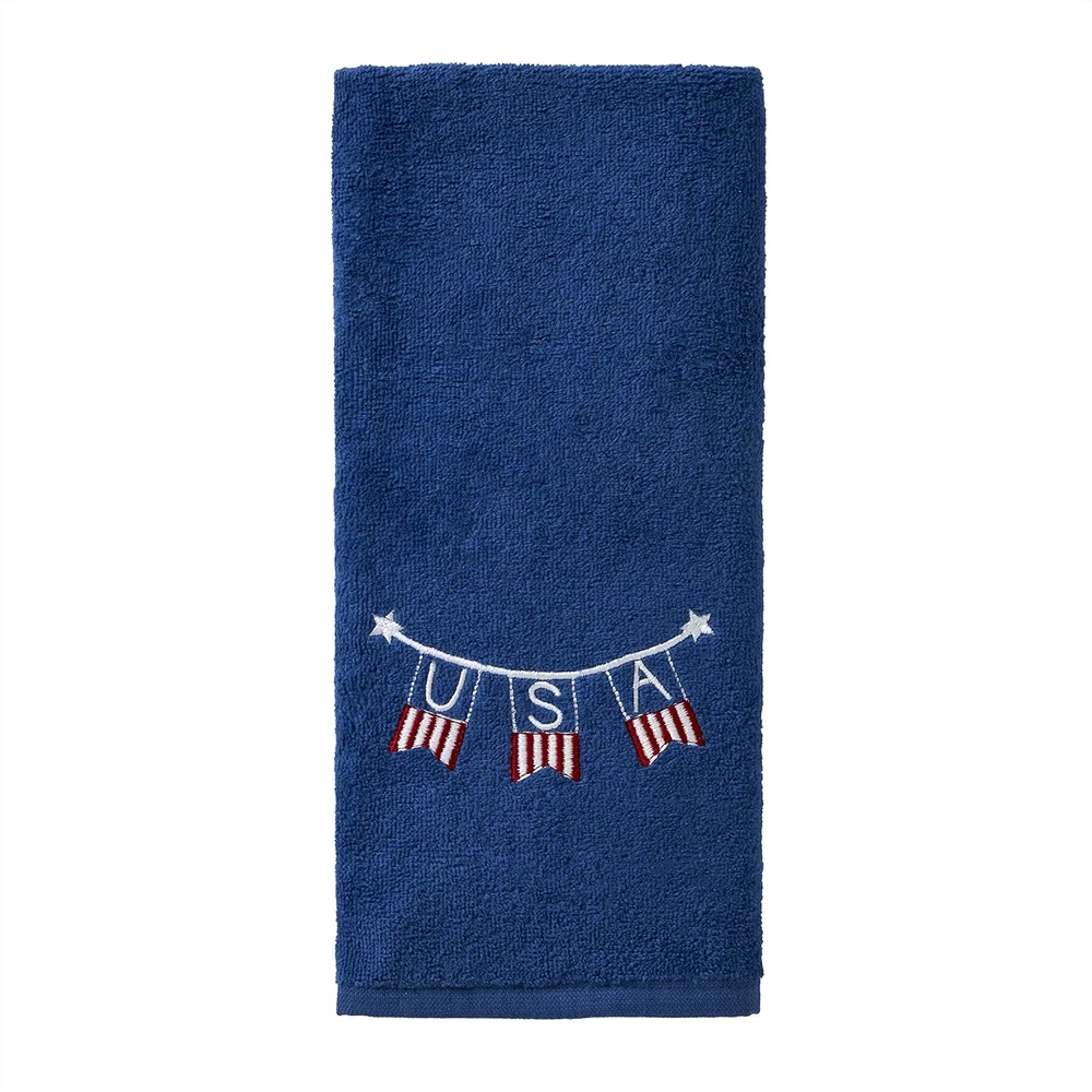 Patriotic Navy 4th of July America Script Hand Towel Set