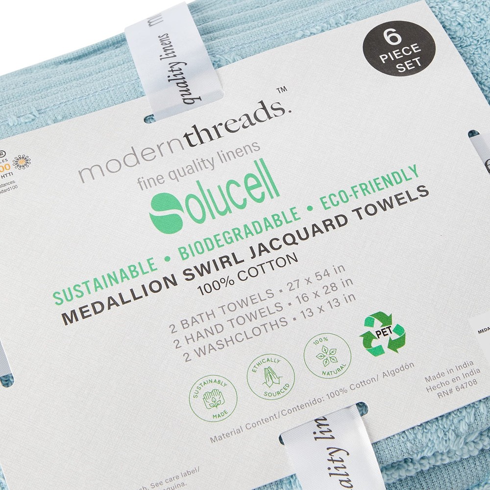 SET INCLUDES: (2) Bath towels, (2) Hand towels, (2) Washcloths. 3 Towels are Jacquard, 3 Towels are Solid. DIMENSIONS: Bath towel- 27"x54", Hand towel- 16"x28", Washcloth- 13"x13" BETTER WATER ABSORPTION: Made of low-twist 100% Combed cotton loops for an exceptionally soft feel that absorbs water. Oeko-Tex certified, the definitive mark of excellence for products that are healthy for you and healthy for the environment. FEATURES: It is perfect for use in bathroom, kitchen, gym, spa, office, and for face wash, general cleaning as it gives you a very soft, comfortable, and lightweight feel, making it both luxurious and functional for you and your loved ones CARE INSTRUCTIONS: Machine washable and dryer safe. Recommended - Machine wash gentle cycle with cold water. Sun dry or low tumble dry. For best use, wash separately on first use. You may see some lint on the first wash due to the towels cotaining 100% cotton but should diminish after each washing.