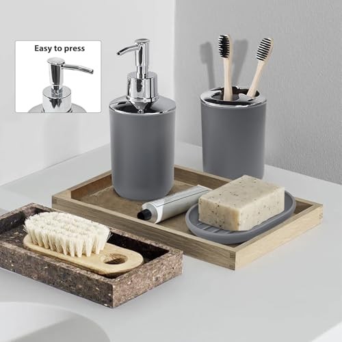 Return Policy Fast Delivery Trusted seller Bathroom Accessories Set 6 Piece Bath Ensemble Includes Soap Dispenser, Toothbrush Holder, Toothbrush Cup, Soap Dish for Decorative Countertop and Housewarming Gift (Light grey-6pcs) Product Description Plastic DURABLE and AMAZING QUALITY: this 6-Piece Bathroom Accessory Set is made of durable plastic that can outlast competing products. It’s also ideal for kids' bath for its durability and not easy to break like ceramic set , not easy to mildew like bamboo set. Our high quality plastic bath accessories will resist to constant use, keeping their look just as elegant and new over time FULLY FUNCTIONAL COMPLETED SET - A completed bathroom accessory set which equips everything you will need to organize your toiletries. Toothbrush holder features 3 - holed openings, 2 small ones allow you to keep your toothbrushes and 1 larger hole to place slim toothpaste, making brushing teeth in one grab PREMIUM QUALITY LIQUID SOAP DISPENSER PUMP – We know how frustrating it can be to use a flimsy pump that leaks or just does not work. No matter how your bathroom set looks like, a bad pump can ruin the experience. That’s why we included a hard plastic pump for the liquid soap dispenser in this set ELEGANT DESIGN: take your bathroom decor to stylish new heights with this bathroom accessories set, very stunning and a great touch of extra elegance to the bathrooms, perfect for giving as a gift for housewarming or a wedding Product description Elegant Design , Set Includes :1 Soap Dispenser, 1 Toothbrush Holder, 1 Toothbrush Cup, 1 Soap Dish, 1 Toilet Brush Holder,1 Trash Can Shipping Returns Payment Shipping Shipping is FREE to all addresses other than APO/PO boxes in the lower 48 states. All our stock ships from US-based warehouses. Shipped via USPS or UPS (depending on location and package weight) Unless stated otherwise, all orders will ship within 24-72 hours of your payment being processed. Check our feedback to see the great reviews of FAST shipping we offer. Returns Seller does not accept returns Payment We currently accept payment via eBay managed payments only. Once payment is cleared, we will dispatch your shipment within 1-3 business days. Please refer to the "Shipping" tab for more information regarding shipping speed to your destination.