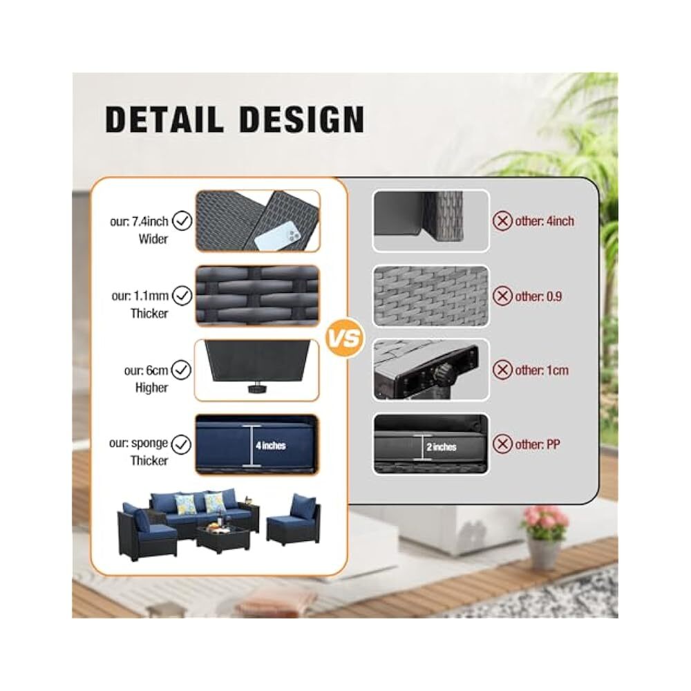 $ 194.45All-Weather Wicker 5-Piece Patio Sectional Sofa Set with Navy Cushions