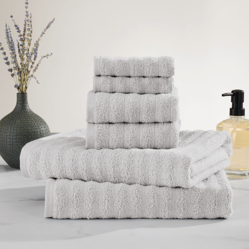 You may also like Luxuriously Soft Oversized Sea Life Beach Towel Quick Dry Eco-Friendly Absorbent 13.87 USD 14.6 USD Free shipping 5% off Soft Popcorn Texture Bath Towel Super Absorbent USA Cotton Fade Resistant 13.19 USD 13.88 USD Free shipping 5% off The Performance Textured 6-piece bath towel set is 87% Cotton and 13% Recycled Polyester. This extra-absorbent bath towel set includes 2 bath towels (30” x 54”), 2 hand towels (16” x 26”), and 2 wash cloths (12” x 12”). The towels are durable enough for daily use and the fade-resistant fibers will help to maintain their vibrant color through dozens of wash cycles. These quick-dry towels are low lint and machine washable for easy care. Note: These bath towels are not Benzoyl Peroxide treated. Benzoyl peroxide is one of the most common ingredients in acne cleansers, gels, and creams and it bleaches towels, leaving blotches that may appear like bleach stains. Size: 2 Bath Towels (30” x 54”), 2 Hand Towels (16" x 26"), and 2 Washcloths (12" x 12") Material: 90% Cotton and 10% Recycled Polyester (Bath Towels); 100% Cotton (Hand Towels and Washcloths) Hand-feel: Lightweight:, untwisted yarn for a plush feel Colors: All colors are made with fade resistant dyes Durability: Hemmed edges with sturdy stitching for durability Buying Guide: OEKO-TEX Made in Green resulting in high environmental standards Drying attributes: Quick drying and highly absorbent Care: Easy care allows for machine wash and tumble dry You may also like Luxuriously Soft Oversized Sea Life Beach Towel Quick Dry Eco-Friendly Absorbent 13.87 USD 14.6 USD Free shipping 5% off Soft Popcorn Texture Bath Towel Super Absorbent USA Cotton Fade Resistant 13.19 USD 13.88 USD Free shipping 5% off