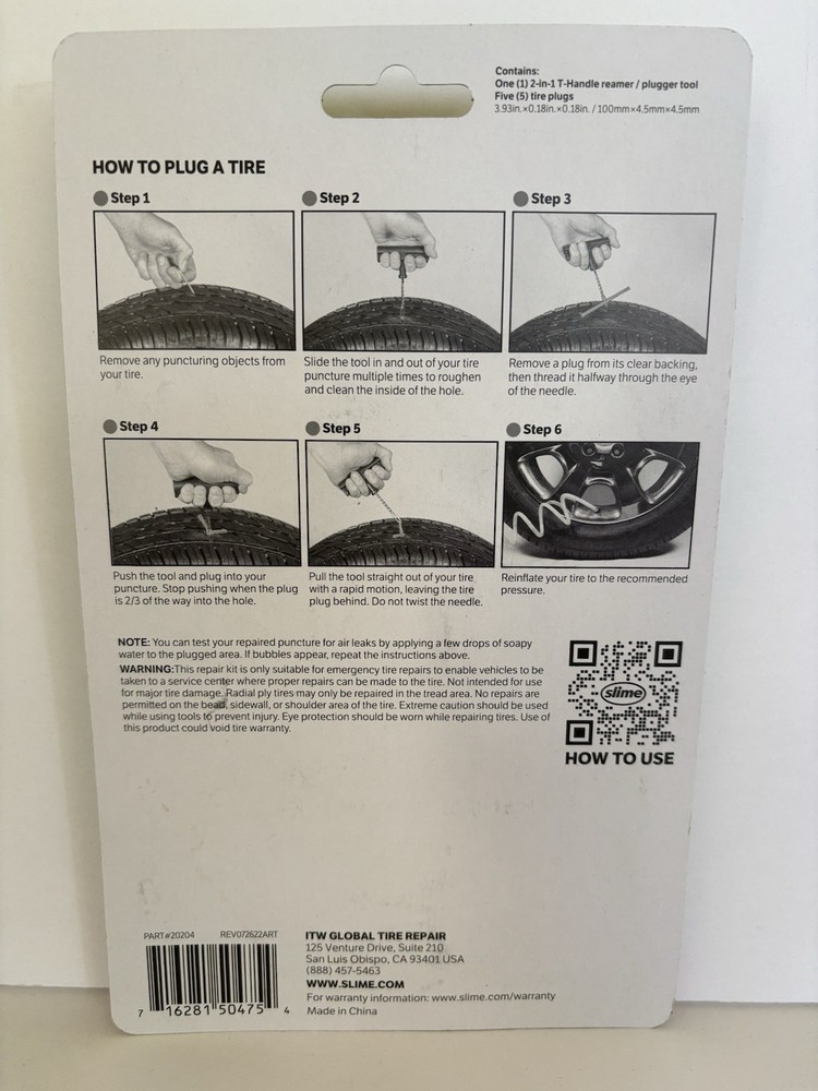 gtin13:716281504754UPC:716281504754Brand:SlimeType:Plug Repair KitManufacturer Part Number:20204Country/Region of Manufacture:ChinaWarranty:No Warranty