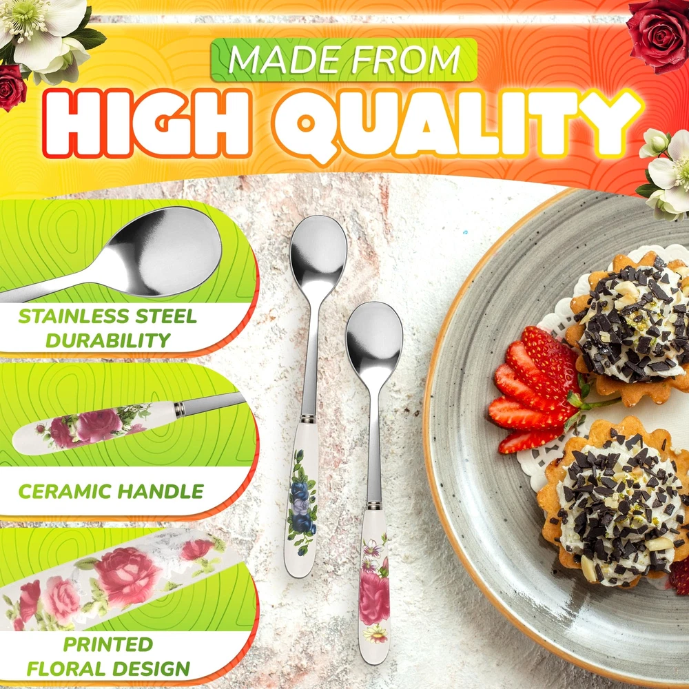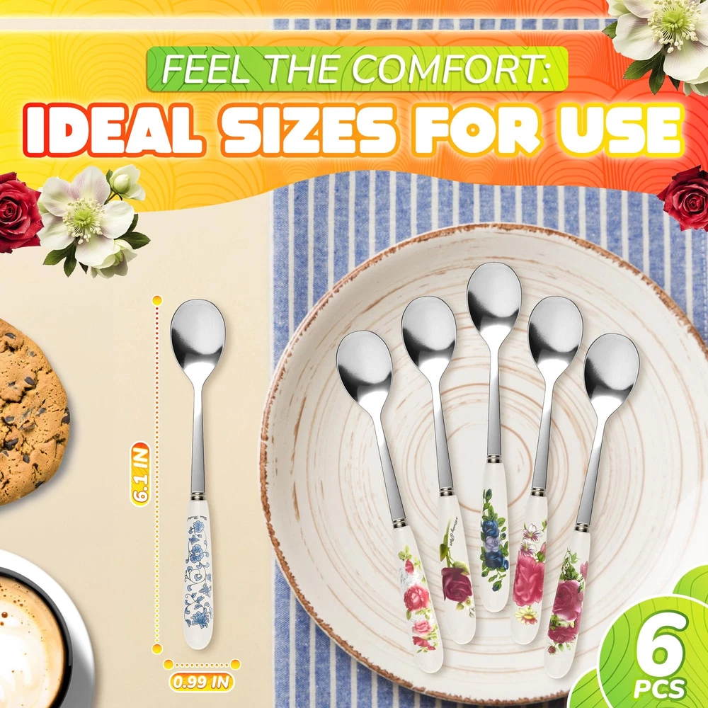 6 Pcs Coffee Spoons Stainless Steel - Tea Spoons for Tea Party Set Small Spoons 🌸Exceptional Durability: Crafted from top-grade stainless steel and ceramic, this small teaspoons set of 6 resists corrosion and wear, ensuring long-lasting durability and style for any occasion 🌸Timeless Design and Elegance: Our cute coffee spoons set features elegant floral artwork on ceramic handles with a mirror-like polished finish, adding a sophisticated touch to any setting 🌸Easy to Clean: These tiny spoons for dessert are dishwasher-safe for effortless cleaning. The ceramic handles wipe clean easily. For best results, hand wash the handles to preserve their designs 🌸Versatile Use of Small Tea Spoons: Perfect for tea, coffee, desserts like puddings, ice creams, etc. Their elegant design and ideal size make them a versatile addition to any cutlery collection 🌸Perfect Gift Our Cute Spoon: Ideal for housewarmings, Thanksgiving, or any occasion. These decorative spoons have a timeless design, making them a thoughtful and cherished gift for years to come Shipping We offer FREE shipping on all orders! We ship within Three business days of payment, usually sooner. We use a selection of shipping services such as UPS, FedEx, USPS etc. We only ship to the lower 48 states, no APO/FPO addresses or PO Boxes allowed. Local pickups and combined shipping options are not provided at this time. Return You can return a product for up to 30 days from the date you purchased it. Any product you return must be in the same condition you received it and in the original packaging. Please keep the receipt. Payment We accept payment by any of the following methods: PayPal Please pay as soon as possible after winning an auction, as that will allow us to post your item to you sooner! Feedback Customer satisfaction is very important to us. If you have any problem with your order, please contact us and we will do our best to make you satisfied. Contact Us If you have any queries, please contact us via ebay. We usually respond within 24 hours on weekdays. Please visit our eBay store to check out other items for sale! Thank you for shopping at our store.