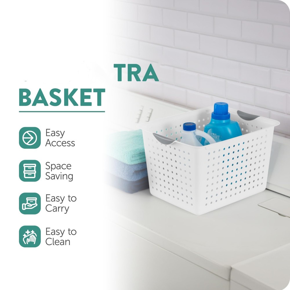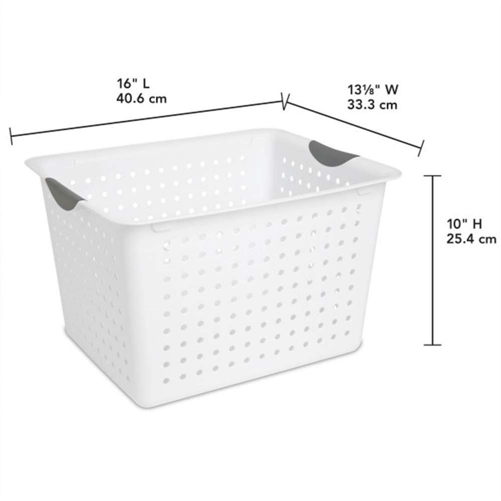 Features: ⨀ N/A-Plastic ⨀ Dimensions & Size: These baskets have outside dimensions of 16" x 13.13" x 10", providing an ultra-deep storage option for your needs. ⨀ Comfortable Transport: The contoured handles on Sterilite products ensure a comfortable grip for easy and convenient transportation. ⨀ Effortless Maintenance: The smooth finish of the products makes them easy to clean, saving you time and effort in maintaining their pristine appearance. ⨀ Declutter with Ease: The products feature a modern design and help control clutter on countertops, in cabinets, or on shelving throughout your home, keeping your space organized and tidy. Specifications: Color - White Material - Plastic Product Dimensions - 16"L x 13.13"W x 10"H Item Weight - 1.7 Pounds Package List: 6-Pack