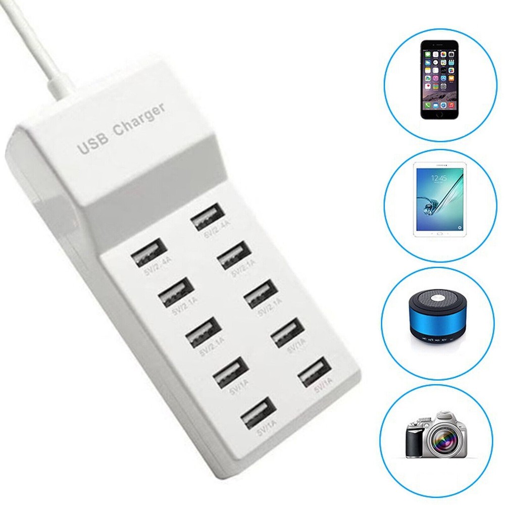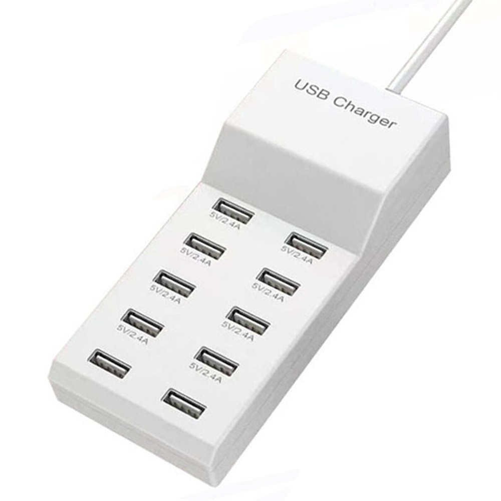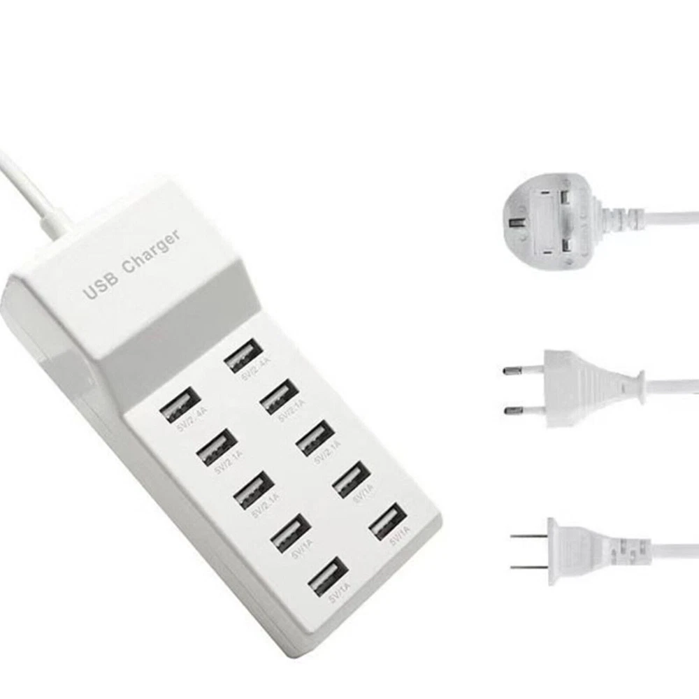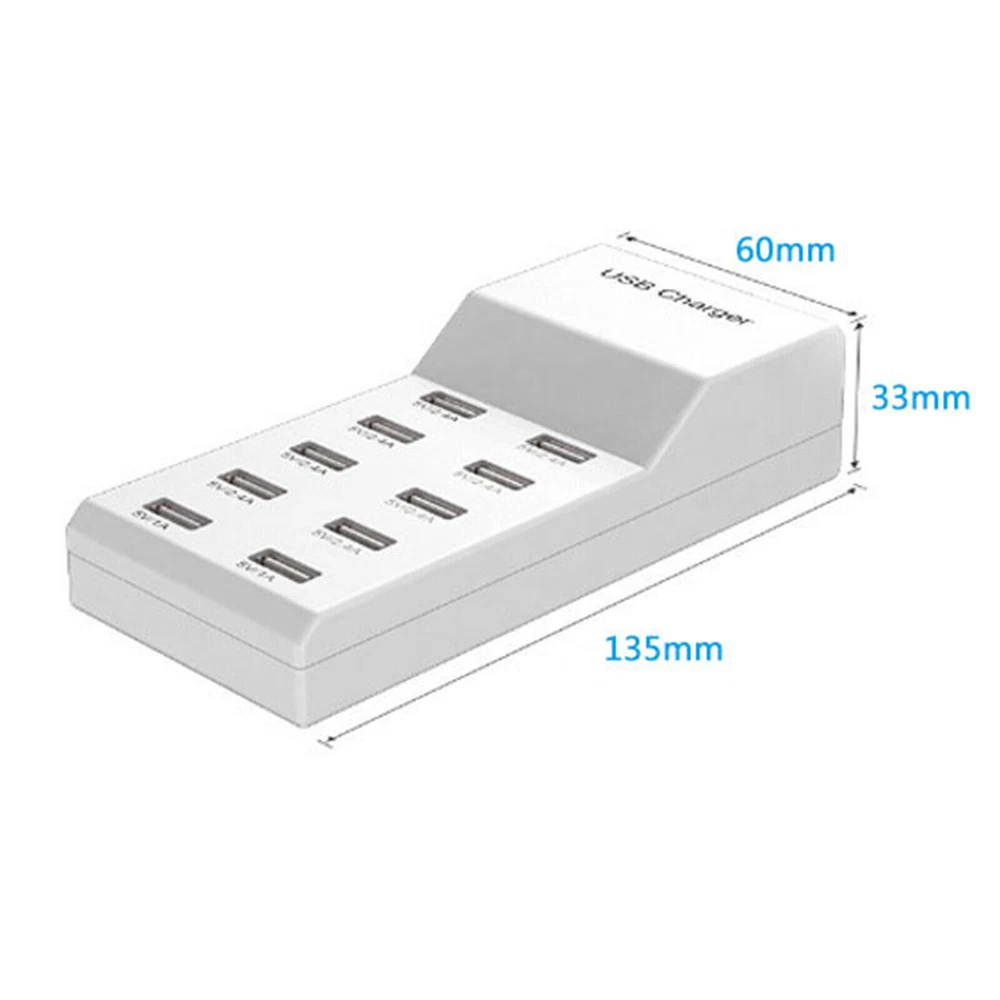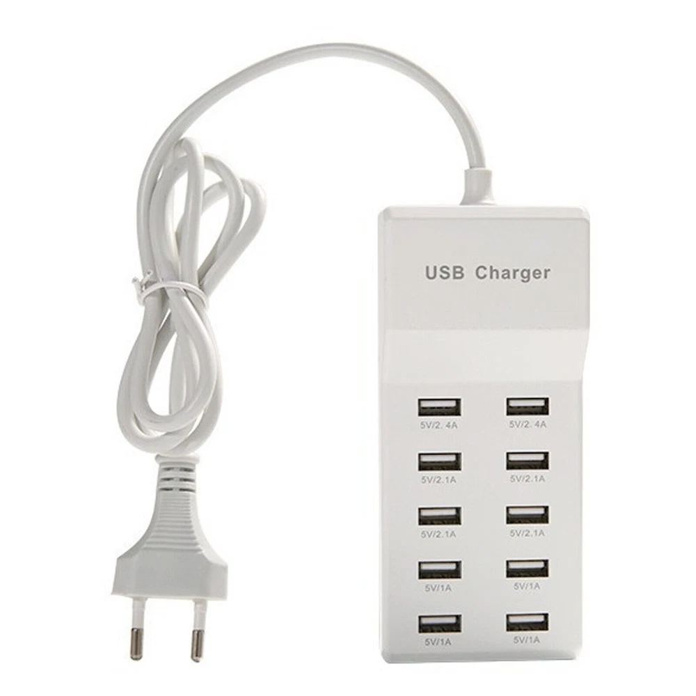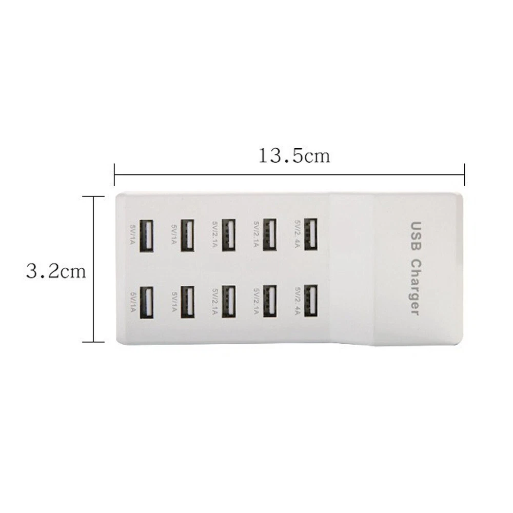 Main Parameters 1. Dc input: 5V AC input: 110-240V 2. Output: 5V 1000mA / 2400mA 3. Power: 5V-50W 4. The white 5. Built-in safety tube 6. Integrated IC control circuit, including overload, over-voltage, over-current, short-circuit protection, over-temperature protection, etc 7. Double USB interface output 8. CE, FCC, certification 9. It is suitable for most mobile phones, tablets, MP3, PDA, Bluetooth headset, PSP, digital camera, navigator, quick charge tablet PC, etc 10. The shell is made of PC+ABS fire-resistant material, environmentally friendly material and surface highlighting treatment. 11. Exquisite design, easy to carry, travel rechargeable plug Product features 1, suitable for all kinds of mobile phones, MP3, MP4, camera, iPod, Iphone series...To produce products such as 2, including timely guard against overload and output short circuit protection measures, so that the product is safer, so that you feel at ease Ii. Product specifications 1. Input voltage: AC100-240V 50/60Hz 2. Output: DC 5V/10A (5-port USB, maximum support for single port 2.4a, it is recommended to use within 8A on A regular basis) 3. Line length: 1.2m 7. Material: fire-retardant ABS+PVC material 8. Color: white Usage 1. Before use, please check whether the charger corresponds to the device parameters. 2. Insert the power cord into AC100-240V. 3. Connect the USB A common pair plug (different plugs for each device) with the adapter to the charger output terminal, and then connect the corresponding plug Electrical equipment (such as mobile phone, MP3, camera, iPod series, etc.) for power supply or charging Package included: 1*10-Port Multi USB Charger