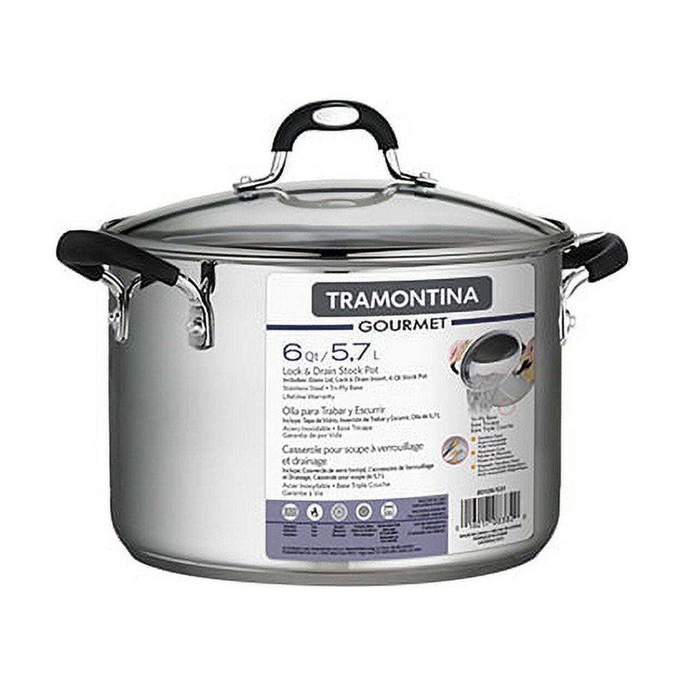 You may also like Nonstick Saucepan Pot W/ Swiss Granite Coating Induction Comptable PFOA Free 39.74 USD 41.83 USD Free shipping 5% off This 3-Piece, 6-Quart Tramontina Stockpot can be used with or without its locking strainer. The pot is made from stainless steel for a stylish look with durability and excellent heat conductivity. The tri-ply base layer produces consistent heating and is ideal for preparing pasta, vegetables, stock, sauces and more. The stainless-steel stockpot comes with a glass lid so you can easily check on your cooking progress. It also has ergonomically designed handles with a soft grip. These are riveted onto the pot for extra strength. The Lock-N-Drain covered stockpot features a stainless-steel strainer that can be locked onto the cooking pot to drain water from pasta or vegetables. It is attractive, versatile and functional, so you can enjoy using it with or without the unique strainer. This 3-Piece 6-Quart Tramontina Stockpot is ideal for the serious cook or homemaker. Superior heat conductivity and durability makes it ideal for preparing pasta, vegetables, stock, sauces and more Stainless-steel locking strainer assists with straining cooking water from pasta and vegetables Stainless-steel stockpot can be used with or without the locking strainer Tri-ply base construction ensures efficient, even heating Glass lid provides easy monitoring of cooking progress Ergonomic, soft-grip handles are riveted onto the stockpot for strength and durability Compatible with induction, electric, gas and ceramic cooktops Dishwasher Safe You may also like Wingback Sherpa Accent Armchair Lightweight Foam Cushion Cozy Living Room Chair 168.57 USD 177.44 USD Free shipping 5% off Outdoor Square Coffee Table Glass Top Patio Side Table Rustproof Steel Frame New 81.32 USD 85.6 USD Free shipping 5% off 3-Step Folding Stool Heavy-Duty Portable Ladder W/ Tool Bag Non-Slip Design New 87.17 USD 91.76 USD Free shipping 5% off Heavy Duty 48 Inch Wall Shelf Adjustable Storage Rack Indoor Home Office New 106.0 USD 111.58 USD Free shipping 5% off Wood Entryway Console Table W/ Drawers & Shelf Indoor Storage Home Decor New 171.52 USD 180.55 USD Free shipping 5% off 5 Drawer Fabric Storage Organizer Unit Furniture Bedroom Clutter Free Solution 59.61 USD 62.75 USD Free shipping 5% off Ultra Compact Toddler Stroller Lightweight Foldable W/ Cup Holder Storage Basket 141.34 USD 148.78 USD Free shipping 5% off 4 Drawer Dresser Soft Close Drawers Stylish Bedroom Storage Organizer Unit New 140.18 USD 147.56 USD Free shipping 5% off Adjustable 1 Light Pendant Lamp Modern Crystal Illumination Home Lighting New 72.83 USD 76.66 USD Free shipping 5% off 14-Cup Rice Cooker Stainless Steel One-Touch Keep Warm Dishwasher Safe New 48.71 USD 51.27 USD Free shipping 5% off Indoor Ceiling Fan W/ LED Lights & Barnwood Blades Aged Bronze Finish 52-Inch US 143.97 USD 151.55 USD Free shipping 5% off Mobile Filing Cabinet Lockable Drawer File Organizer Letter Legal Size New 76.79 USD 80.83 USD Free shipping 5% off
