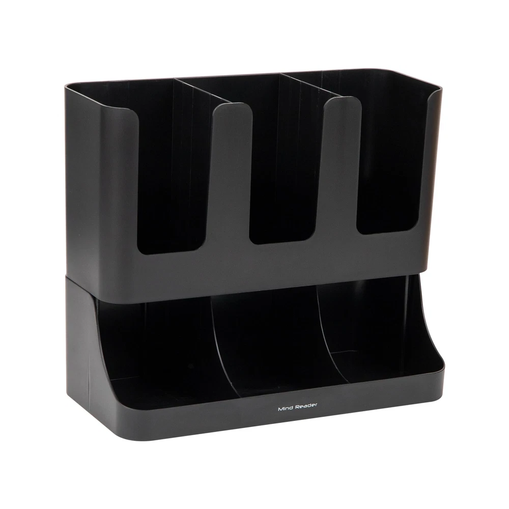 Multipurpose Coffee and Tea Condiment Organizer Keep your coffee and tea necessities neatly organized with this versatile condiment organizer. With six distinct compartments, it offers convenient storage for coffee and tea cups, lids, and a variety of related condiments such as sugar, sweeteners, and creamers. This organizer is perfect for decluttering your office breakroom, hotel coffee bar, or home kitchen countertop, eliminating the need to rummage through drawers or clear clutter from surfaces. But it's not limited to coffee and tea supplies. It also serves as an efficient beverage station in bed and breakfasts, hotels, and conference centers. It can accommodate condiment packets too, from lemon and honey to ketchup and mustard. Planning a party or backyard barbecue? This lightweight organizer offers portable convenience. Easily move it around to suit your event's needs. For space-saving efficiency, place the organizer on a table or countertop, or mount it on the wall. Whether it's for the office, hospitality industry, or an avid coffee and tea enthusiast, this condiment organizer makes an excellent gift. Versatile storage solution: This cup and condiment organizer is perfect for storing cups, lids, and coffee/tea accessories, but can also be used for organizing other condiments or office supplies Efficient condiment organization: The two-tiered design of the organizer allows you to easily see and access your condiments, saving you time and effort in the morning rush Stylish and space-saving: With its stylish design and compact size, this organizer requires no assembly and seamlessly blends with most existing decor, while maximizing your available space Durable and easy to clean: Made from durable plastic, this organizer is built to last and can be easily cleaned with warm water and mild dish soap, ensuring long-lasting use Optimal dimensions: Measuring 13 inches long x 6.4 inches deep x 11.5 inches tall (33.02 x 16.26 x 29.21 centimeters), this organizer fits neatly on your office desk or kitchen countertop, providing efficient storage without taking up too much space