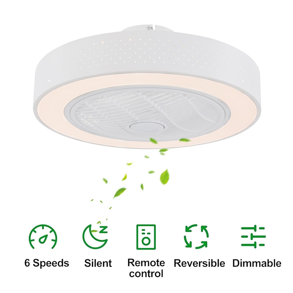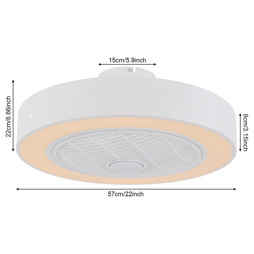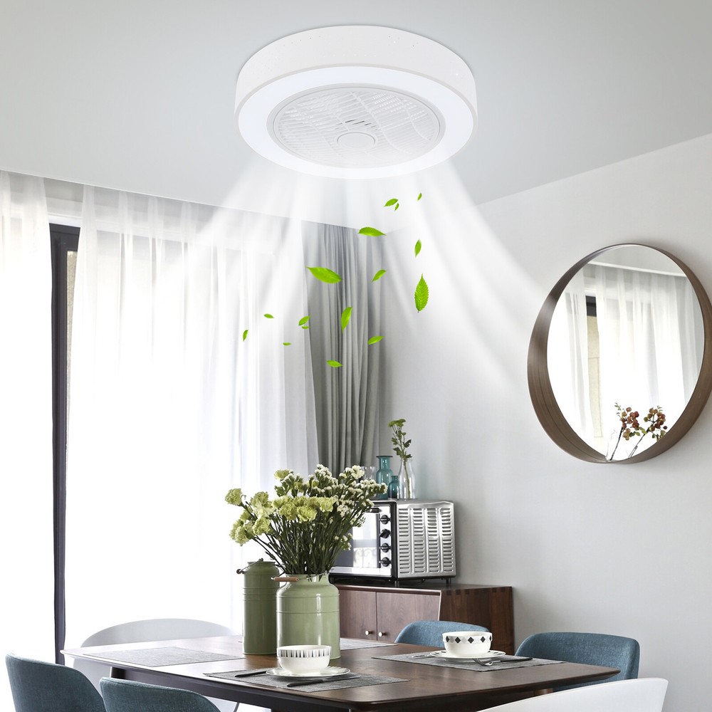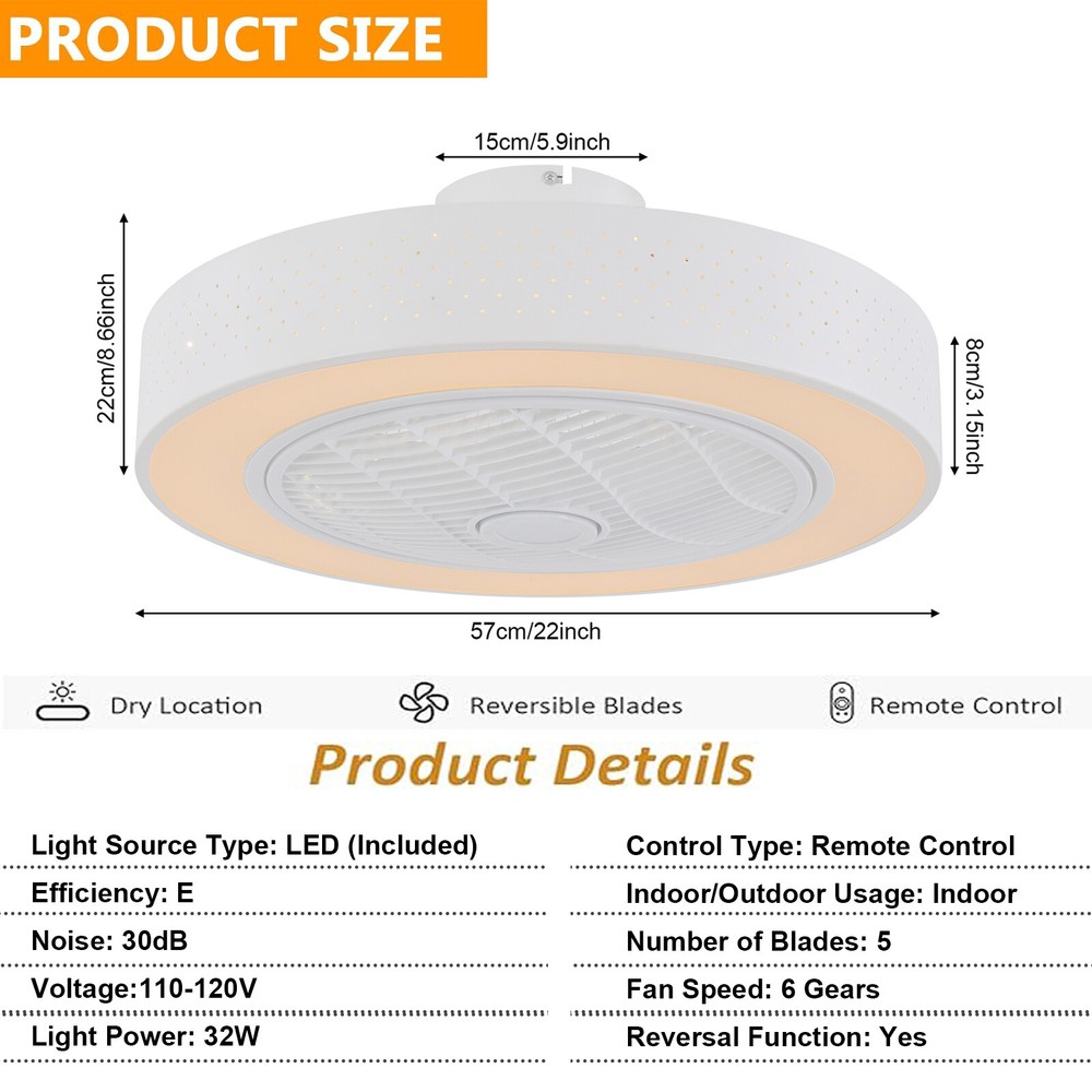 6 Gears Fan Speed Ceiling Fan Light With Remote Control Round Ceiling Fan Light Description A high-quality ceiling fan light is a reflection of your high-quality life. It is made of high-quality materials and is durable. Three colors of light and six levels of wind meet your different needs. The remote control method allows you to use it unrestricted. Having it, you can rest in a room that is not too stuffy and experience a comfortable living and sleeping experience. Key Features Build to Last: It is made of high-quality acrylic, iron, and ABS, and the surface is treated with a high-temperature baking paint process, which is rust-resistant, scratch-resistant , sturdy, and durable, and has a long service life. Enjoy Silent Sleeping: The powerful silent motor can effectively produce large air volume with unnoticeable noise(30dB) and low energy consumption, allowing you to enjoy a comfortable environment without being disturbed. In addition, you can set up the timing function (1/2H) according to your needs, providing you with an assured sleep environment. The night light mode accompanies you to a cozy sleep. Excellent Lighting Effect: The high-power LED light (32W) has three adjustable lights, including white, neutral, and warm. The high transmittance acrylic lampshade makes the light softer and can illuminate an area of 53.82-161.46ft² , creating a bright and cozy lighting environment. Two-way Rotation: The normal mode of the fan can bring coolness in summer, while the winter reverse mode can be combined with heating to press down the warm air and increase the air convection rate, creating a 360-degree ambient heating flow. 6-Speed Adjustable: You can adjust the speed with the remote control according to the actual situation and create a cool environment. Unique Decorative Effect: The simple circular lampshade and versatile white color make it well integrated into various styles of homes, adding an elegant atmosphere. Ideal Gift: Thanks to its exquisite design and practical function, you can choose this ceiling fan light as a gift for housewarming to your friends. Easy to Install: The internal wiring of the lamp body has been completed, and you only need to perform a simple ceiling installation to start using it. Customer Service: We aim to provide quality products and services. If you have any problems, please feel free to contact us. We will reply and solve the problem for you as soon as possible. Details Stable Base: The 5.9-inch diameter circular base and sturdy mounting brackets increase the stress area, ensuring the product is firmly fixed, and improving the safety of use. ABS Blades: The 5 blades use high-quality ABS materials, making them clear, wear-resistant , and high-strength without affecting the whole beauty of this ceiling fan light. Ventilation Holes: They can help the motor dissipate heat in time and extend the life of the product. Application It is ideal for small to medium-sized spaces with low ceilings, such as farmhouses, kitchens, hallways, living rooms, bedrooms, balconies, lofts, aisles, foyers, corridors, cafes, dining rooms, and patios. And its applicable area is 53.82-161.46ft² . Specifications Color: White Material: Acrylic, Iron, ABS Process: Baking Paint Style: Modern Shape: Round Mounting Type: Ceiling Mount, Semi-Flush Mount Control Type: Remote Control Indoor/Outdoor Usage: Indoor Number of Blades: 5 Fan Speed: 6 Gears Timing Function: 1/2H Reversal Function: Yes Remote Battery Type: 2* AAA Batteries (Not Included) Light Source Type: LED (Included) Light Colors: White, Warm, Neutral Color Temperature: 3000, 4500, 6000K Efficiency: E Noise: 30dB Voltage: 110 -120V Light Power: 32W Applicable Area: 5-15m²/53.82-161.46ft² Lampshade Height: 8cm/3.15in Base Diameter: 15cm/5.9in Product Size(D*H): 57*22cm/22*8.66in Package Size: 57*57*25.65cm/22.44*22.44*10.1in Gross Weight: 5.5kg/12.13 lbs Net Weight: 4kg/8.82 lbs Package Included 1* Ceiling Fan Light 1* Remote Control 1* English Manual Other Parts Required for Installation Notes Please check the product size before ordering to ensure it fits your room. For a safe and secure installation, please ensure that the electrical box to which this fixture will be mounted is properly attached to a structural member of the building. All wires are connected. When unpacking, be careful not to pull with wires as a bad connection may result. Do not connect electricity until your fixture is fully assembled. To reduce the risk of fire, electrical shock, or personal injury, always turn off and unplug the fixture and allow it to cool before replacing the light bulb. Do not touch the bulb when the fixture is turned on or look directly at the lit bulb. Keep flammable materials away from lit bulbs. Please allow the slight color difference caused by the shooting light and 1-3cm error due to manual measurement, and make sure you do not mind before you order. Payment Delivery details Terms of sales About us Contact us Payment We accept ebay payment 。 Fees such as import duties, taxes are not included in the item price or shipping costs. These charges are the buyer's responsibility. Delivery details Shipping: 2-9 working days to: USA Terms of sales We maintain high standards of excellence and strive for hundred percent customer satisfaction. Feedback is very important to us. We hope that you contact us immediately before you give neutral or negative feedback, so that we can address your concerns. It is impossible to address issues if we do not know about them! About us Your satis faction is our ultimate goal. We work hard to earn your trust and future business. Our certified technicians have tested each item before shipping. The unit comes with 1 year limited warranty on all manufacturing defects. a) If you receive a defective item, you may return it or ask for a discount. Please contact us within 14 days after you receive the package. b) What you returned must be intact and in its original packaging as re? u. Customer is responsi