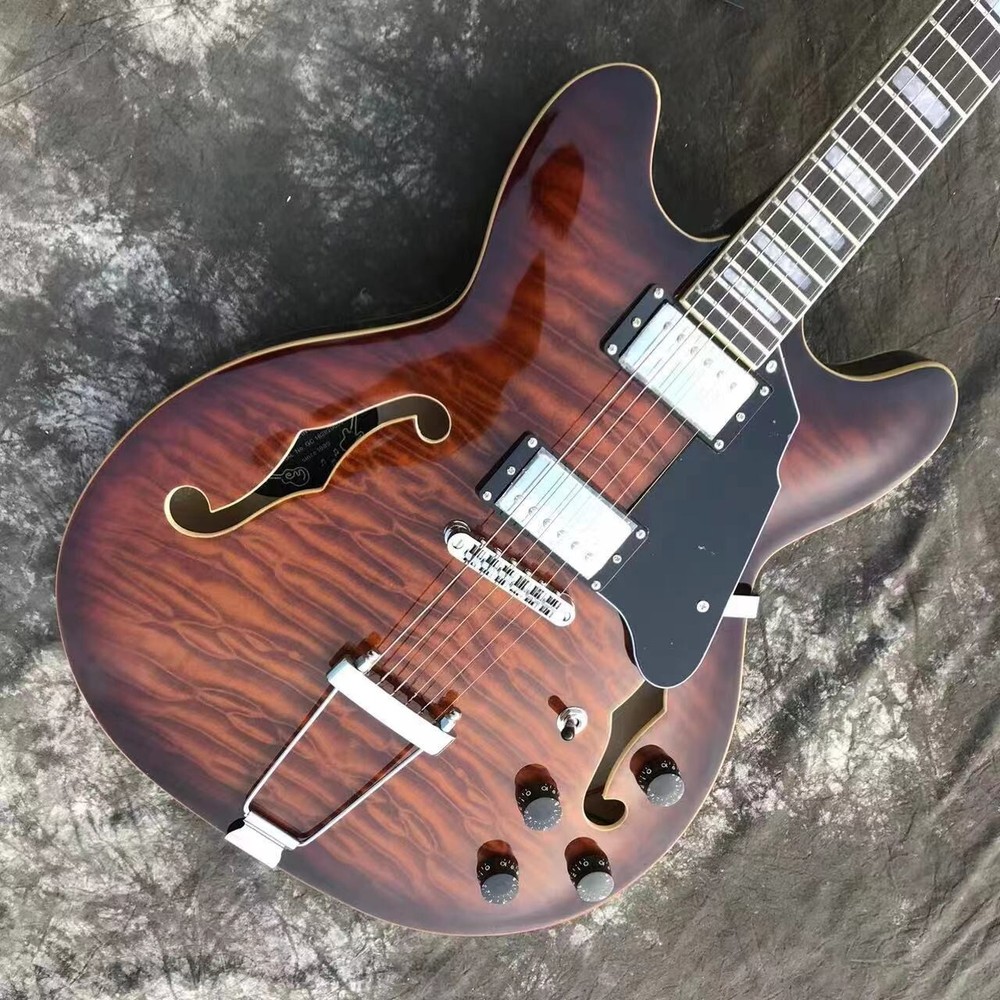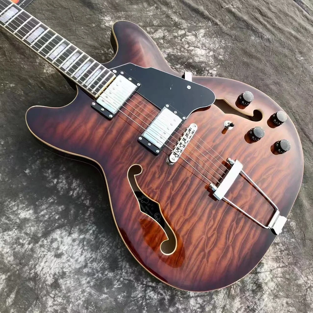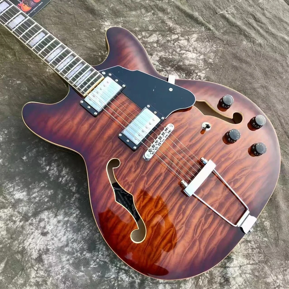 $ 1212.82Sunburst Semi-hollow Electric Guitar with F-Holes HH Pickups Chrome Hardware Factory Fresh