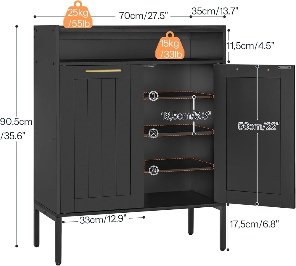Large Capacity Shoe Cabinet: This 27.5"L x 13.7"W x 35.6"H shoe organizer cabinet boasts a fenced top, a middle compartment, and four adjustable shelves inside. Its ample space effortlessly holds a variety of shoes (about 16-20 pairs), ornaments, and daily essentials, creating an organized entryway area Adjustable Shoe Cabinet with Doors: The interior shelves of the shoe organizer can be adjusted or removed to fit different sizes of footwear. The bottom is elevated by 6.8 inches for easy cleaning and to provide extra storage for house slippers Lumiskin Shoe Cabinet, 6-Tier Shoe Storage Cabinet, Shoe Organizer Cabinet With Adjustable Shelves, Shoe Cabinet Storage With Doors, Shoes Rack Organizer Cabinet For Entryway, Hallway, Black Bk15Sc01 Large Capacity Shoe Cabinet: This 27.5"L x 13.7"W x 35.6"H shoe organizer cabinet boasts a fenced top, a middle compartment, and four adjustable shelves inside. Its ample space effortlessly holds a variety of shoes (about 16-20 pairs), ornaments, and daily essentials, creating an organized entryway area Adjustable Shoe Cabinet with Doors: The interior shelves of the shoe organizer can be adjusted or removed to fit different sizes of footwear. The bottom is elevated by 6.8 inches for easy cleaning and to provide extra storage for house slippers Sturdy and Stable: Crafted from high-quality particleboard and metal legs, this standalone shoe rack is incredibly reliable. Each internal shelf can hold up to 33 pounds. With anti-tip devices for extra stability, it offers enough security during use Sleek Appearance: This entryway shoe cabinet features a black hue with gold-toned handles and a grooved door design, exuding subtle elegance. It fits perfectly in entryways or cloakrooms, blending aesthetics with functionality Effortless Assembly: All parts of the shoe storage cabinet are numbered and accompanied by a detailed manual and essential installation tools. Thoughtful touches make assembly a breeze, allowing you to enjoy your stylish shoe cabinet in no time Slim Design and Chic Look: Perfectly fits into entrances, hallways, and cloakrooms with its compact and refined appearance. Flexible Shelves: Allows you to adjust spacing according to different shoe types. Multi-Layer, High Capacity: Easily stores shoes, decorations, and hats with its spacious design. Sturdy Materials and Easy Cleaning: Quality selection ensures longevity, and the elevated design adds extra space and facilitates daily cleaning. 1Flexible Interior Shelves2Chic Metal Pulls3Off-Ground Design4Upper Storage Area5Secure Mounting ColorBlack, GoldMaterialParticleboard, MDF, MetalProduct Size27.5"L x 13.7"W x 35.6"HProduct Weight44.5 lbMax. Static Load CapacityTop: 55 lb, Each Internal Shelf: 33 lbPackage Contents1 x Shoe Cabinet; 1 x Anti-Tip Kit; 1 x Accessory Kit; 1 x Instructions NotesSecure the product against the wall with the included anti-tip kit for more stable use; For safety reasons, children are not allowed to climb on or stand on the product. Shoe Storage Cabinet for Entryway with Open Drawers Why Choose Fashion Shoe Cabinet? Morden Shoe Cabinet with Doors and Adjustable Shelves Specifications Item Specifics Brand Unbranded Type Shoe Cabinets Item Weight 44.5 pounds Product Dimensions 27.5 x 13.7 x 35.6 inches Item Weight 44.5 pounds Country of Origin China Item model number BK15SC01 Shoe Cabinet Assembly required Yes Batteries required No Item Height Does not apply:Does not apply Payment We accept PayPal payment,PayPal Credit,Credit card or debit card and so on. Payment should be completed within 4 (Four) days of auction closing. Or unpaid dispute will be filed for closing auction. We will leave a positive feedback immediately after payment is received. We appreciate a positive feedback as much as you do. If for some reason there is any issue with the purchase, please contact us prior to leaving feedback, we will be glad to work together and provide a satisfying solution. Shipping 1.We usually ship within 3-5 business days of receiving cleared payment., and we provide Free Shipping for most items. 2.Fast shipping is very important for us. We use multiple fulfilment warehouse around the United States. We only ship to the lower 48 States and do not ship to PO Boxes. 3.Please make sure the correct Ship-To address is entered before checking out. Once the payment is completed, you may not be able to change the shipping address. We shall not be held responsible for any wrong or undeliverable addresses. Returns 1.We provide 14 days return upon the buyer received the item. It must be in good condition and you will undertake the returned shipping cost. 2.We will offer replacement or refund for all DEFECTIVE items (not including damage resulting from accidents / abuse / misuse / improper care), but a photo is needed for our reference beforehand and should be reported to us within 7 days from purchase date. 3.All items are brand new and have been passed the quality check. All are packed in a good condition before item dispatch. Contact Us 1.Dear customers, we appreciate your business, our aim is to provide Top Level Customer Service,if you are satisfied with our service, please leave us a 5 star positive feedback . 2.If you have any question or concern about your eBay order, please feel free to let us know. We will try our best to reply all questions within 24 hours. However, no answer will be replied during weekends or holidays. Please allow up to 48 hours delay in receiving our response after long weekends or holidays. 3.Please via eBay Message for a solution for resolutions before leaving negative feedback, we strive to providing the greatest service and bringing the highest satisfaction to all of our customers. Lumiskin DESCRIPTION PAYMENT SHIPPING RETURN POLICY CONTACT US Shop Category Store Home Other Hot Item Socool Portable Waist Fan 5000Mah Rechargeable Mini Clip On Personal Fans With 1 USD 41.81 48" X 250Ft. 1000 Sq. Ft. Synthetic Roofing Underlayment USD 90.72 Max Cool Narrow Profil