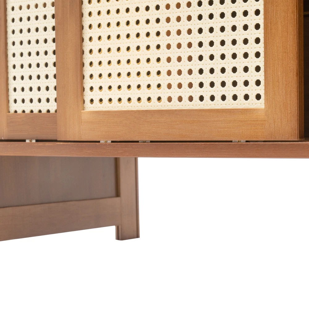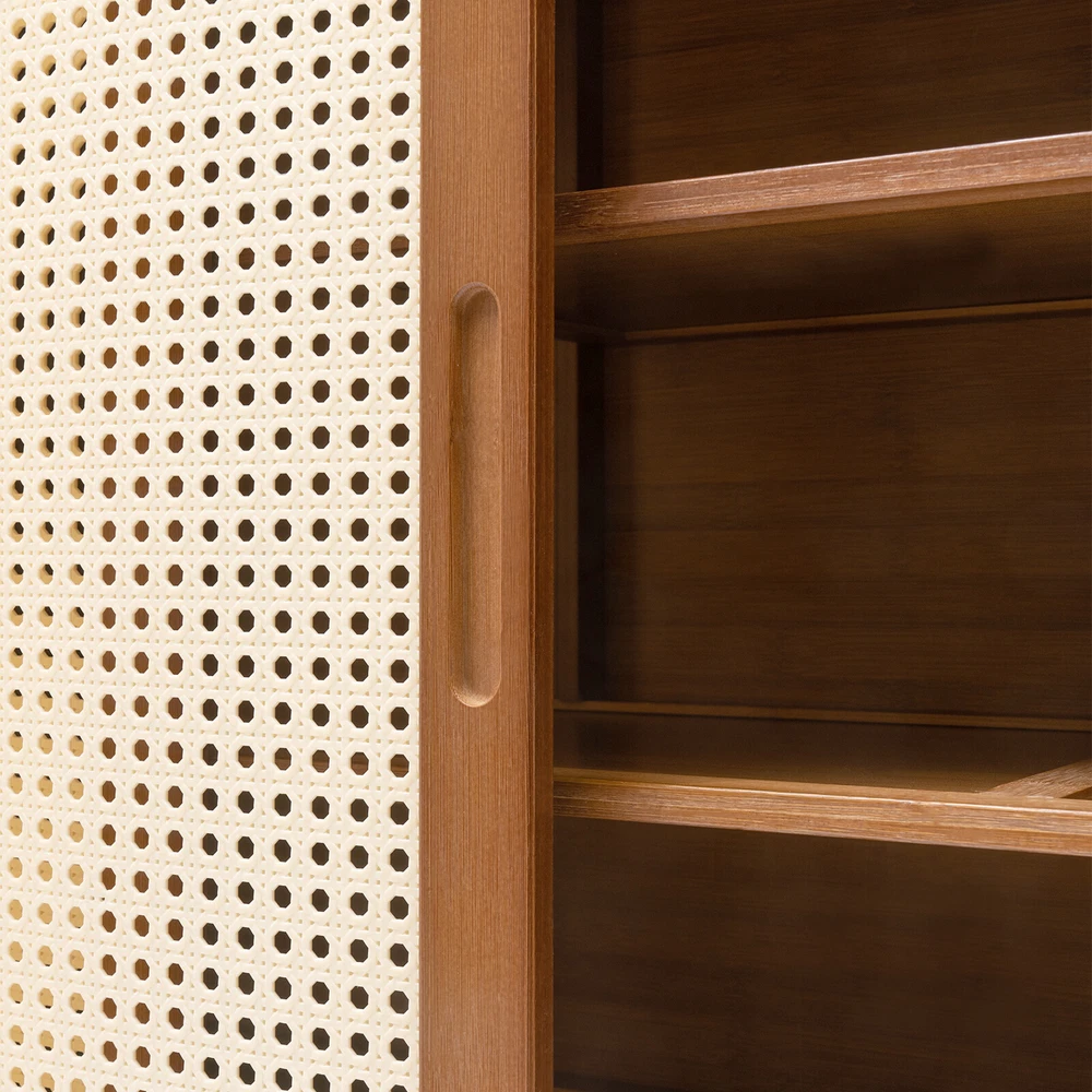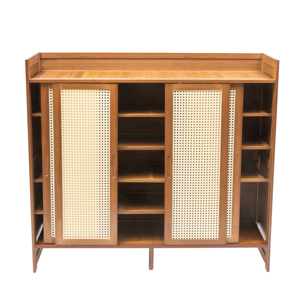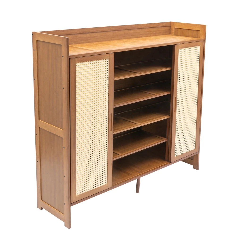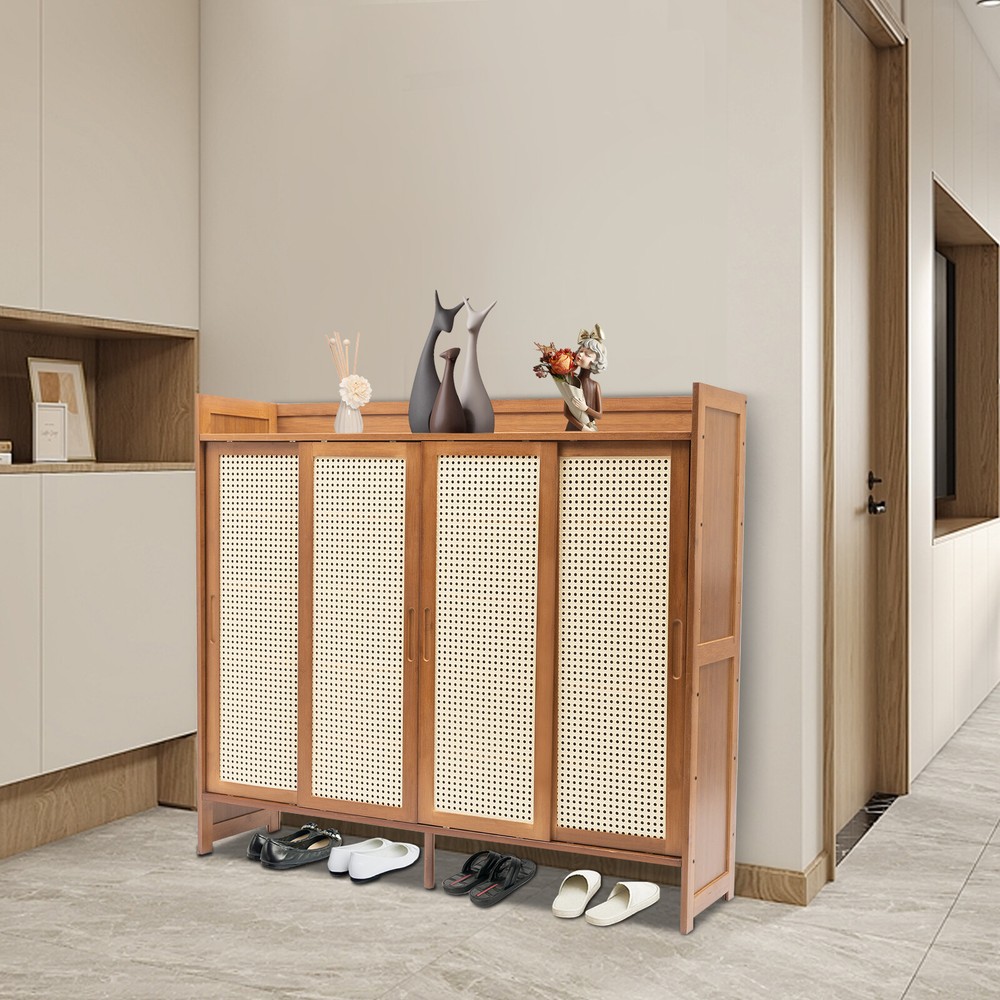 Natural Rattan Shoe Cabinet with 2-Tier Flip Drawers Free Standing Shoe Rack